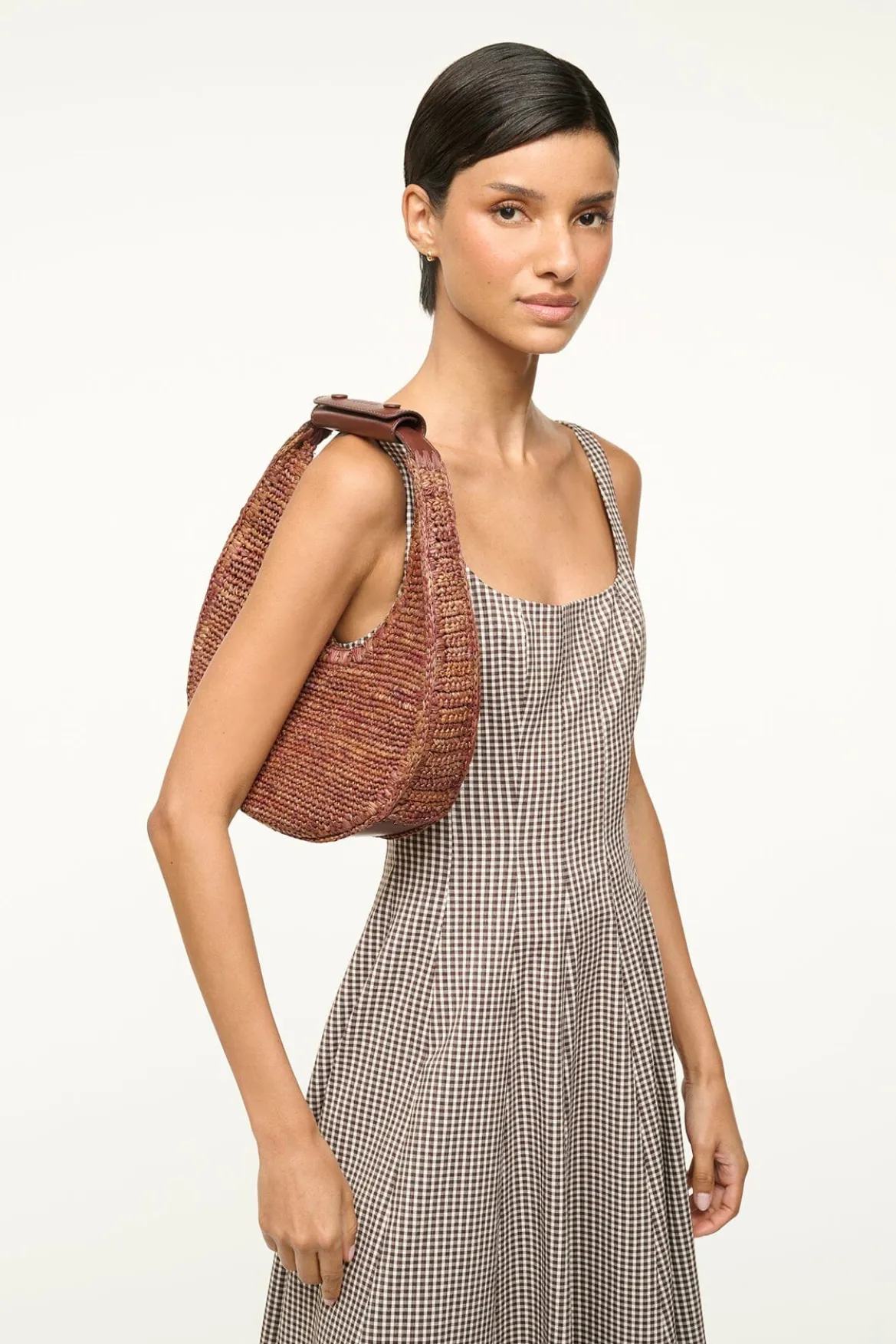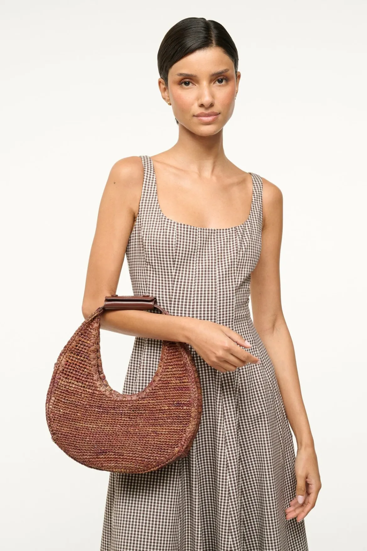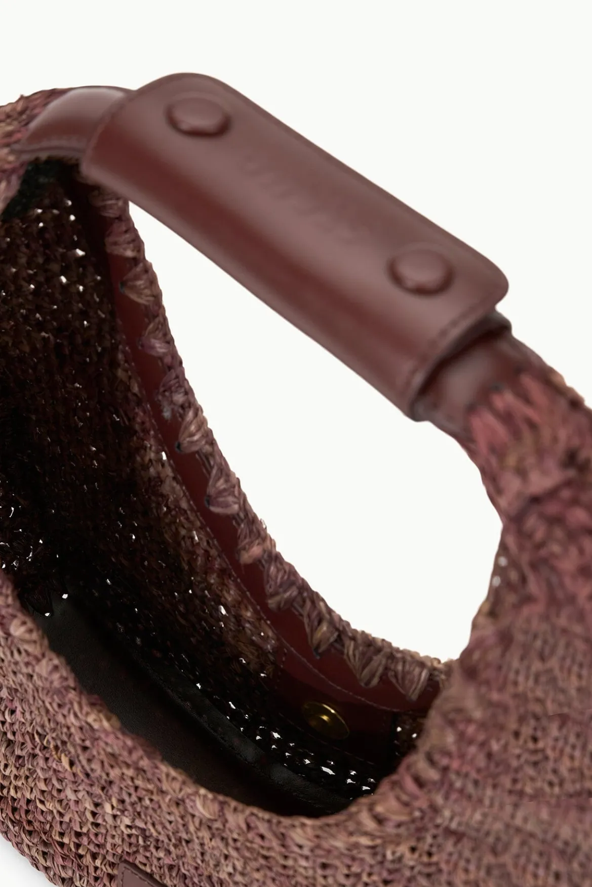 The perfect getaway bag. This Moon update features a woven raffia body and magnetic closure. This style is fully unlined.