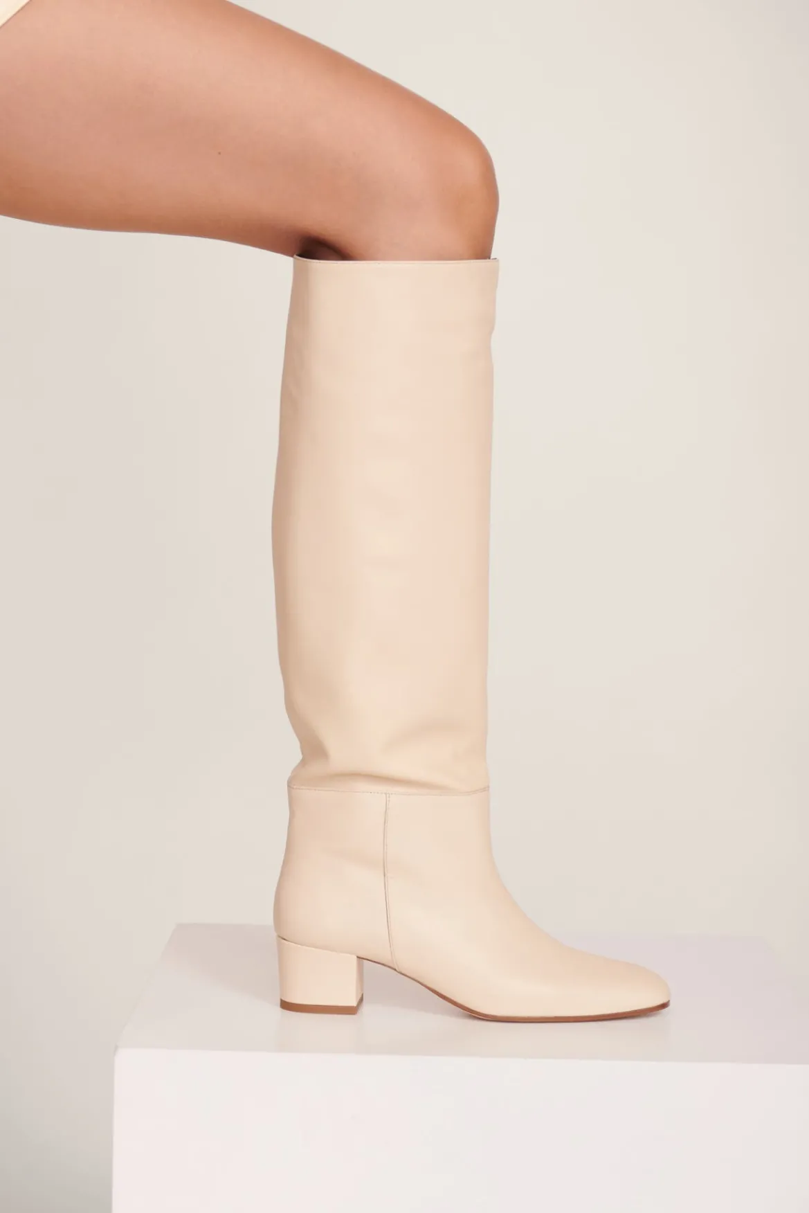 The Nancy is the epitome of the classic 60s knee high boot. The wider shaft and the slightly-square-but-round toe shape to give a vintage rainboot silhouette. Super comfy and cool for all occasions.