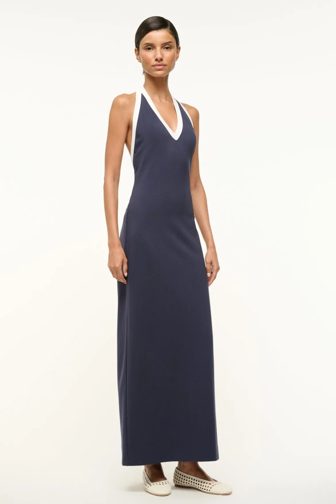 A maxi halter dress with low cut back, the Naomi is an easy throw-on-and-go style made from a stretchy ponte knit.