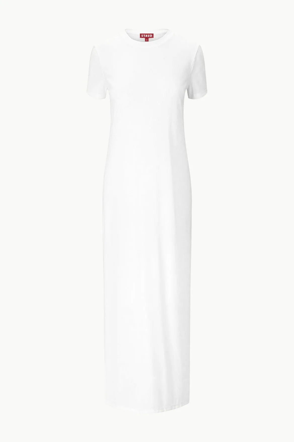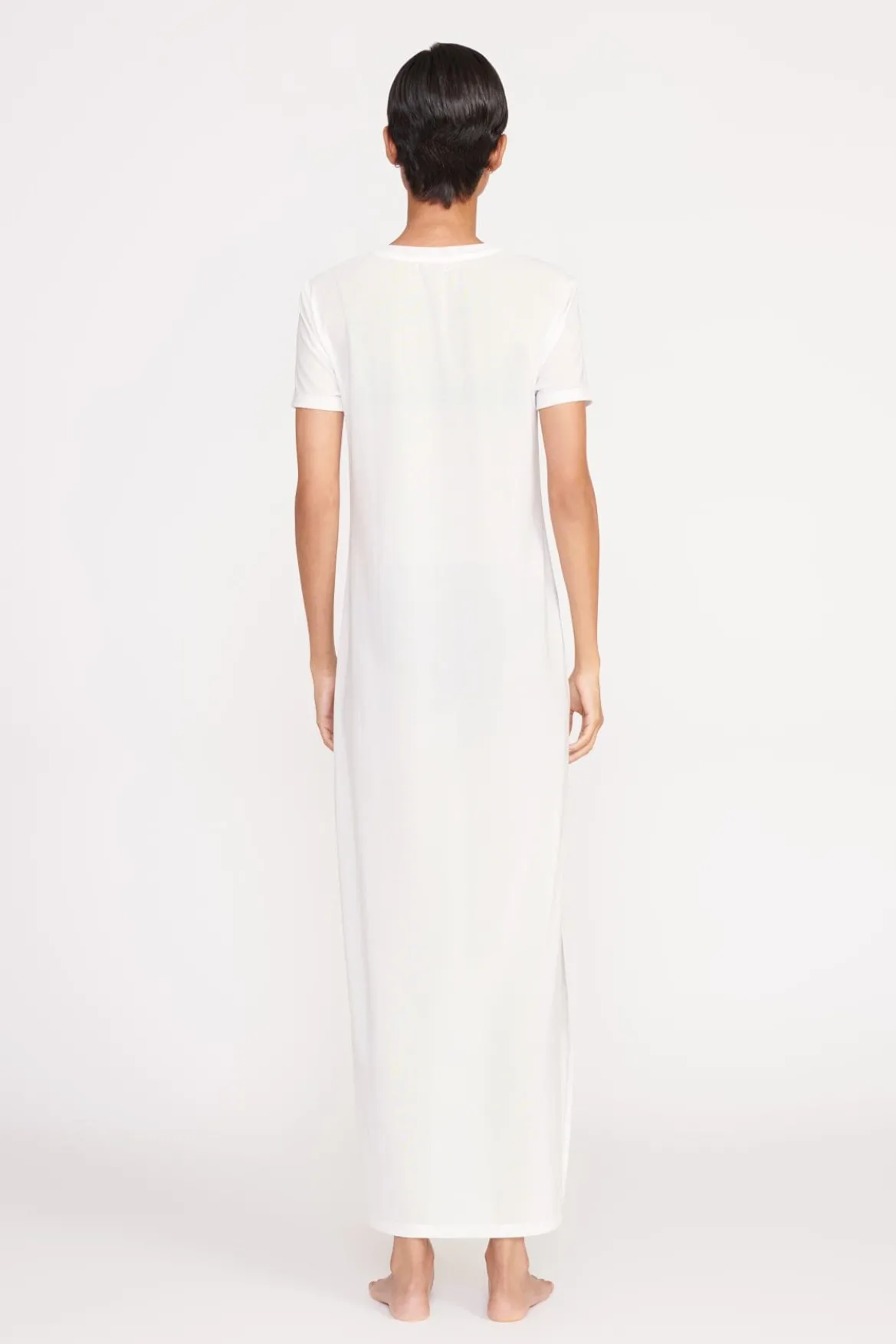 The Ottilie Dress is a maxi t-shirt style swim coverup in our stretchy power mesh fabric. This style is slightly sheer and features a crewneck and short sleeves and pairs well with STAUD SEA swimwear.