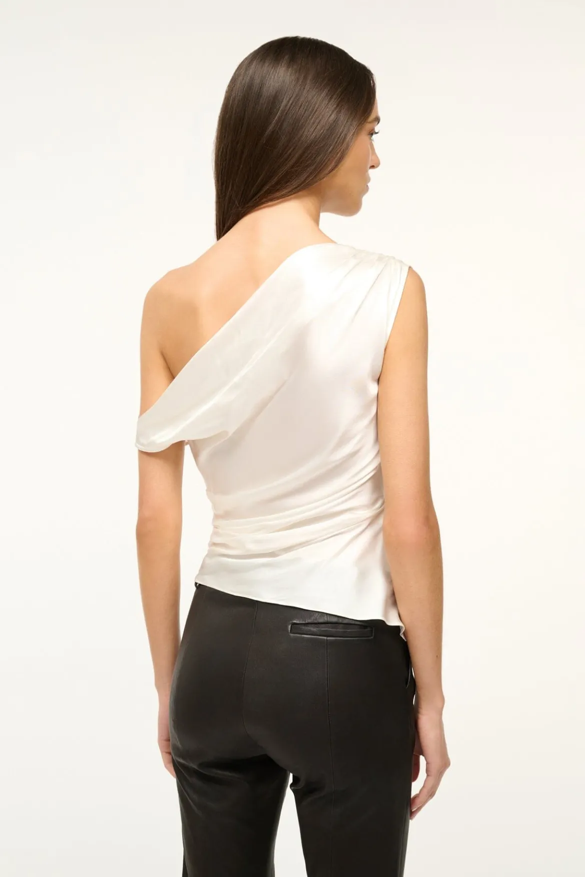 An off-the-shoulder top crafted from a silk satin fabric that offers some stretch for added ease. The Phare Top features a drapey yet fitted silhouette for any occasion.