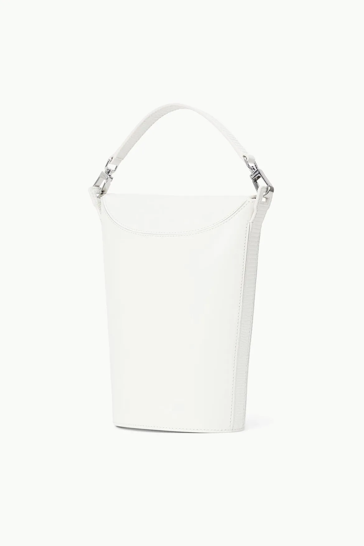A convertible mini bucket bag, the Phoebe can be worn with a short handheld strap or longer crossbody. This style features a magnetic flap closure and interior patch pocket.