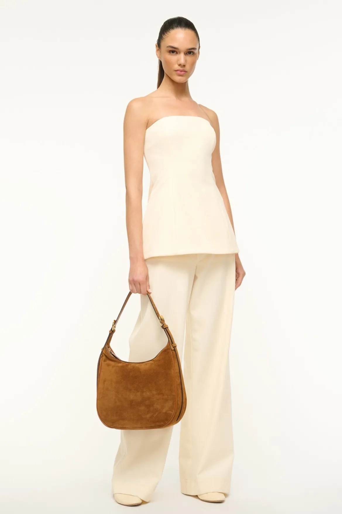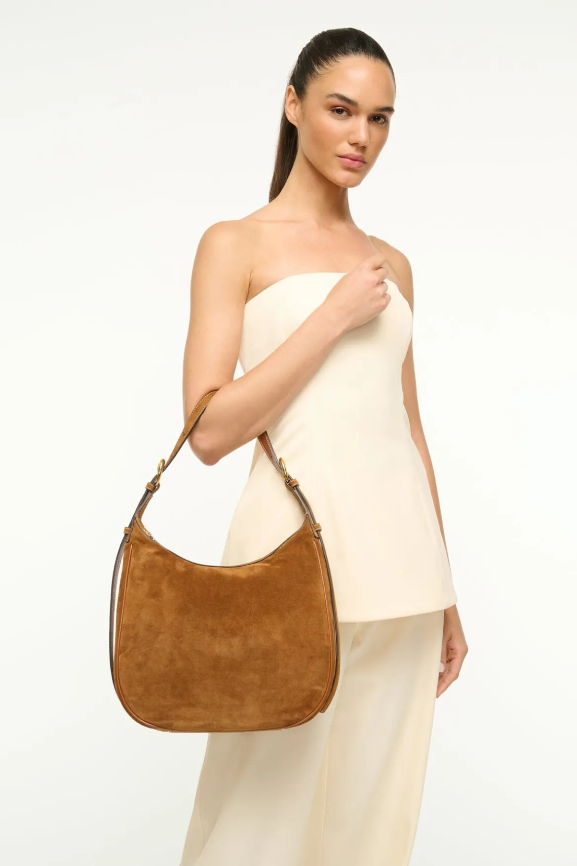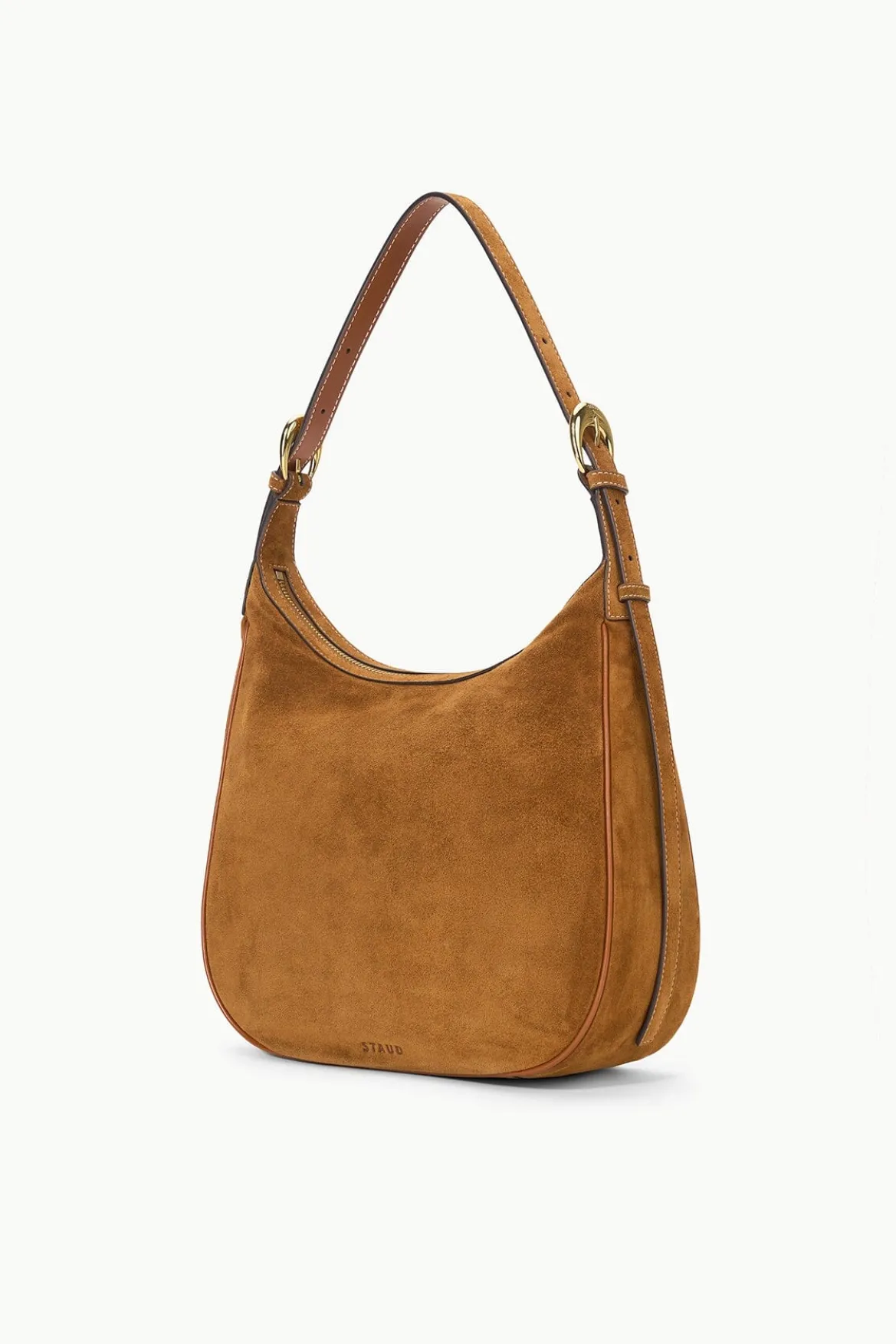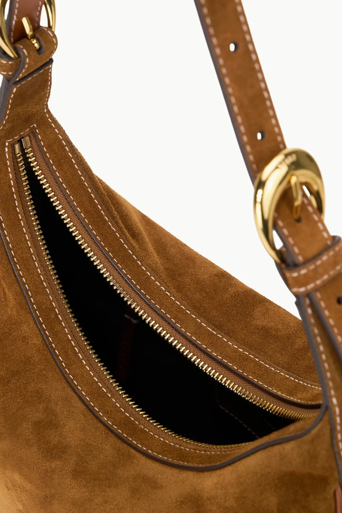 The Pine Hobo is a soft suede bag with two moon shaped buckles and an adjustable shoulder strap. It features a zipper closure and an interior zipper pocket to safely store your daily essentials.