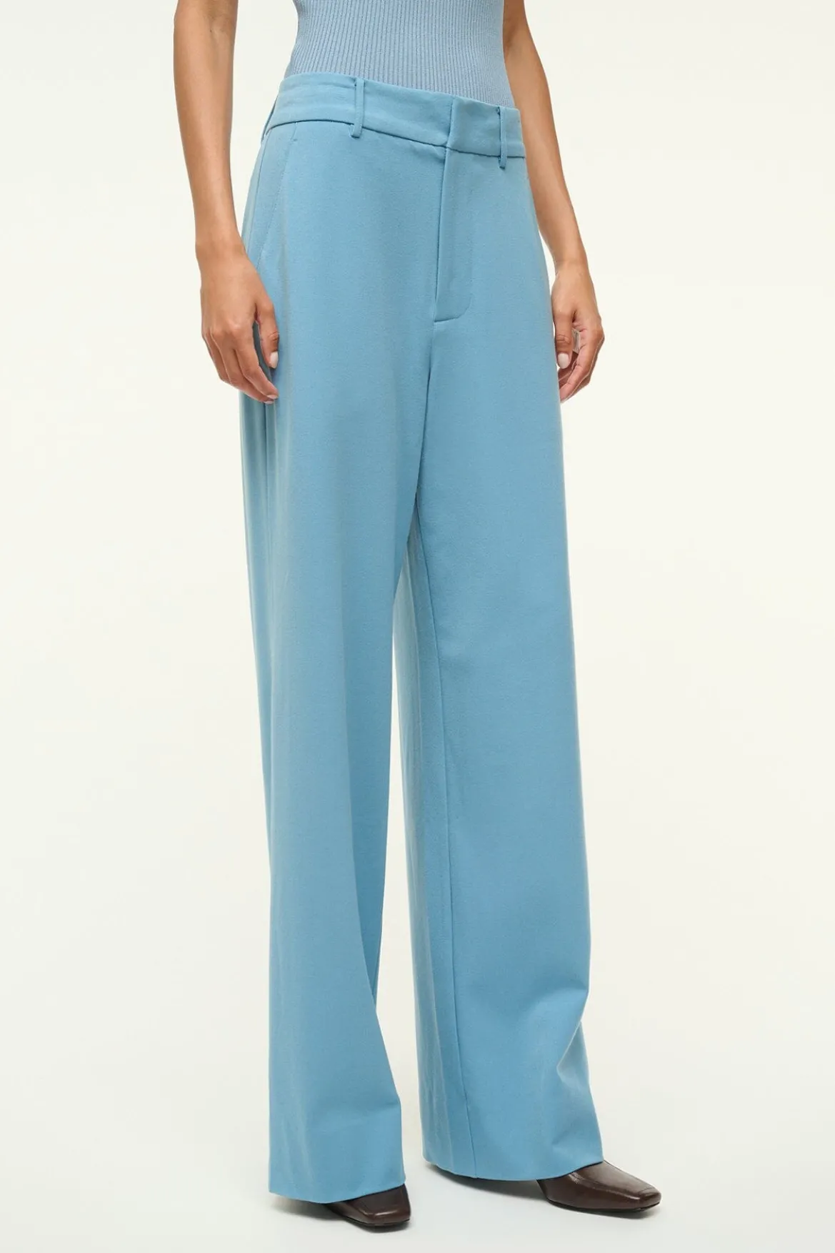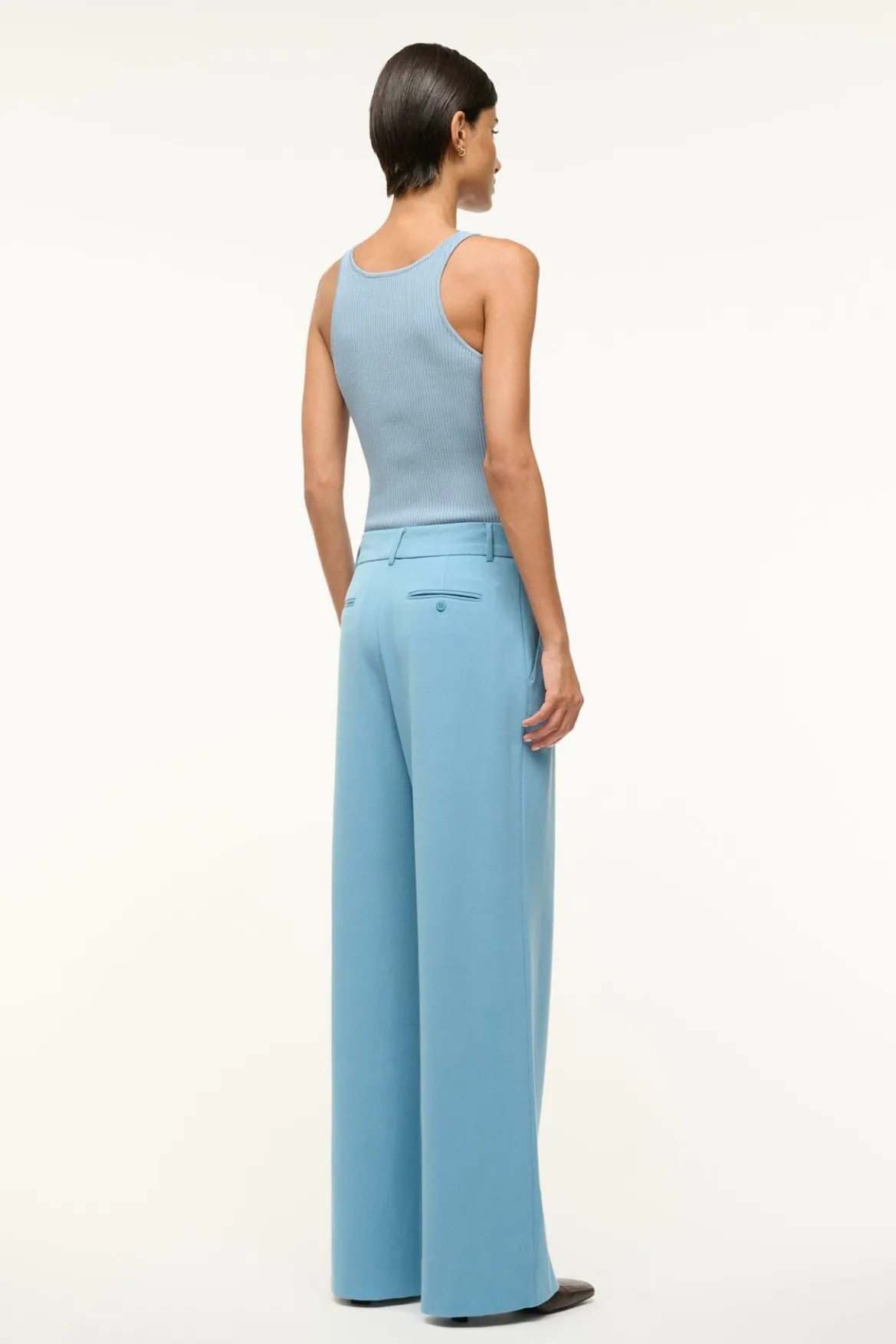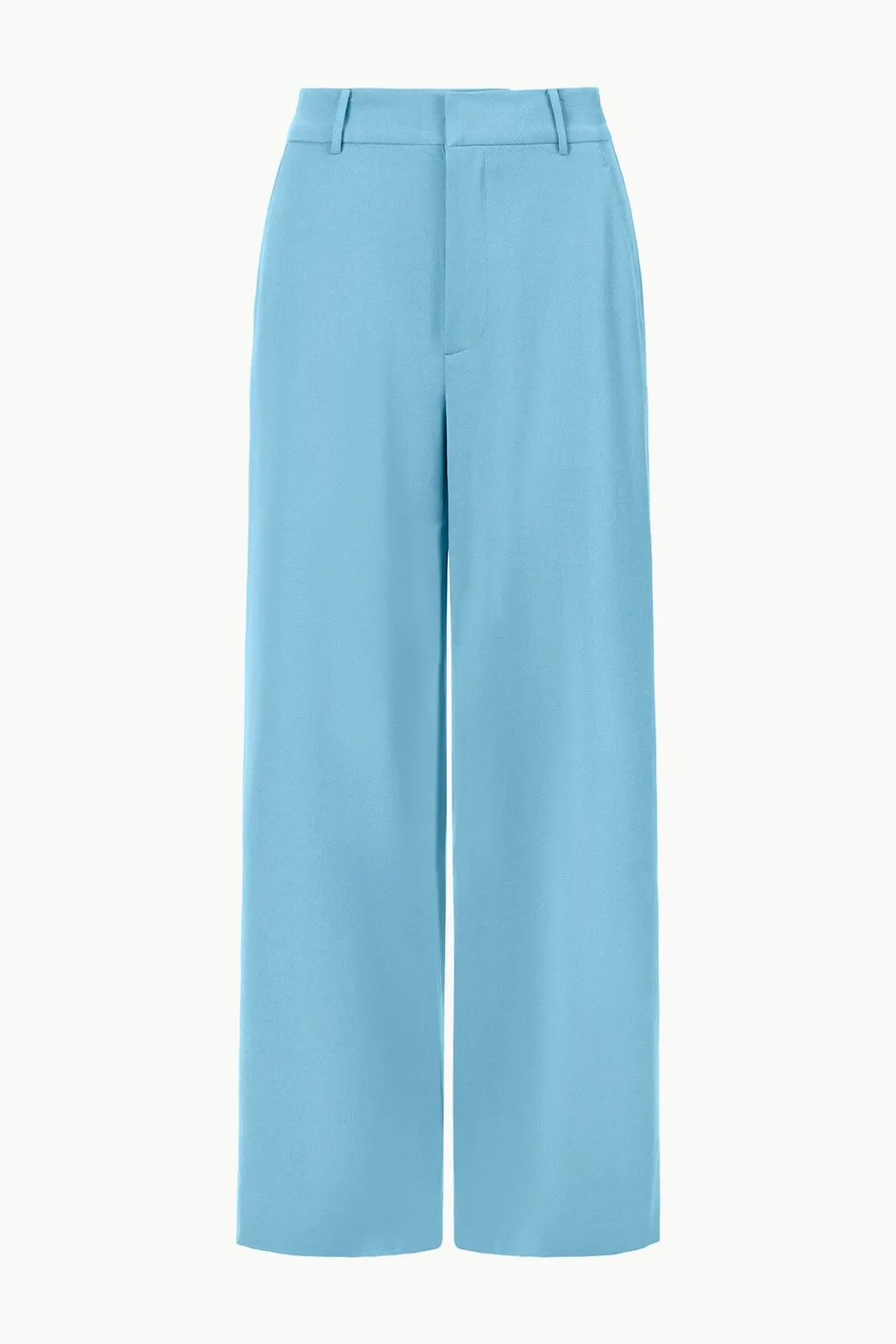 The Prince Pant is a flat front wide leg pant made from soft suiting. It features a zipper fly and back welt pockets.
