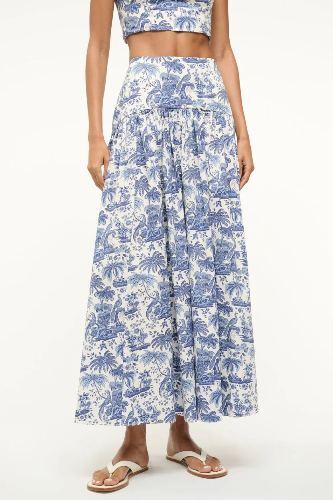 The Procida is a maxi skirt with a curved yoke at the hip and a hidden back zipper. Pair it with the Federico Top for a matching set.
