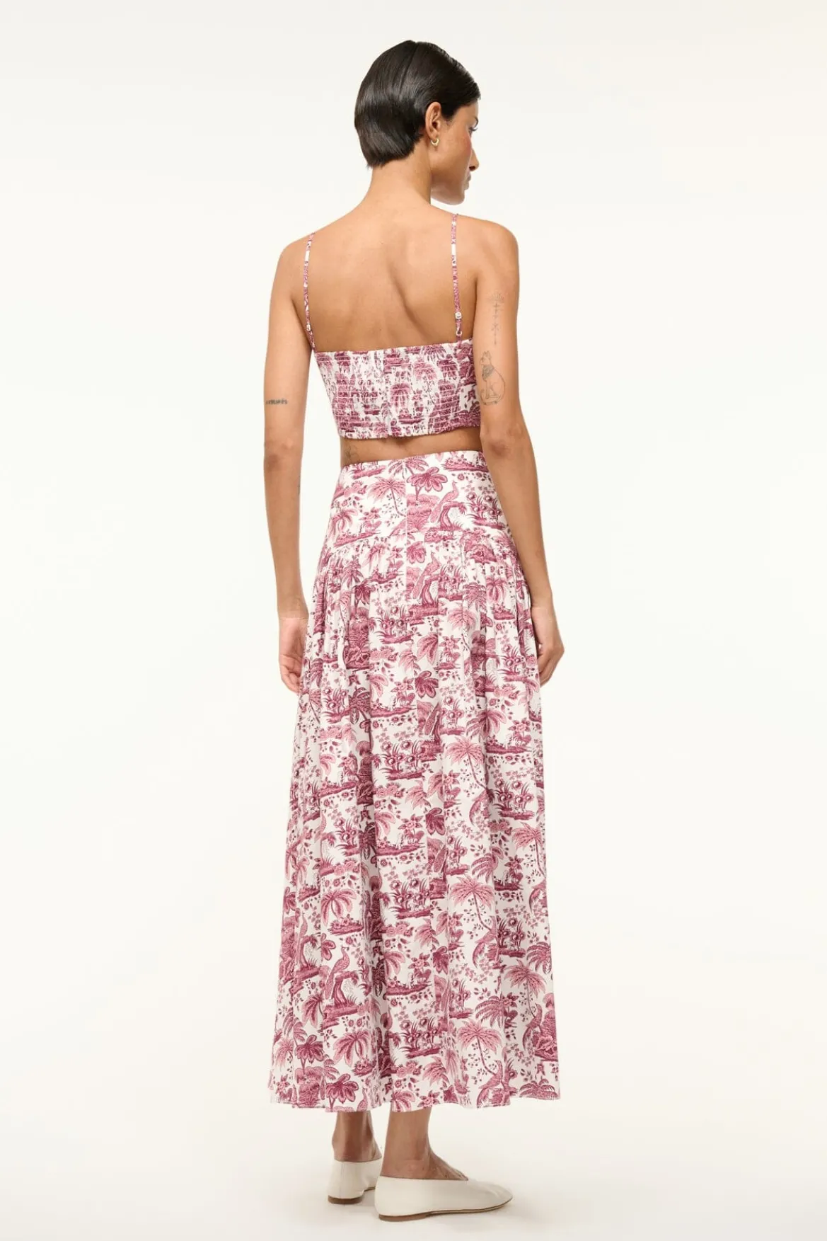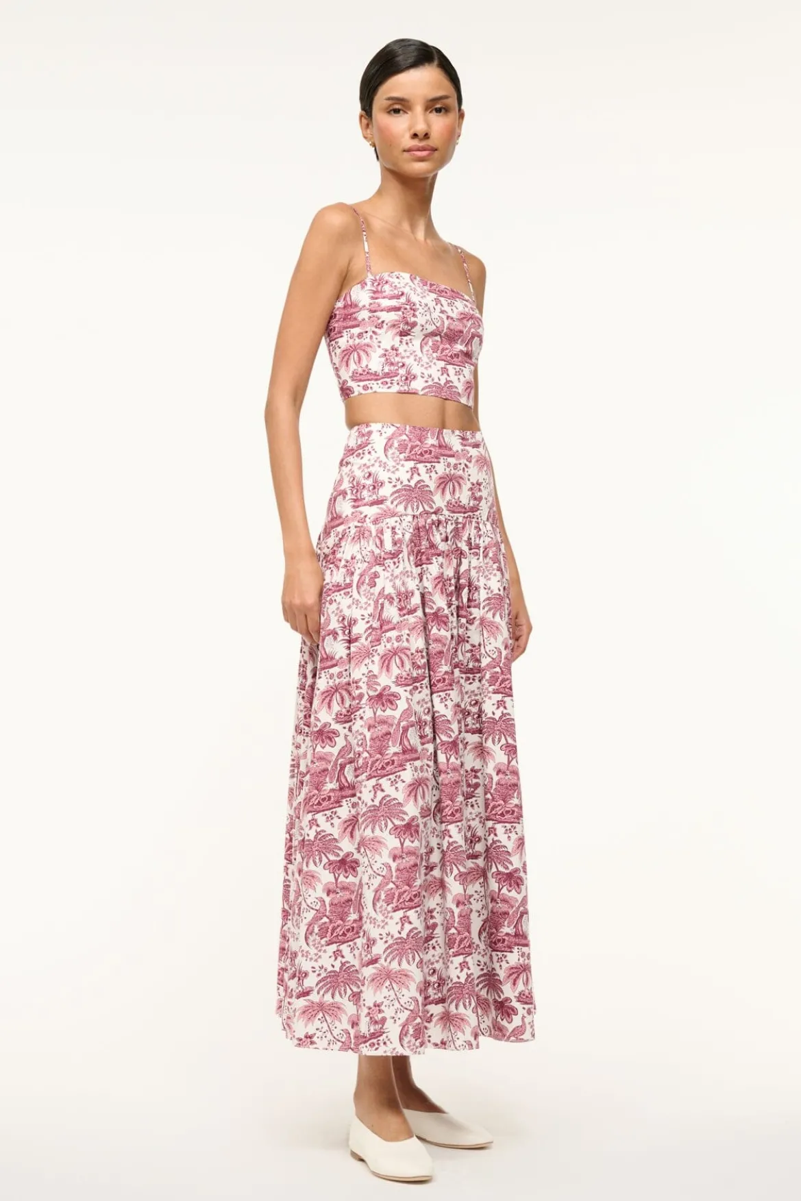 The Procida is a maxi skirt with a curved yoke at the hip and a hidden back zipper. Pair it with the Federico Top for a matching set.