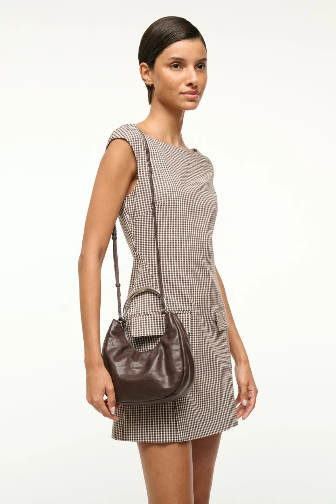 The Romeo is a chic soft leather bag that can be carried handheld by the metal handle or on the shoulder with a removable shoulder strap.