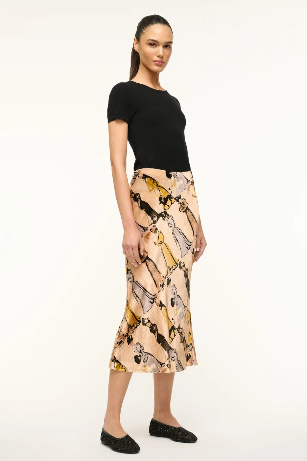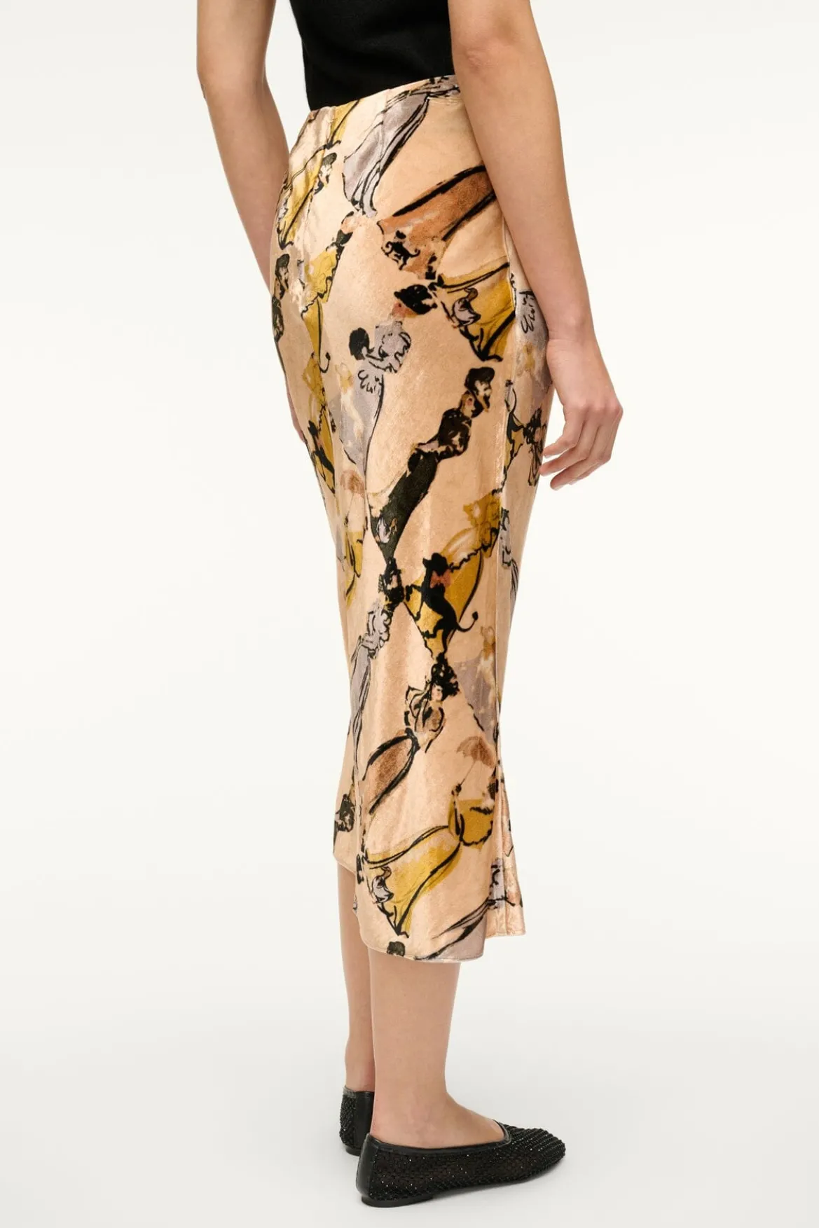 The Sadie Skirt is a midi length velvet skirt in a vintage-inspired print. It is cut on the bias to create a flattering silhouette.
