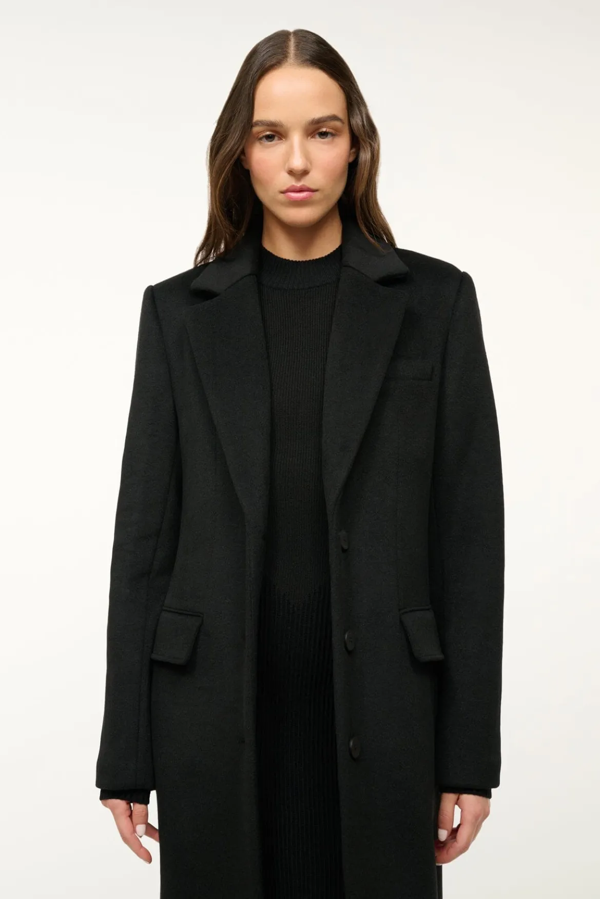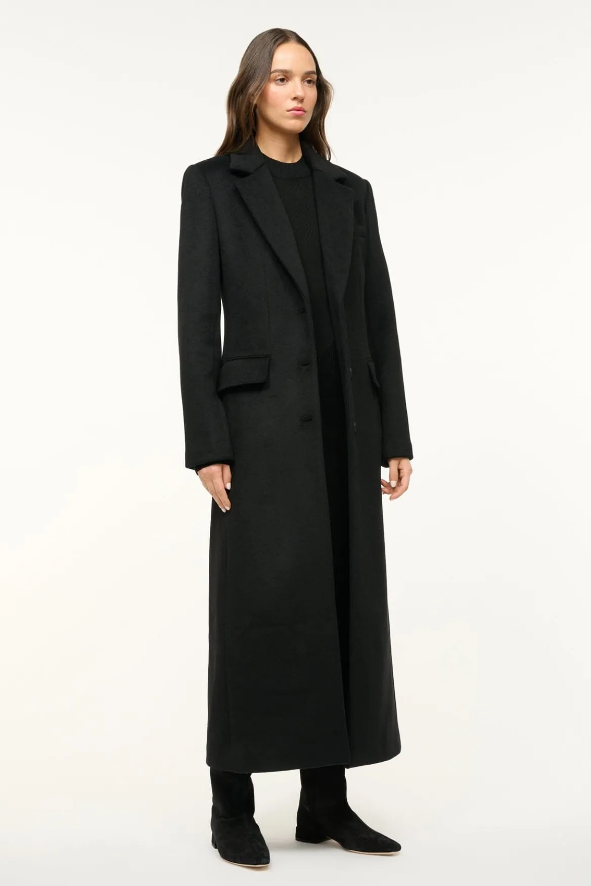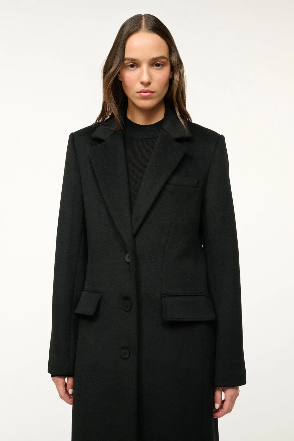 A single-breasted coat fashioned in a blazer style, the Sanza features a three button front and two flap pockets at the hips. This essential medium-weight coat is crafted from a wool blend.
