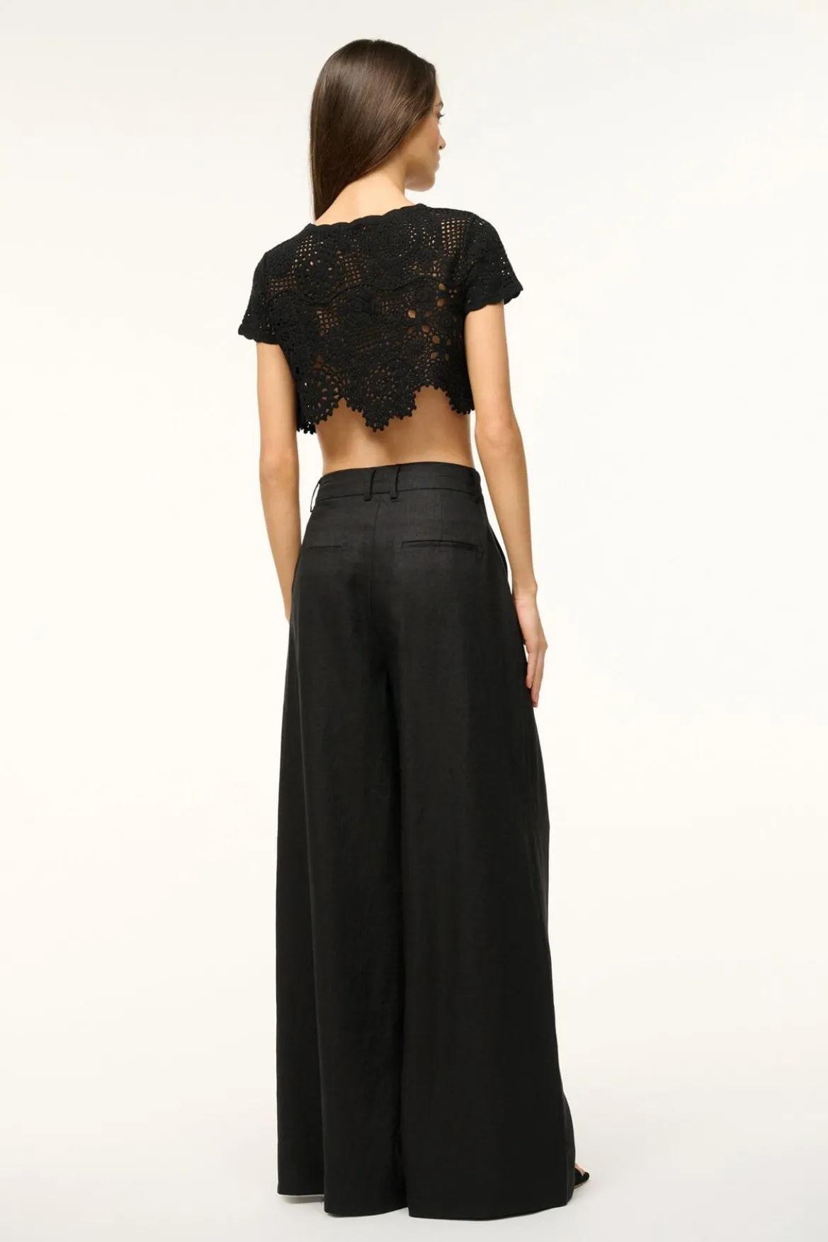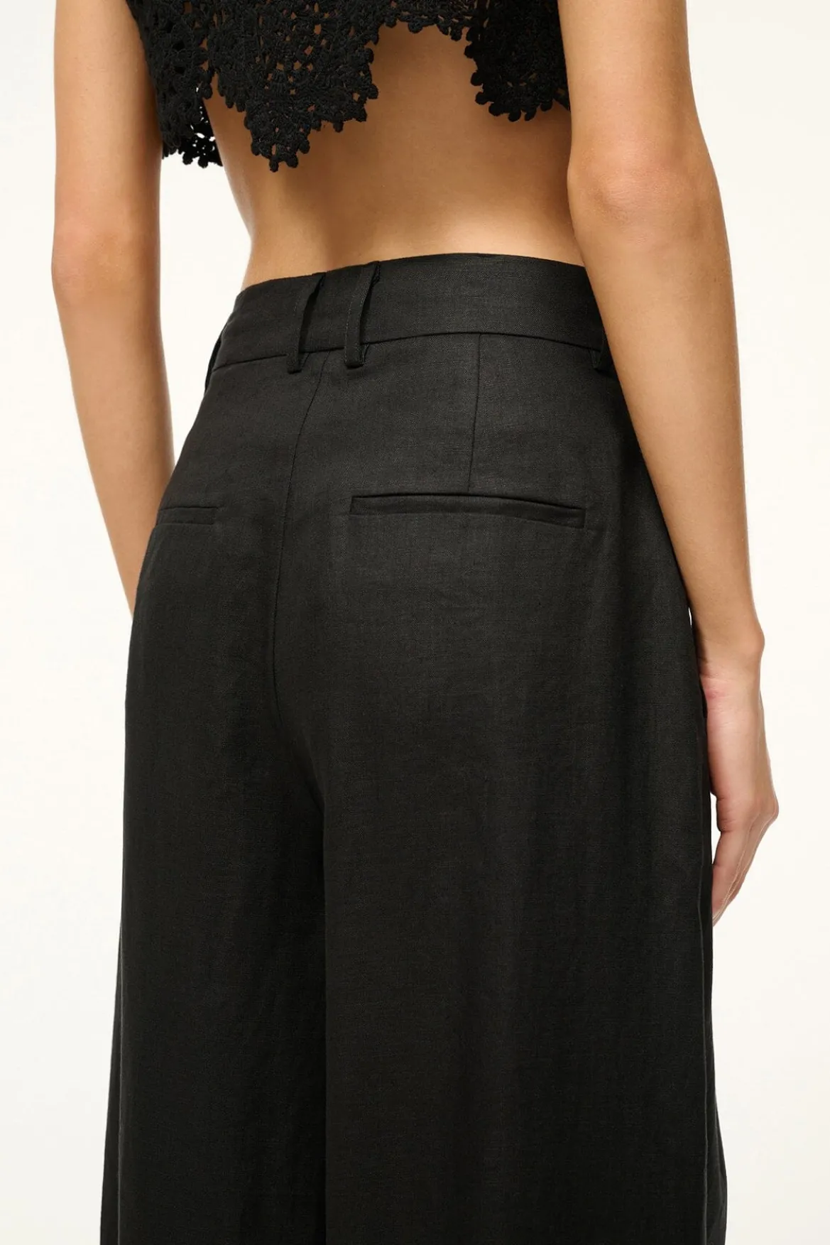 The Sasha is a wide leg pleated trouser crafted from a crisp linen featuring front slash pockets and back welt pockets.