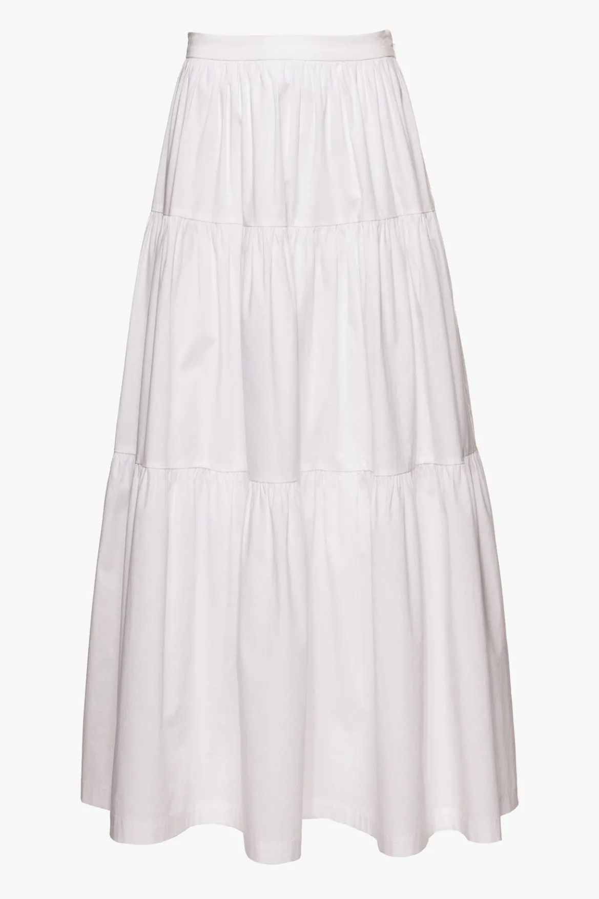 The Sea Skirt is a tiered ankle-length cotton poplin skirt and features a side zipper. This skirt is a closet staple that can be worn year-round.