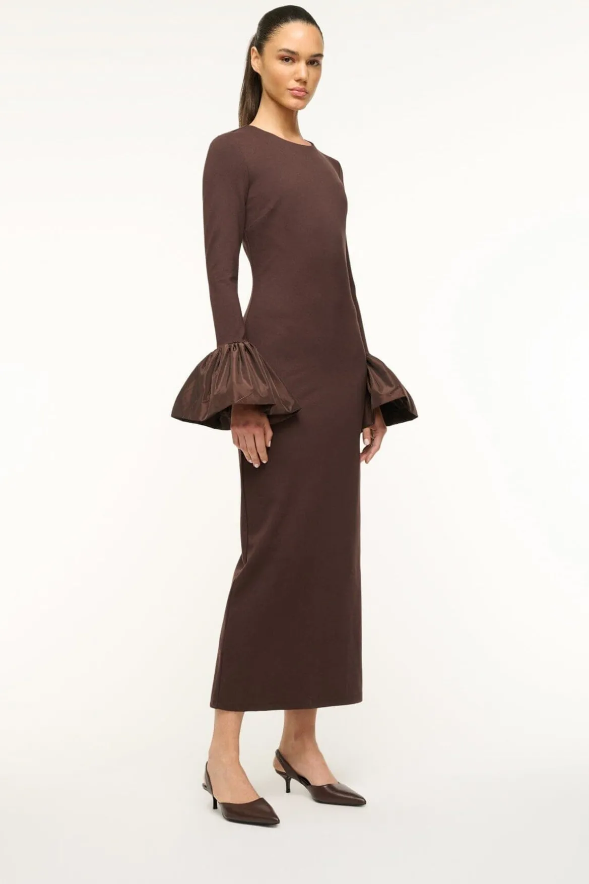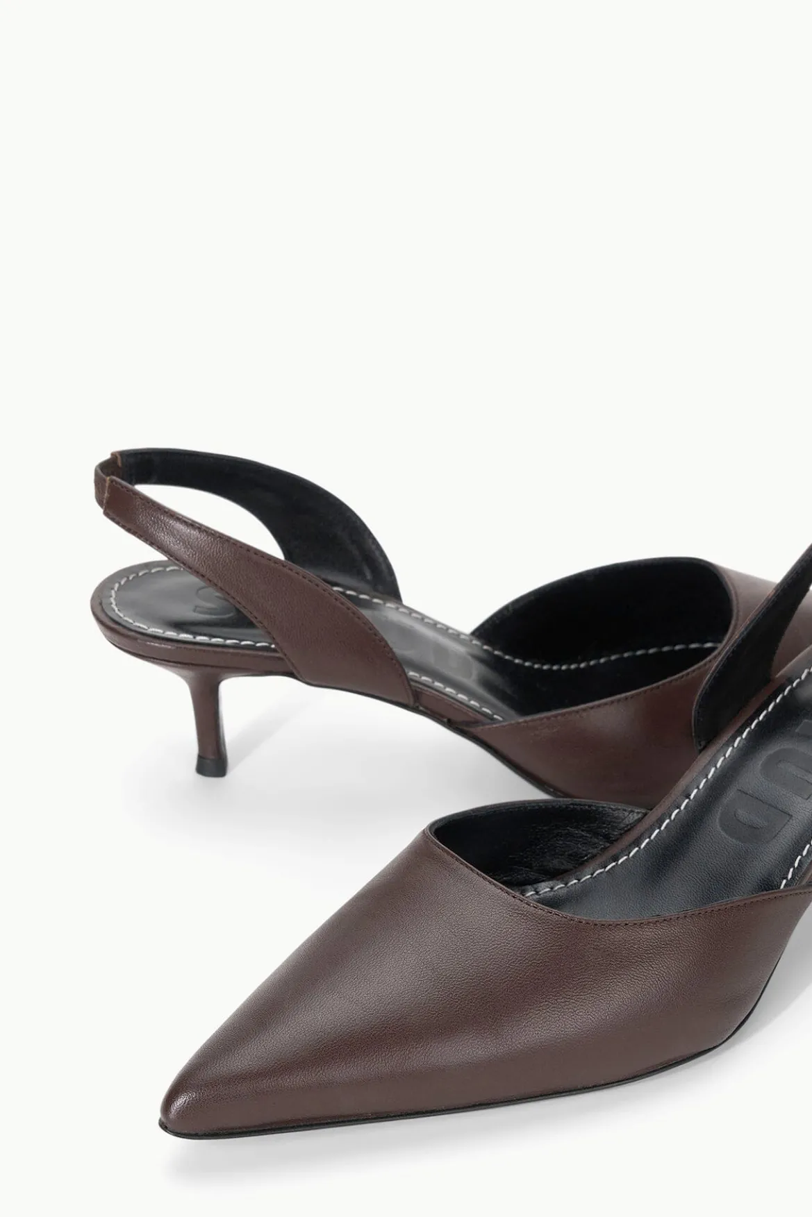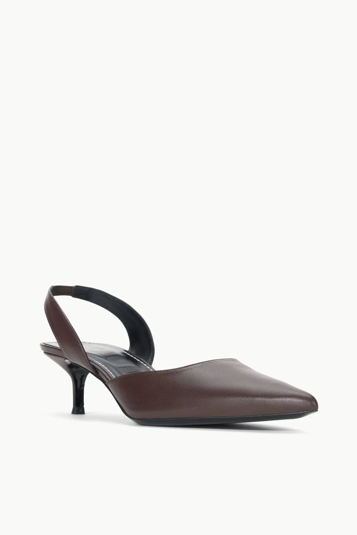 The Sebastian is a nappa leather slingback heel with a pointed toe.