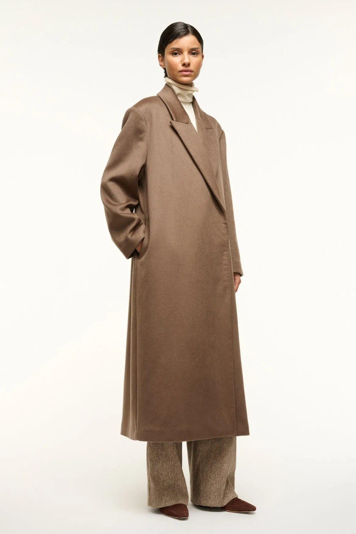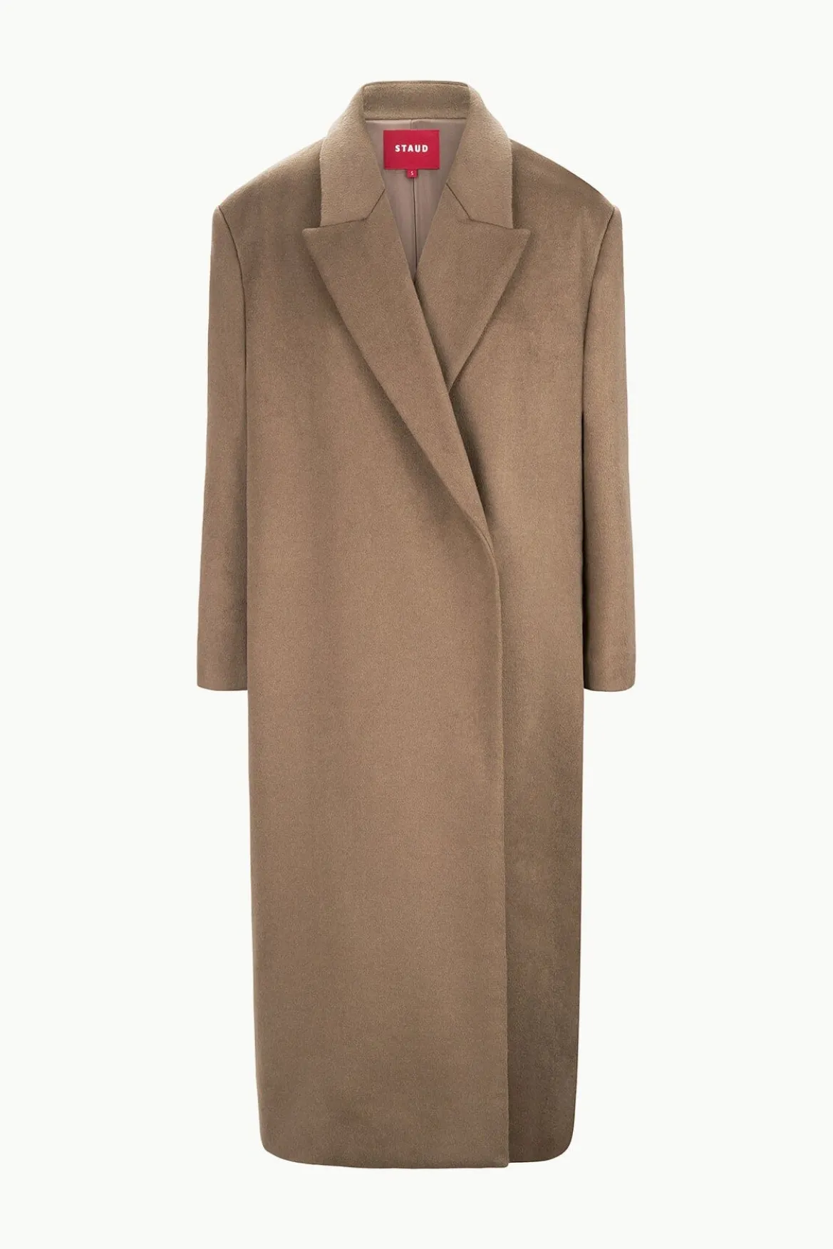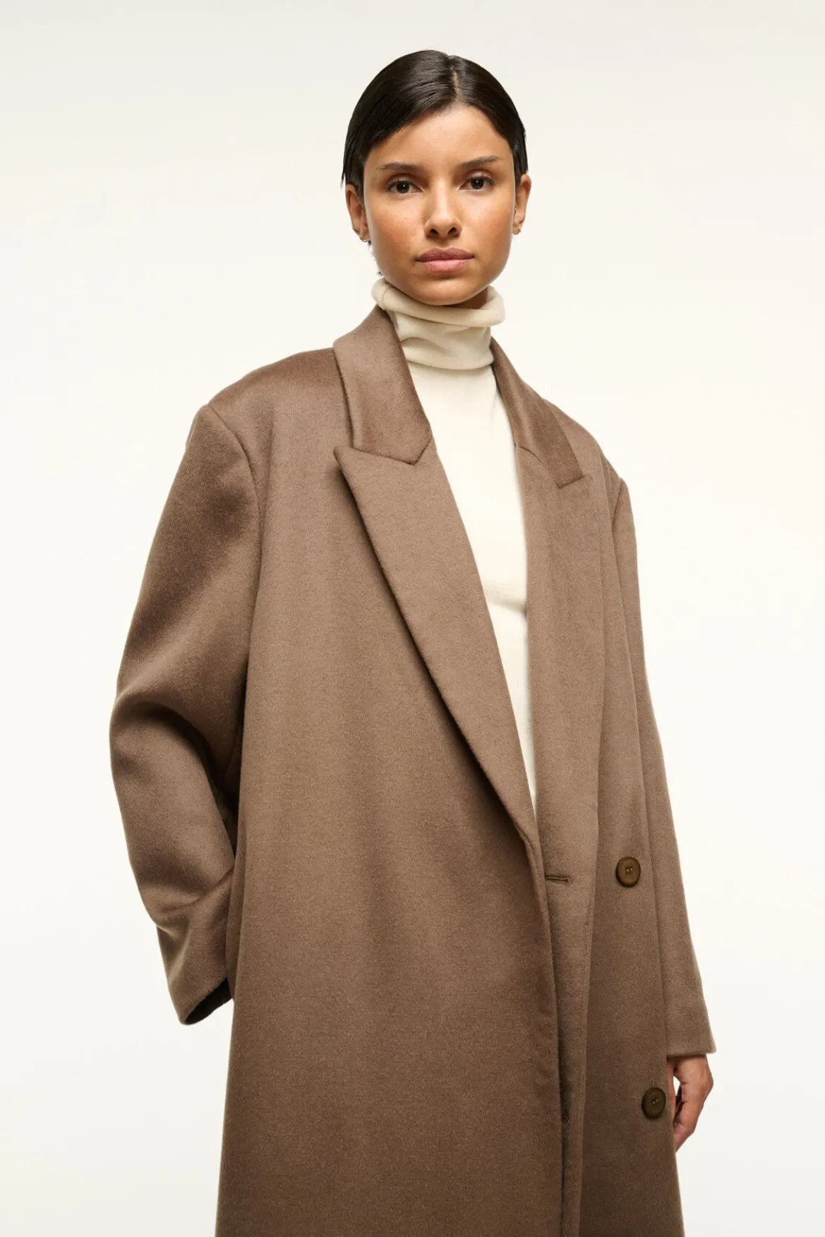 The Serge Coat is an oversized blazer-inspired coat with a crossover closure and a peaked collar.