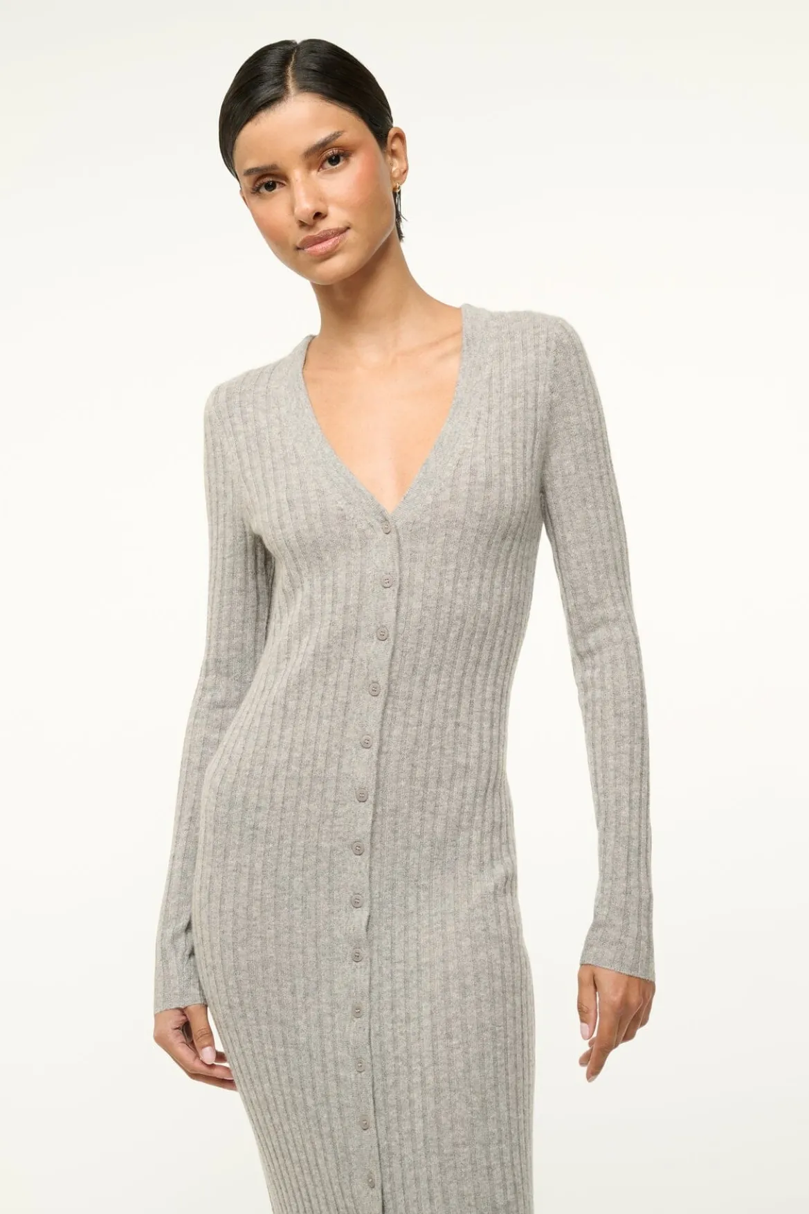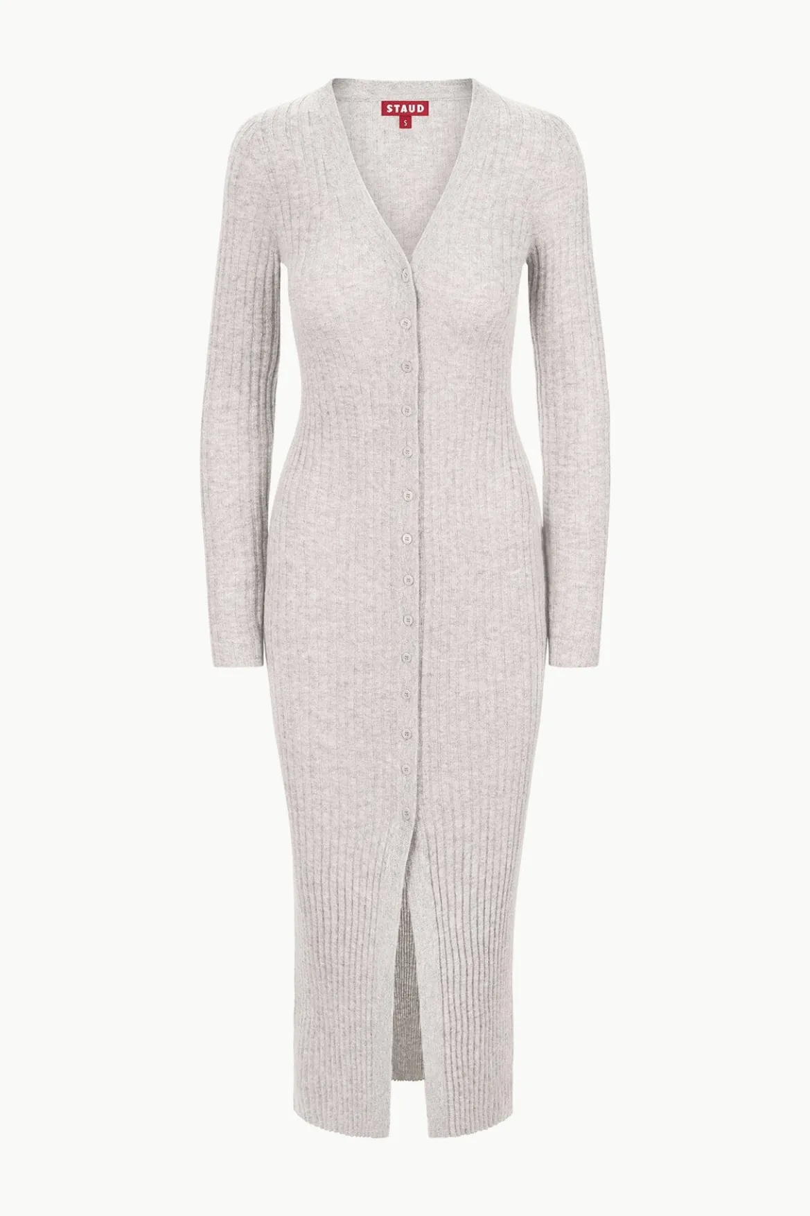 Our signature style, the Shoko Sweater, has been updated in a soft rib knit cashmere. It can be worn open as a long cardigan or as a dress.