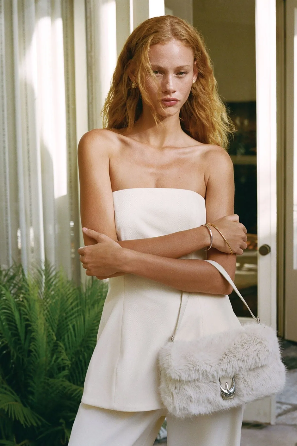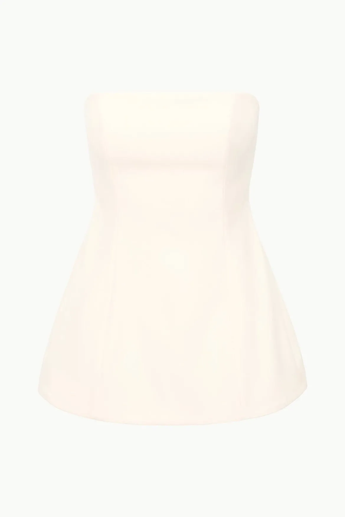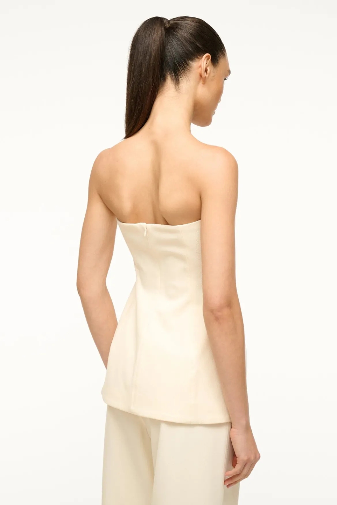 The Silvia Top is a strapless peplum style top with shaping at the hips and a center back zipper. The Silvia can be paired with the Grayson Pant for a matching set.