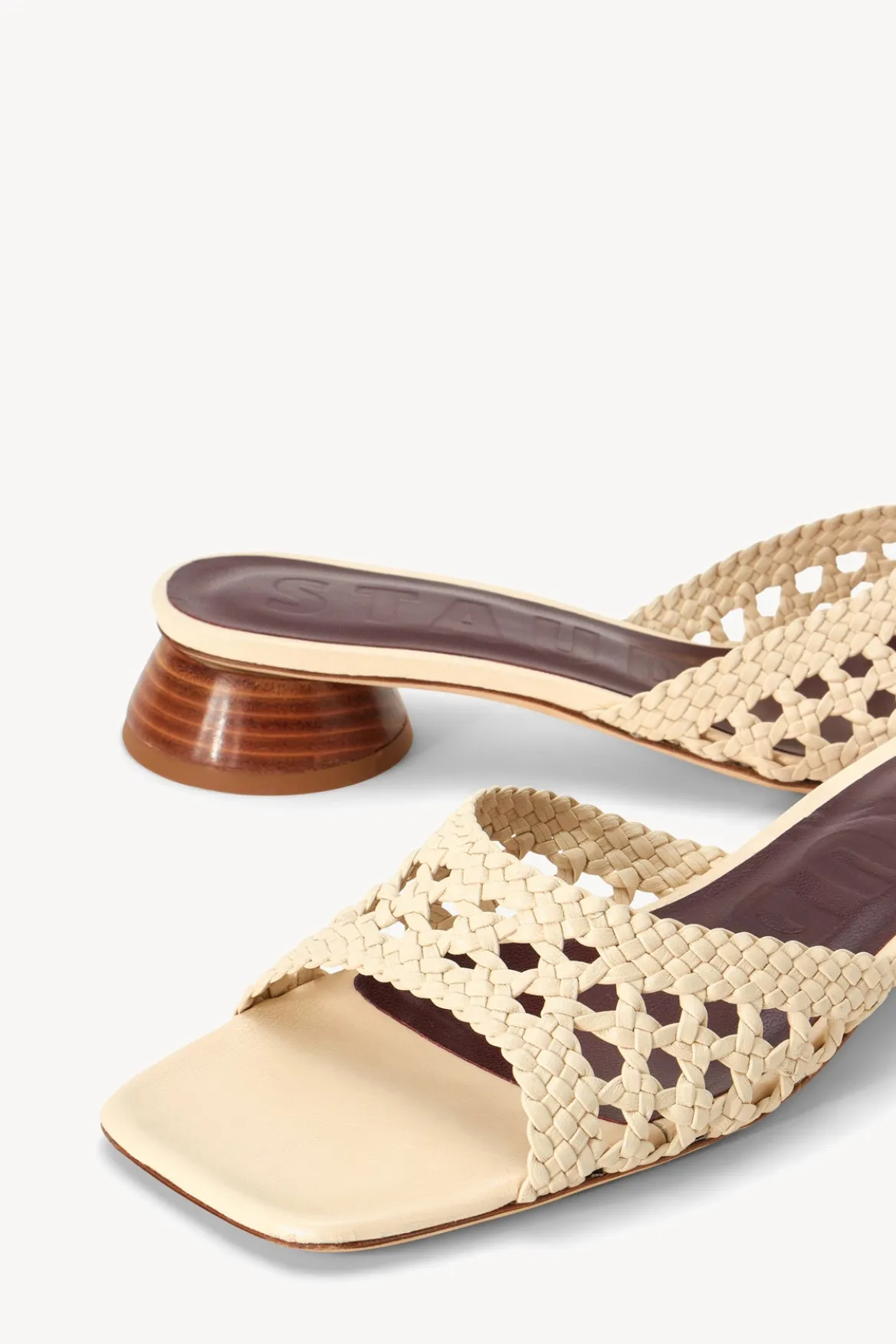 A hand woven take on our best-sellingSimone Mule, the Simone Crochet Heel features a wood-covered sculptural low heel.