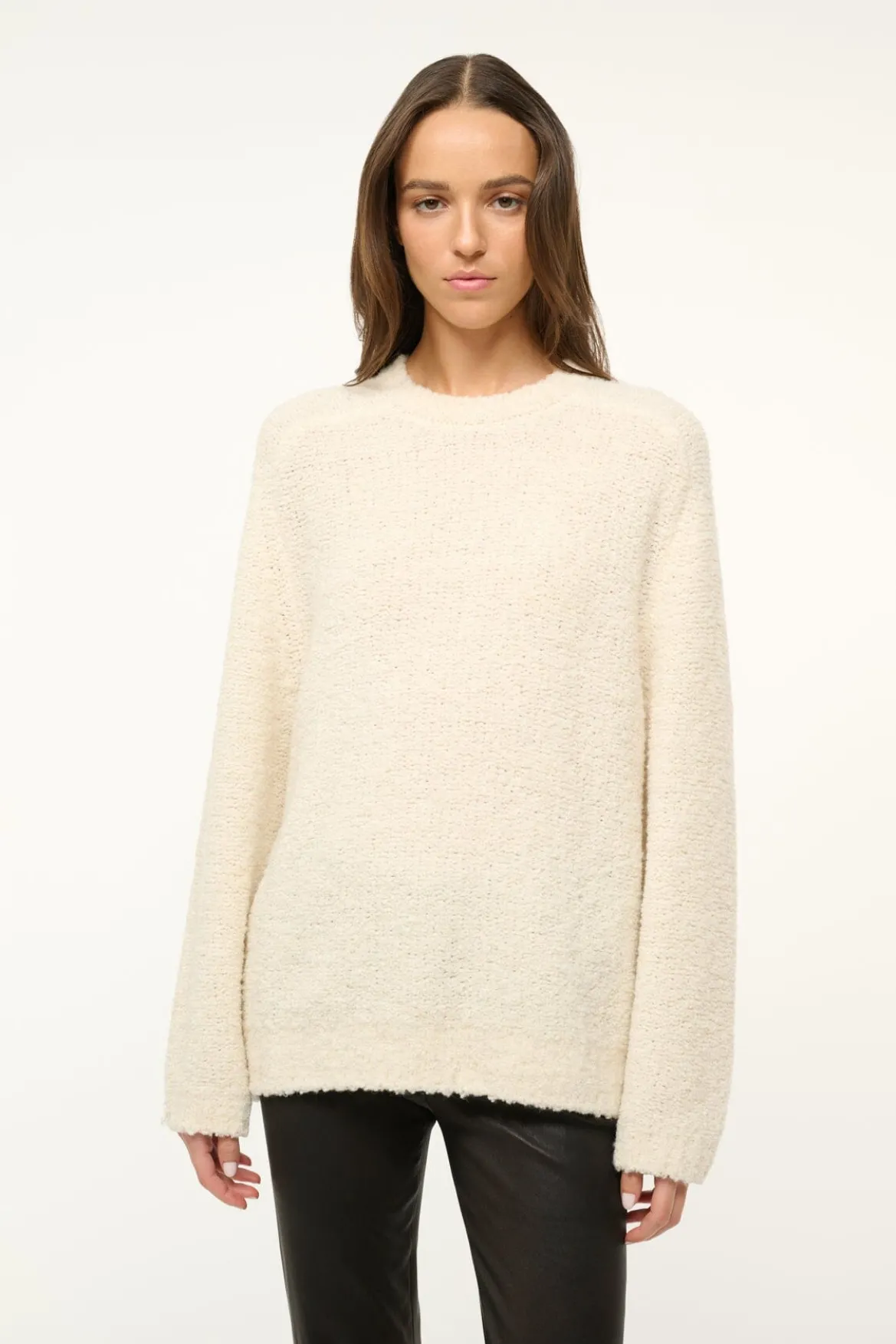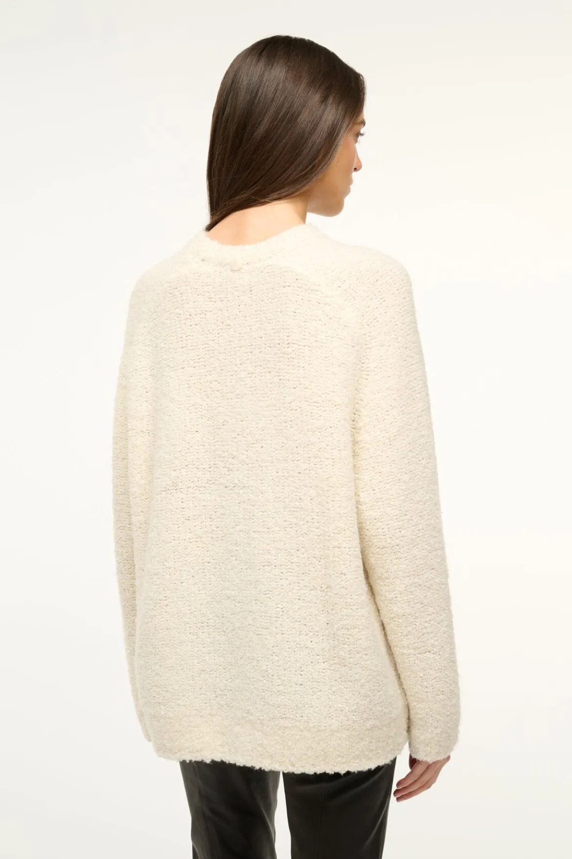 The Siren Sweater is a cozy two-in-one sweater and scarf combo. This style is an oversized crewneck boyfriend sweater with a matching, detachable, oversized scarf perfect for layering through Fall.