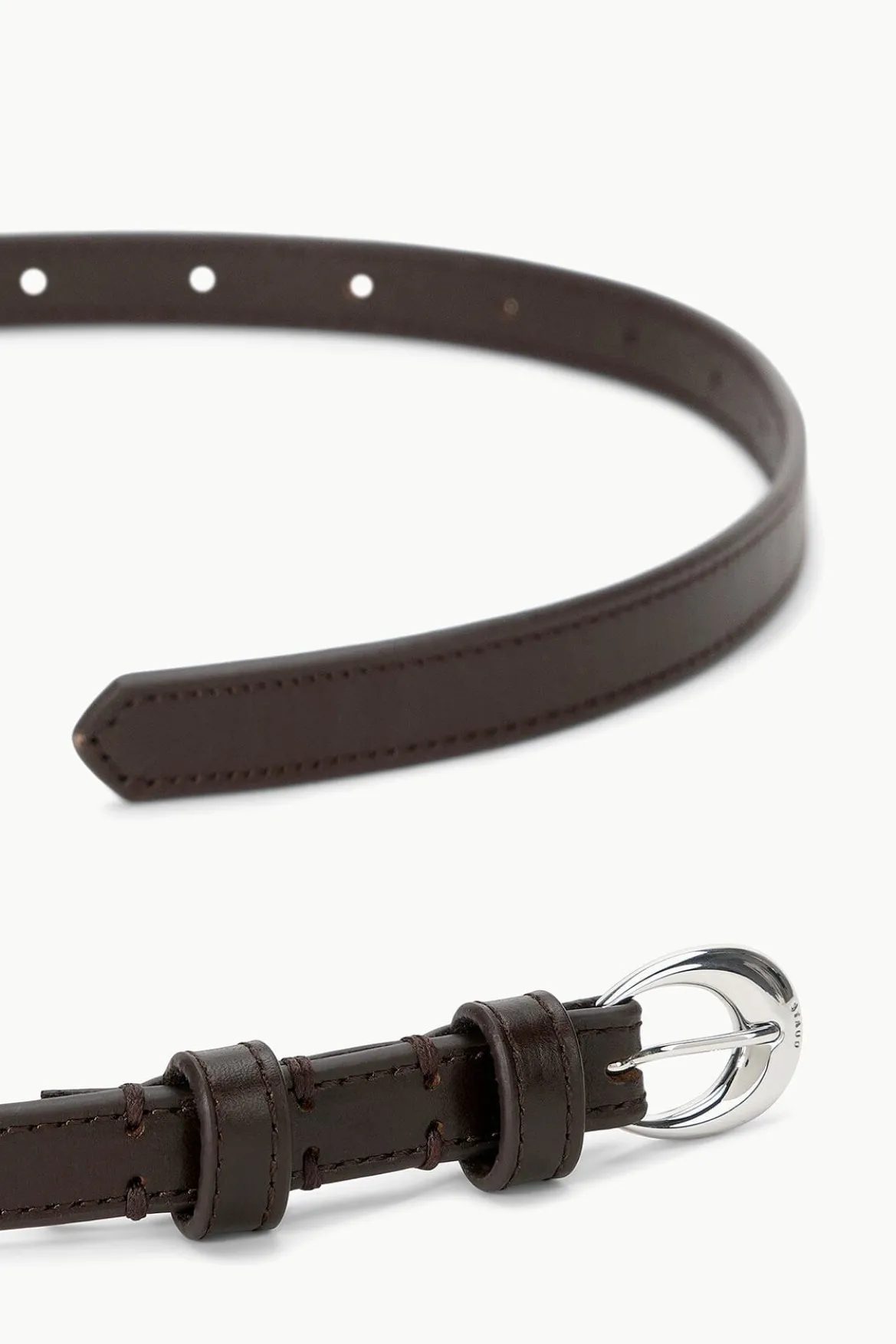 Thin leather belt featuring our crescent moon-shaped buckle hardware.