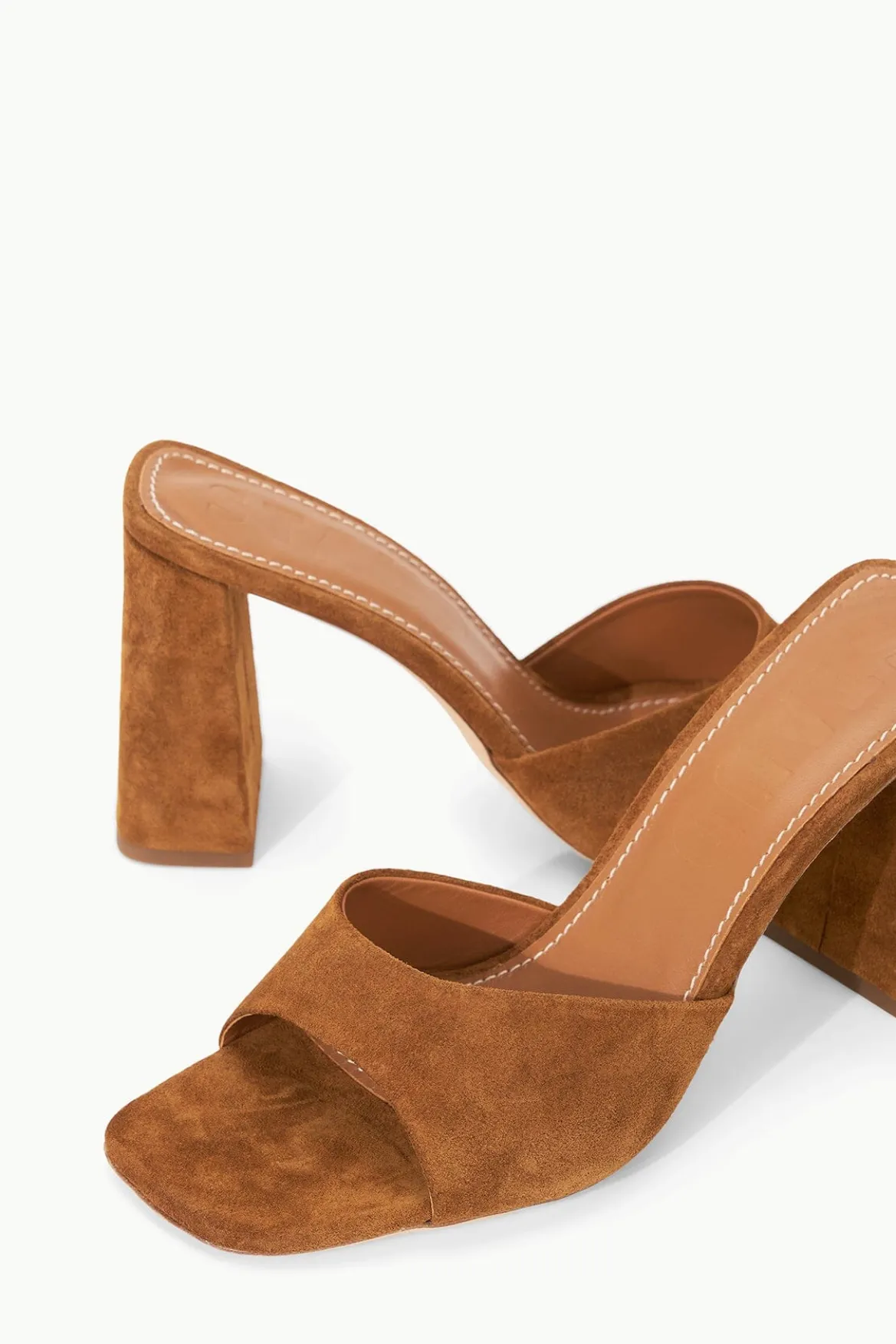 The Sloane Heel is an open toe leather sandal with chunky heel and square toe. This style features a cushioned leather footbed, leather sole and rubber heel cap.