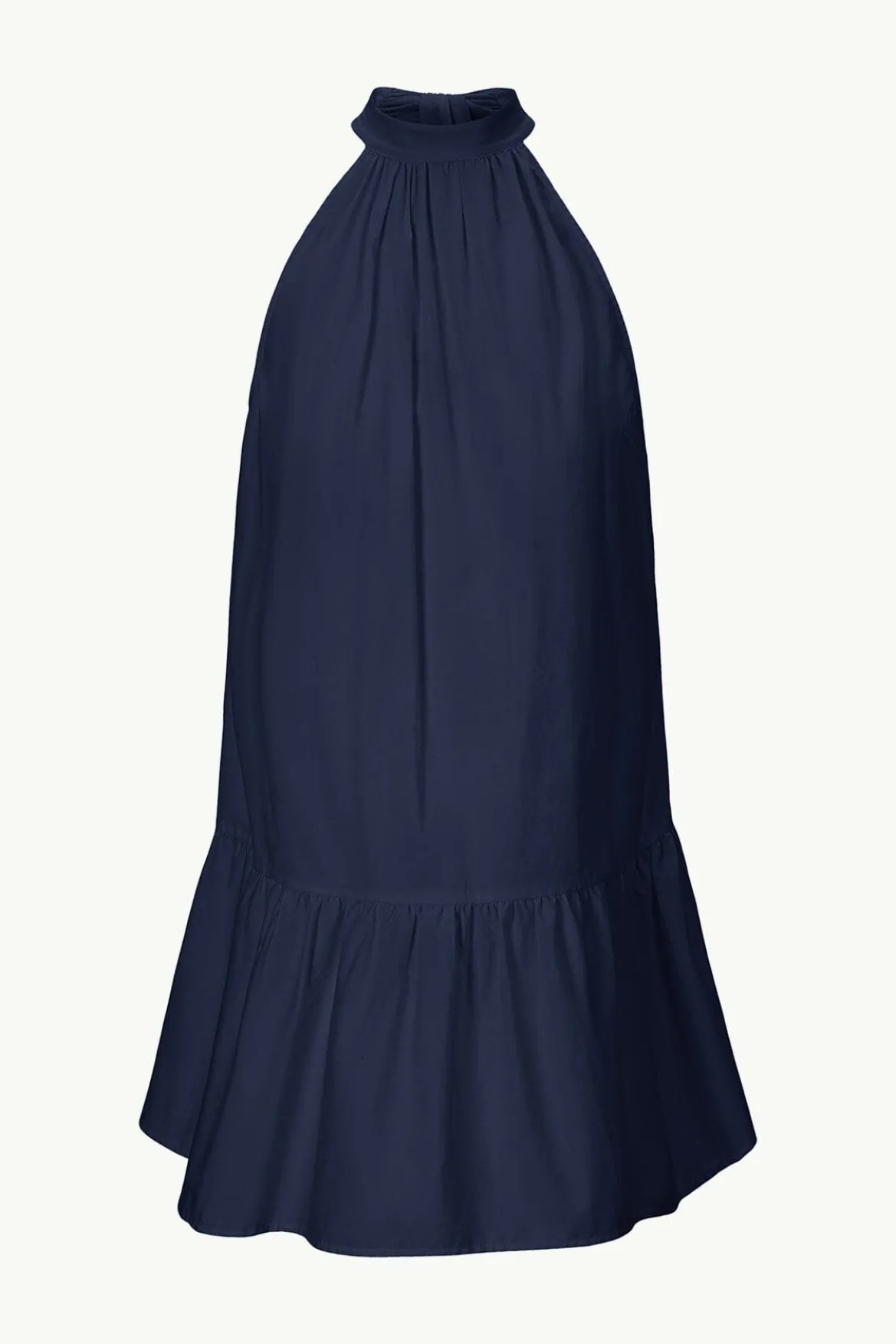 An easy a-line mini dress constructed out of cotton poplin, the Marlowe features a neck tie detail and peplum hem.