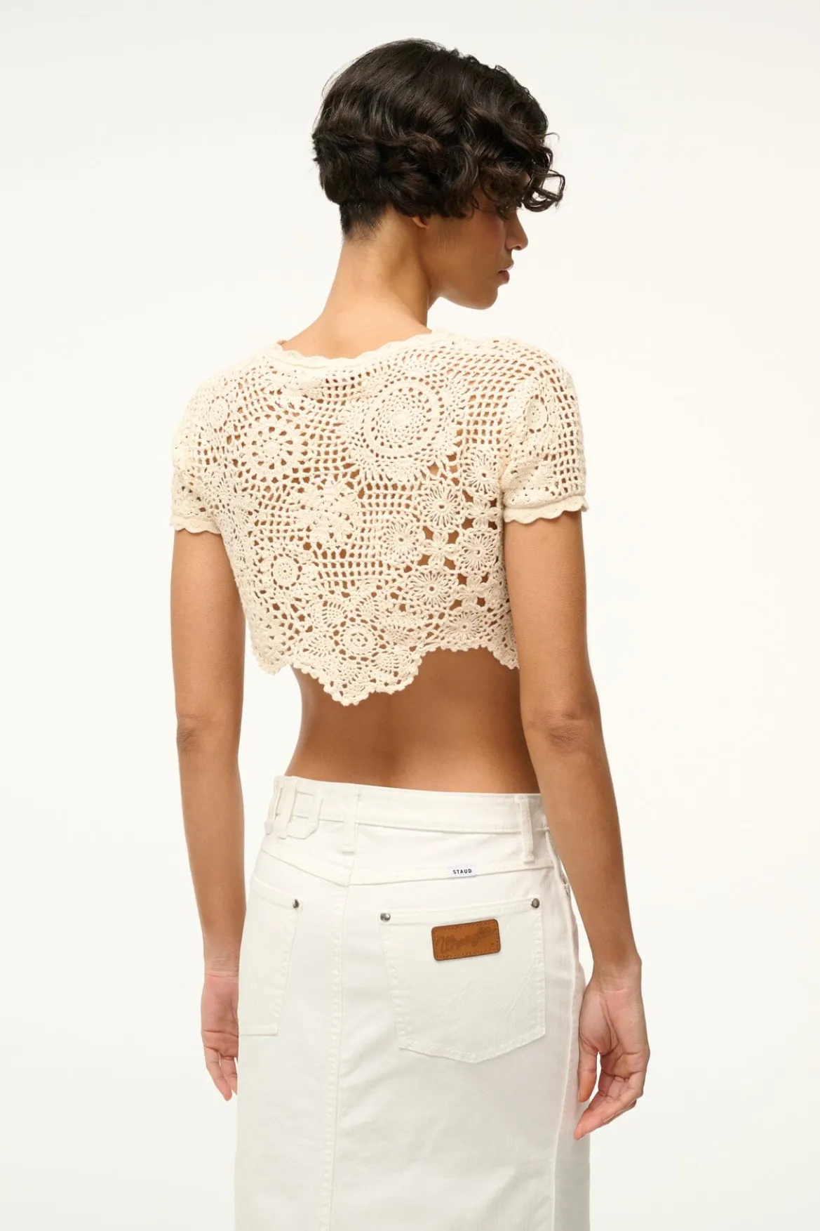 A perfect Summer statement, the Starlight Top is crafted from a cotton crochet fabric and features an irregular scalloped hem design.