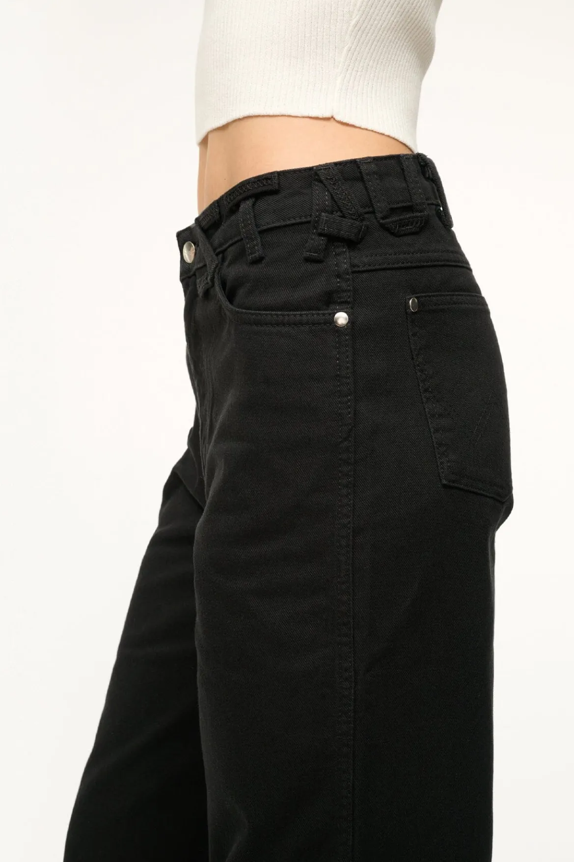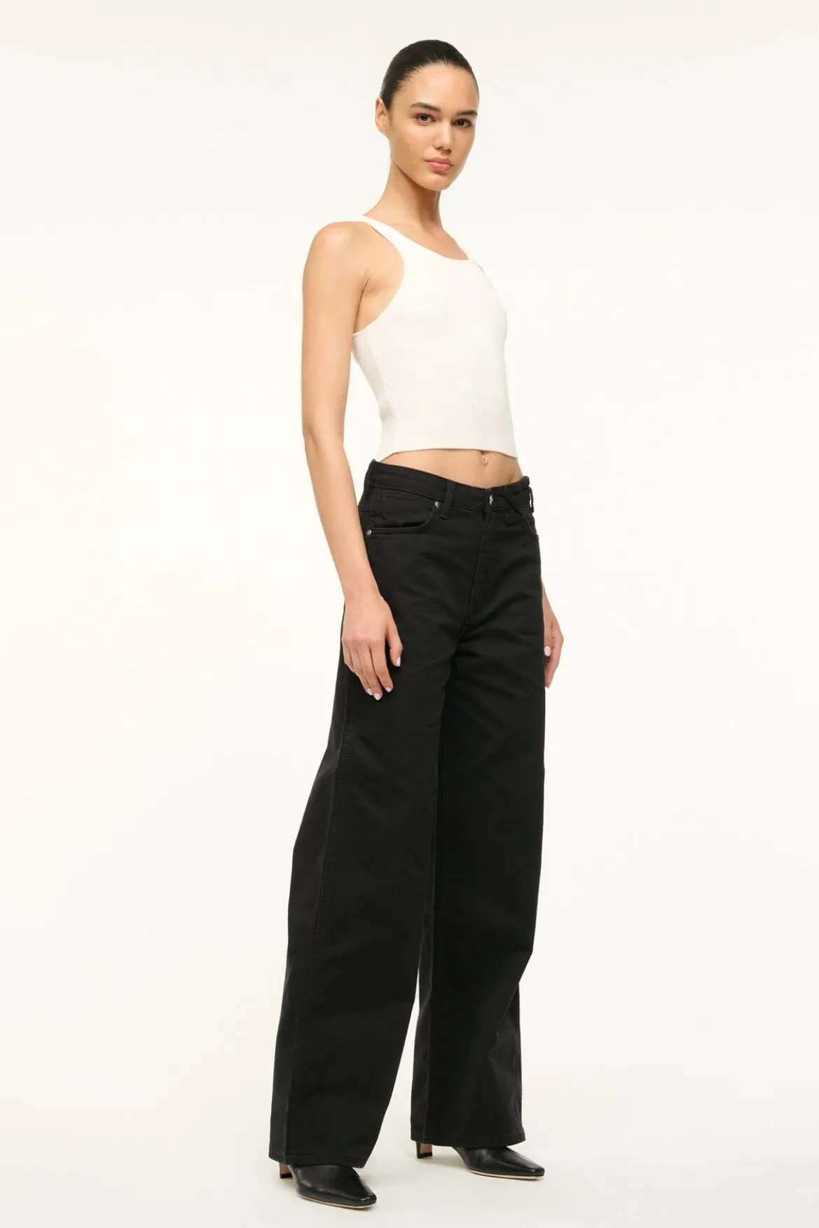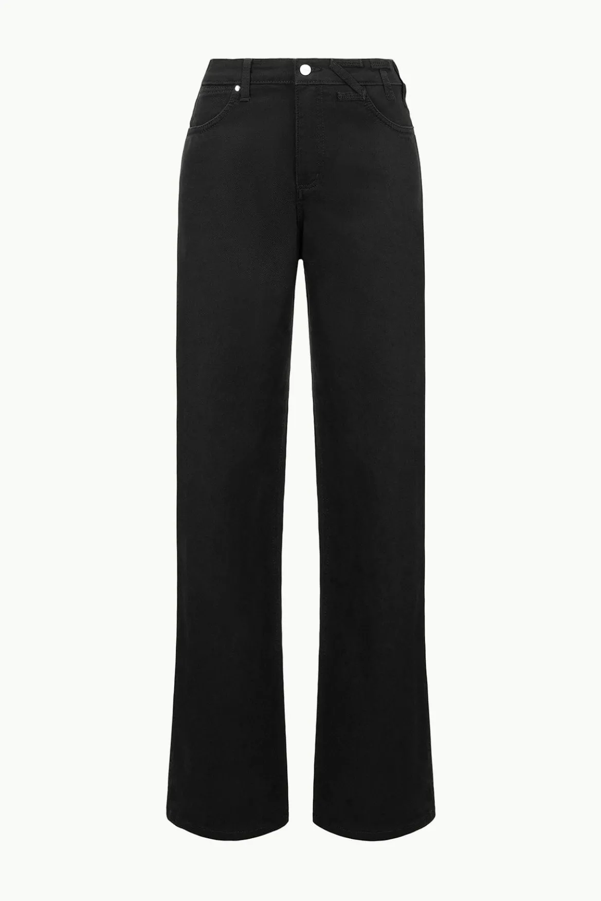 The Loose Jean is our ultra-relaxed fit. This wide leg jean sits below the natural waist for a mid-rise fit. This style features our STAUD belt loop detail at the waist. Size down to wear as a high-rise fit.