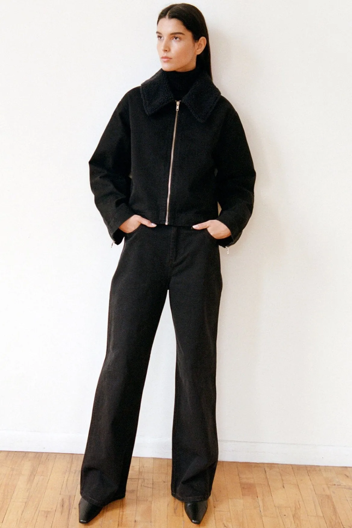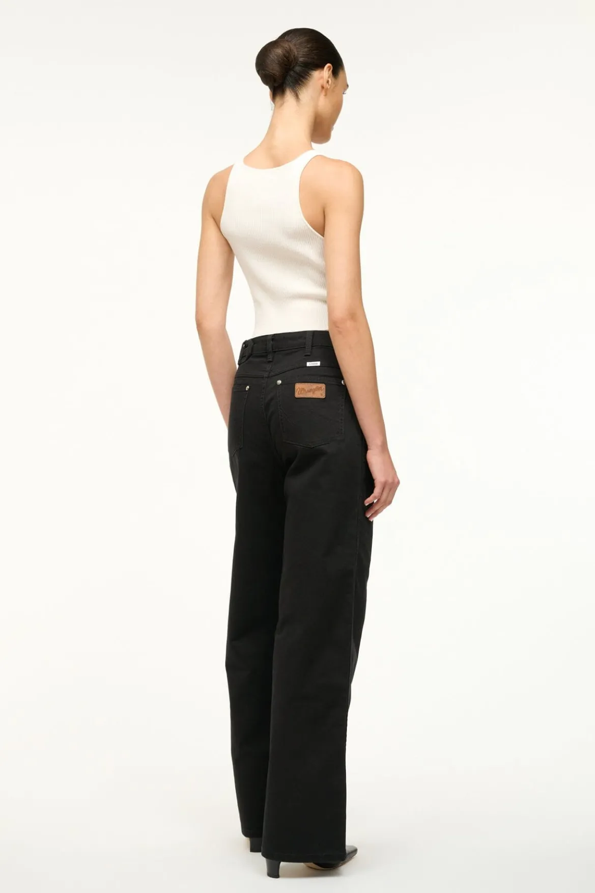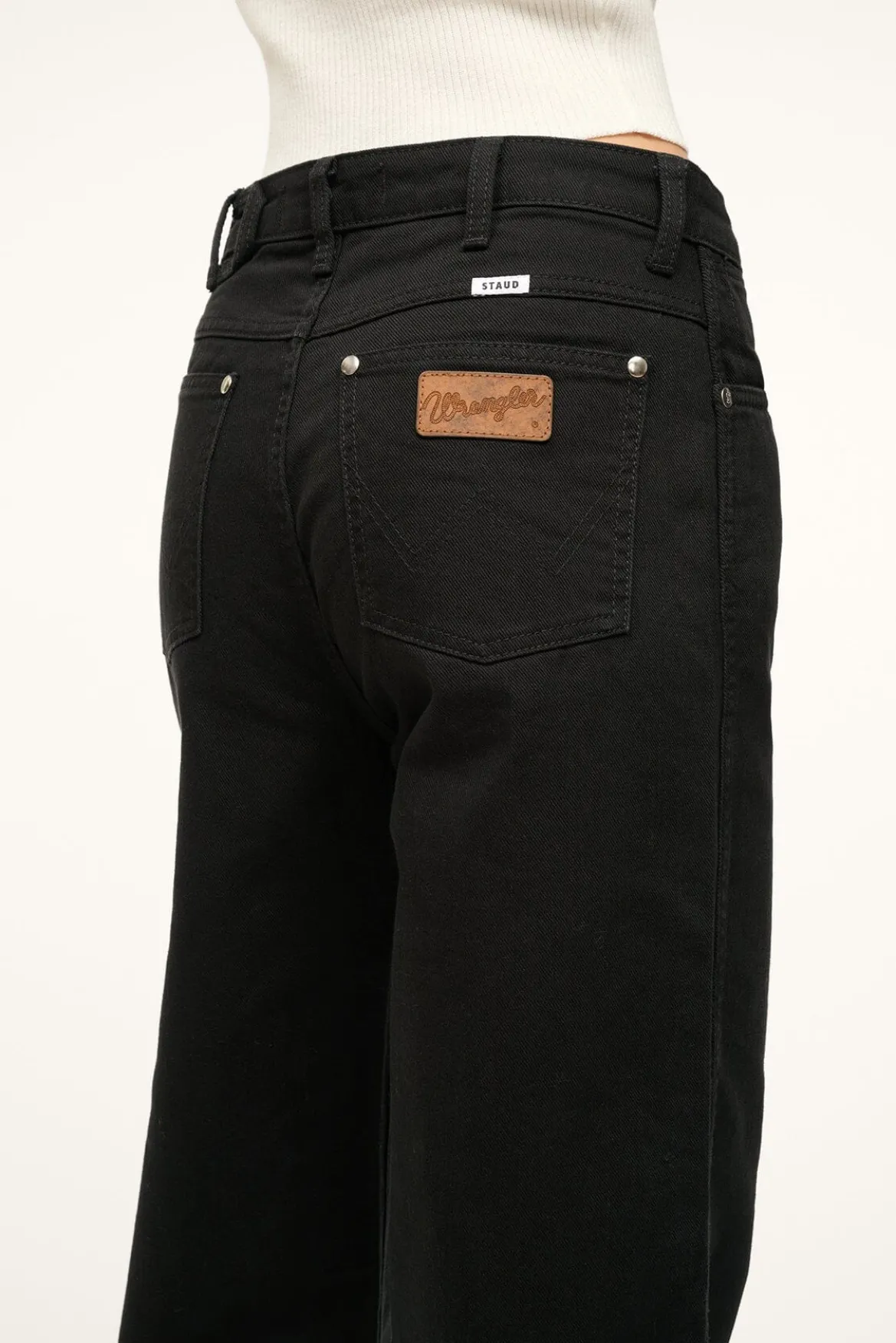 The Loose Jean is our ultra-relaxed fit. This wide leg jean sits below the natural waist for a mid-rise fit. This style features our STAUD belt loop detail at the waist. Size down to wear as a high-rise fit.