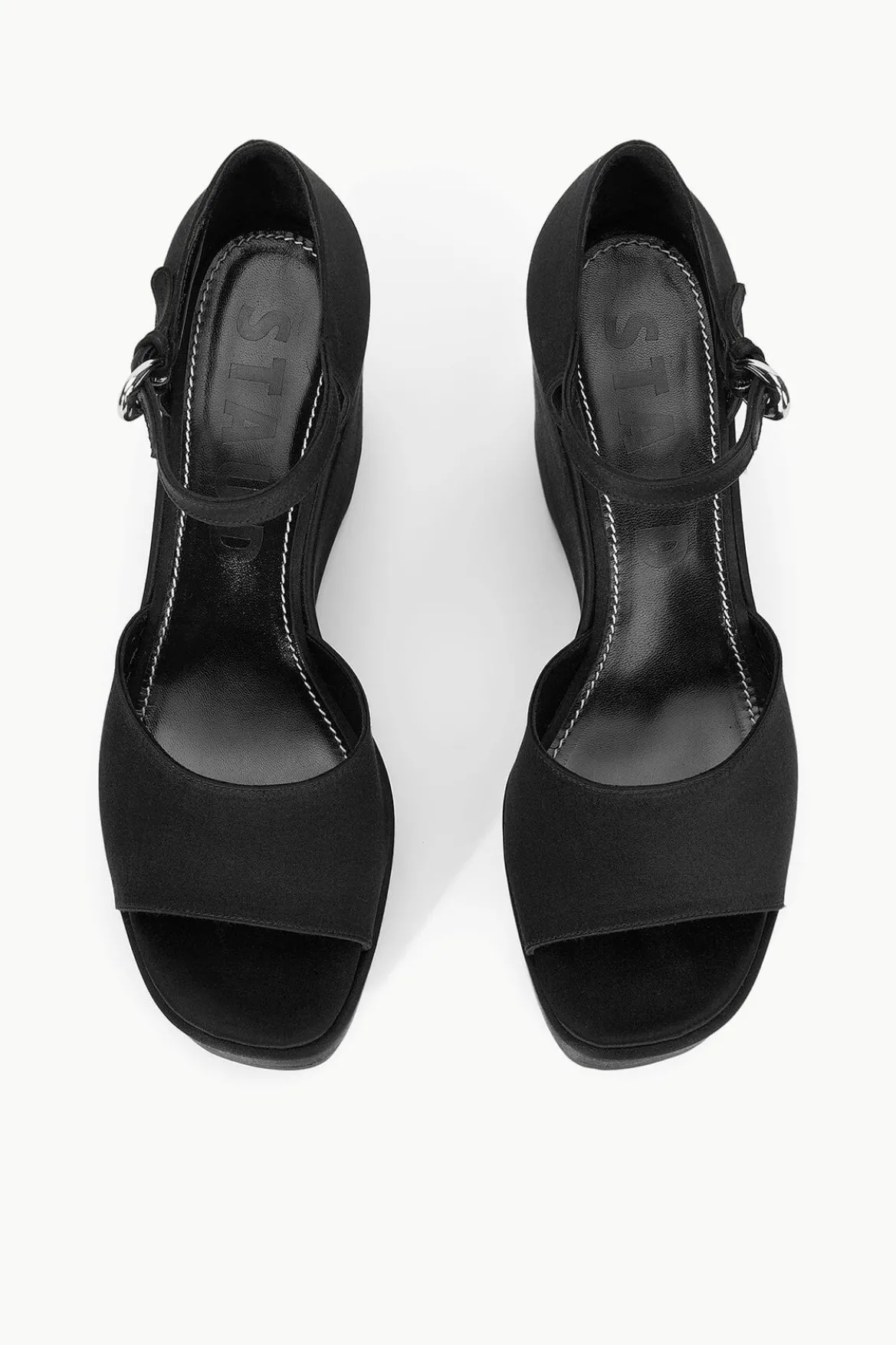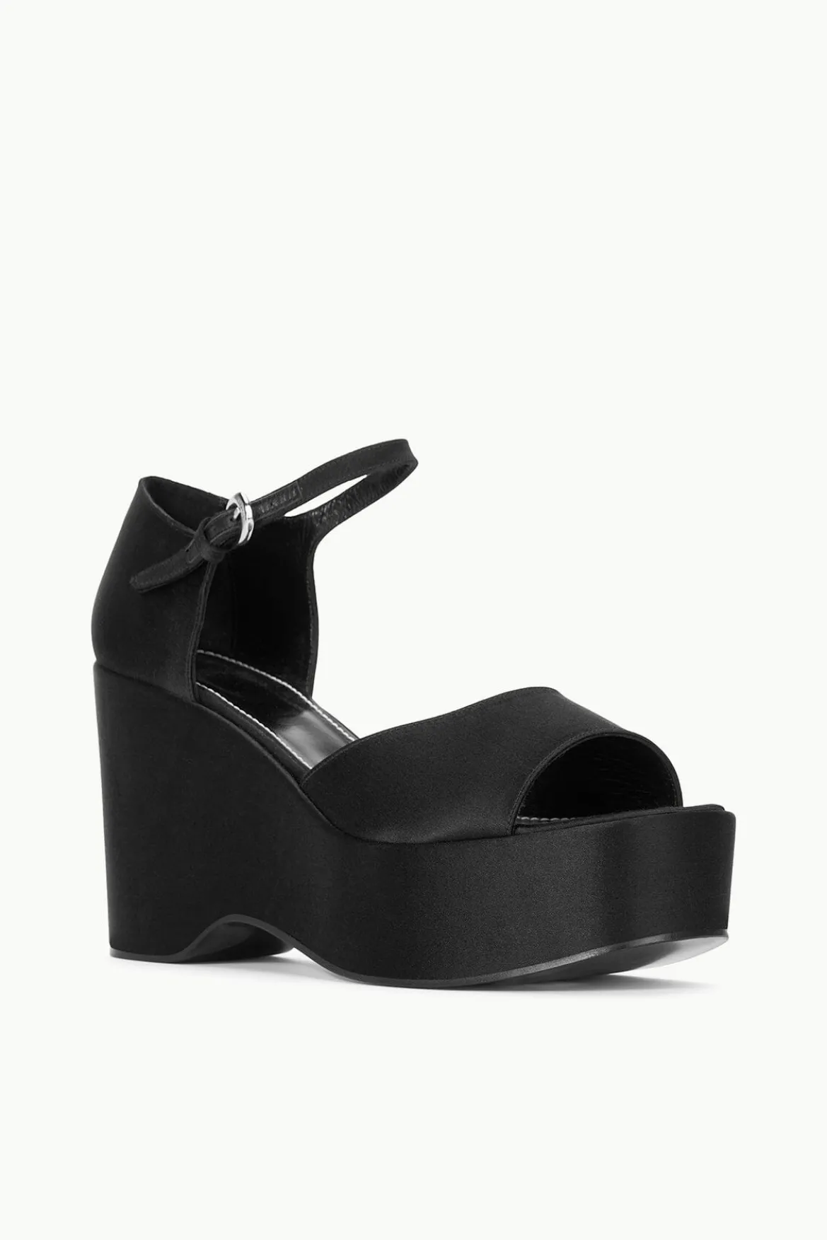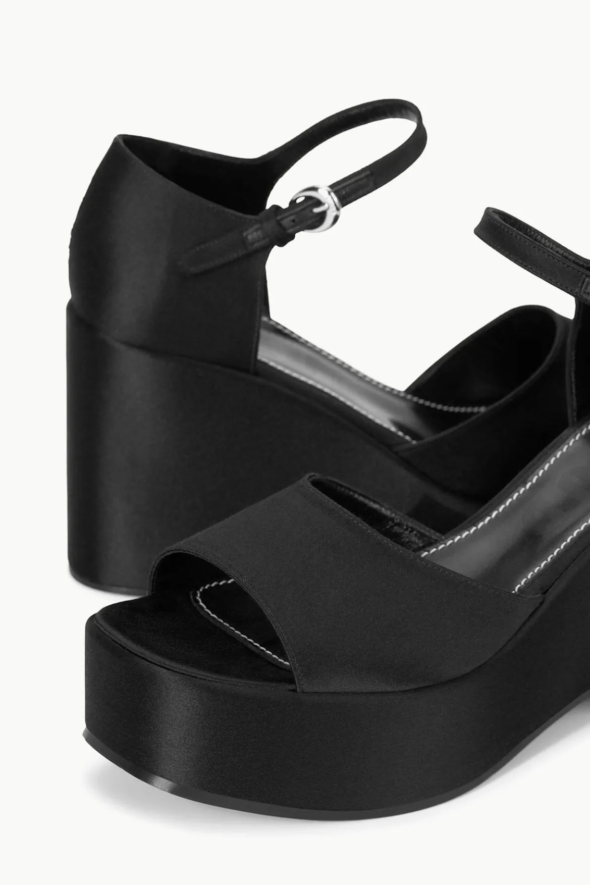 A 90’s-inspired satin platform, the Stella features an open toe and ankle strap perfect for both long flared pants and dresses alike.
