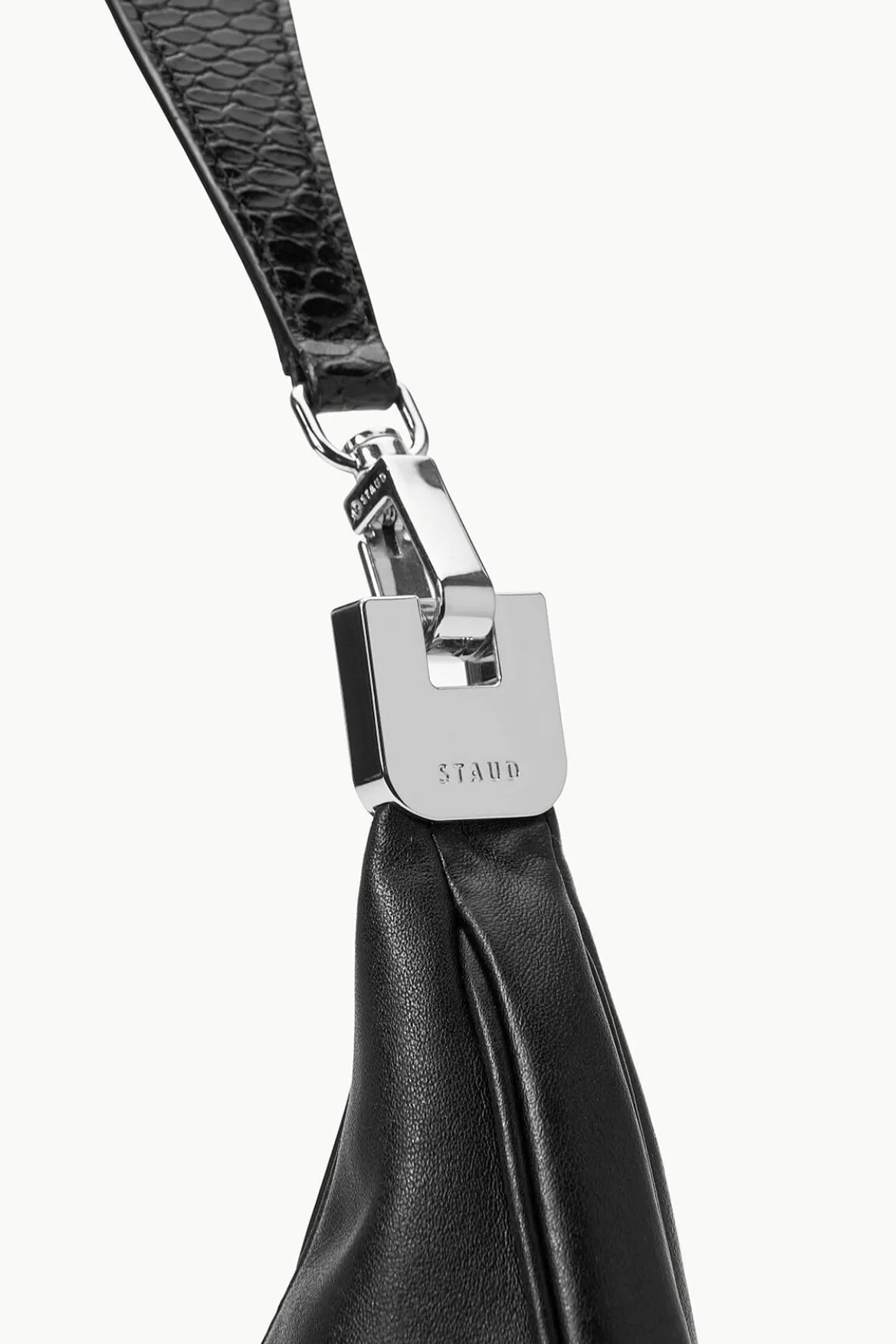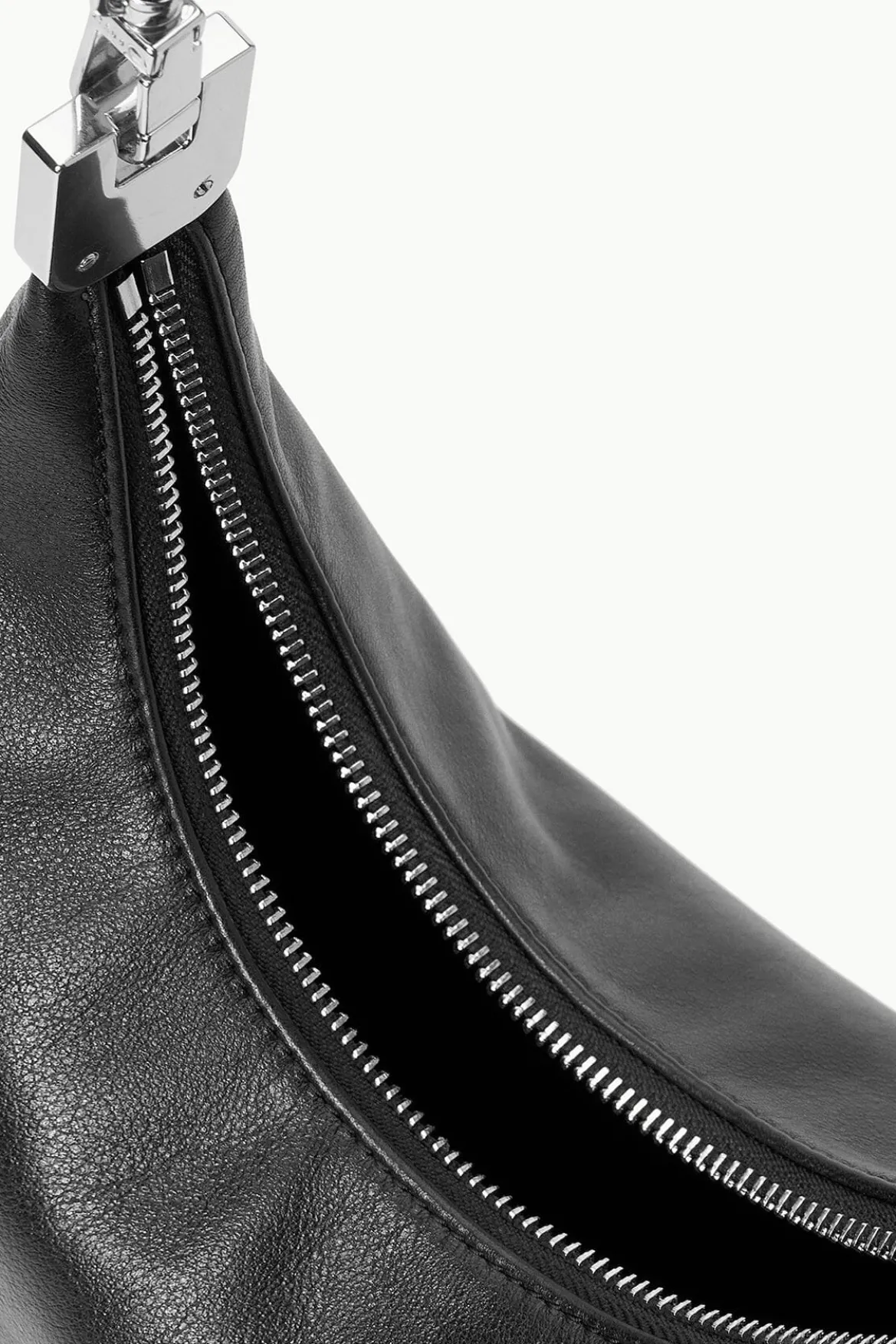 The Sylvie is a shoulder bag with a silver-toned hardware detail on the strap, a zip closure, and an interior zip pocket.