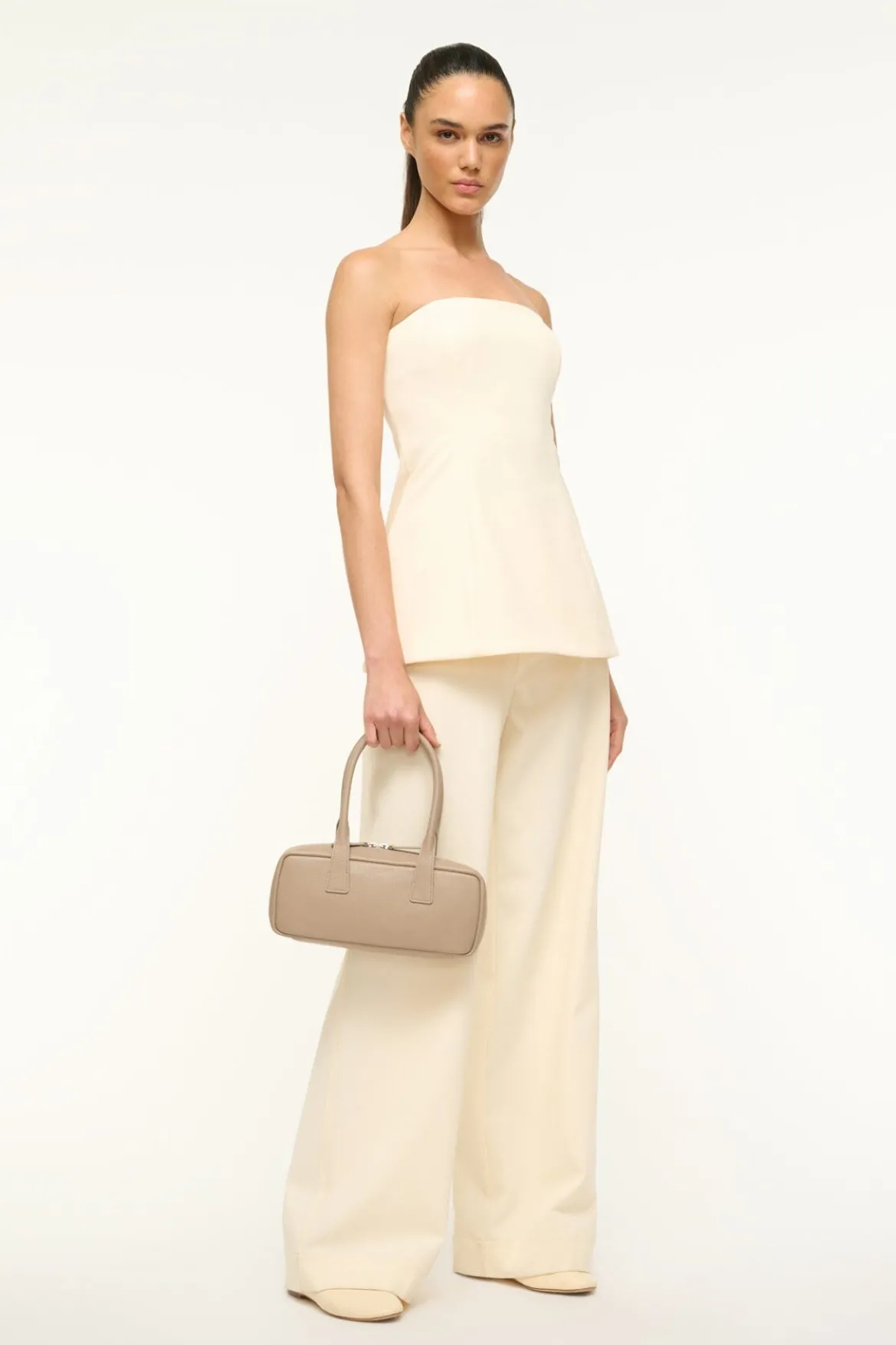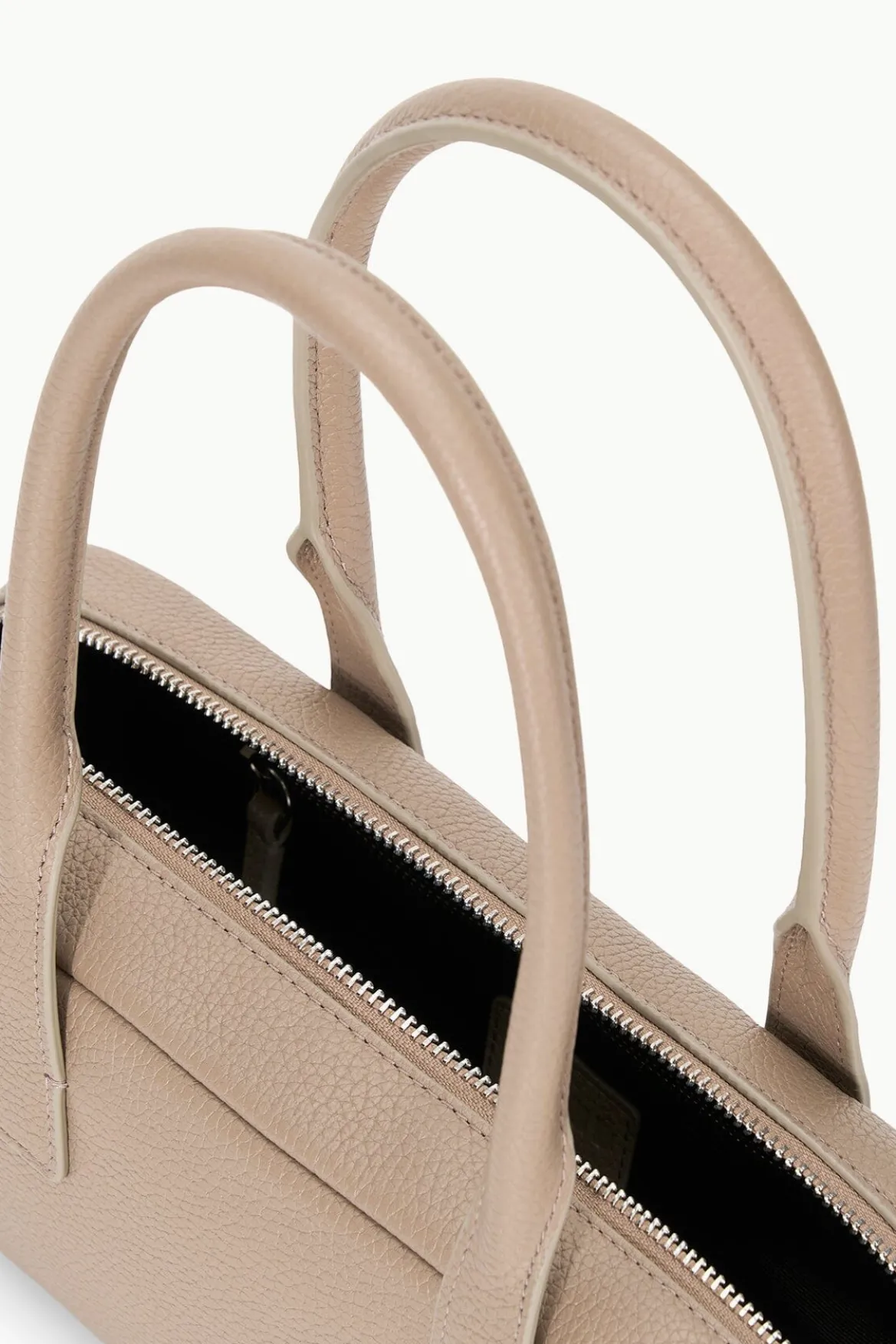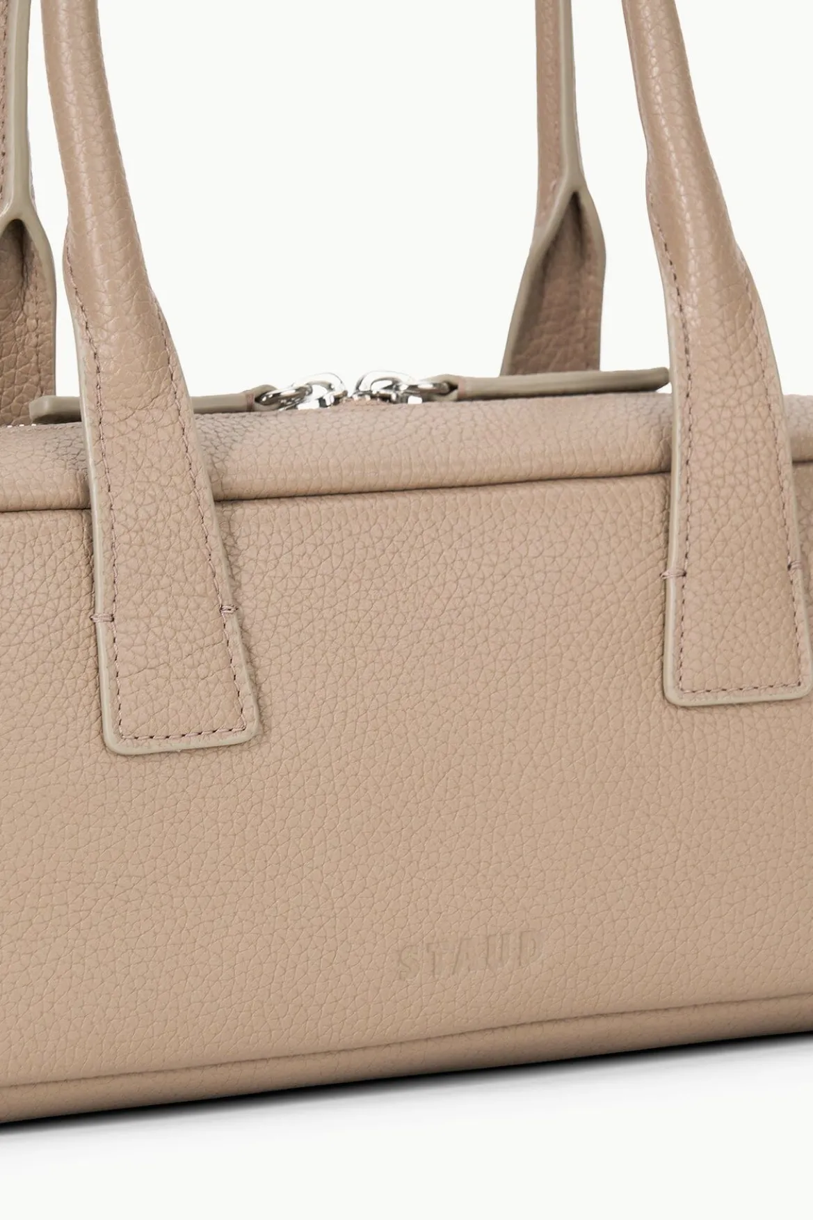 The Dude Bag is a soft pebbled leather shoulder bag with a 2-way exterior zipper and an interior zip pocket.