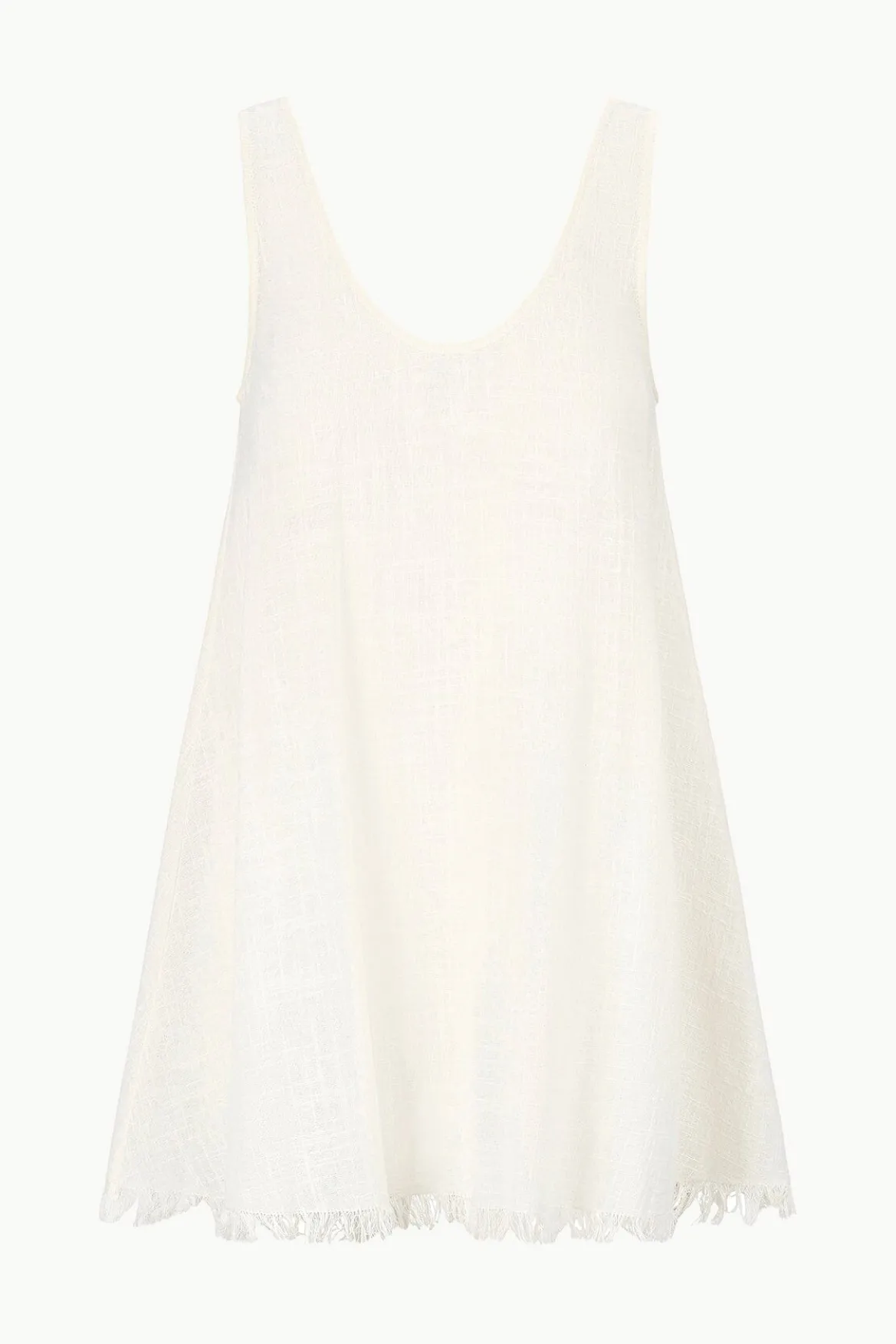 The Tillie Cover-up Dress is a micro mini style, in a sheer gauze fabrication and features a frayed hem.