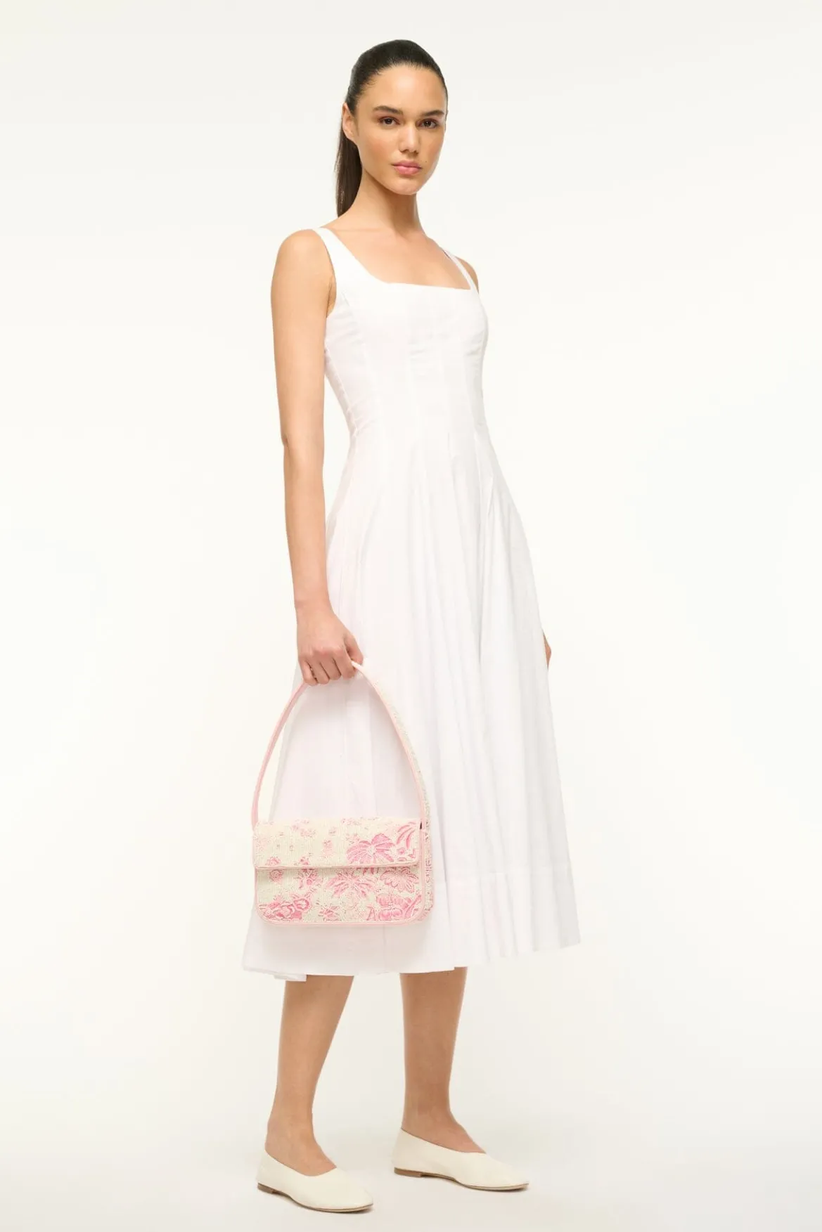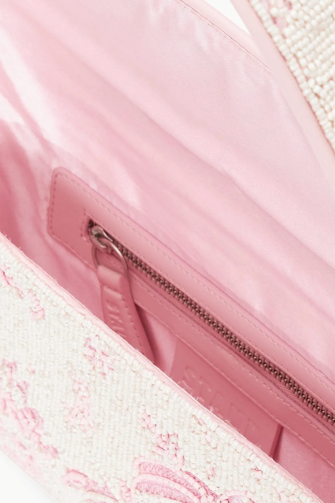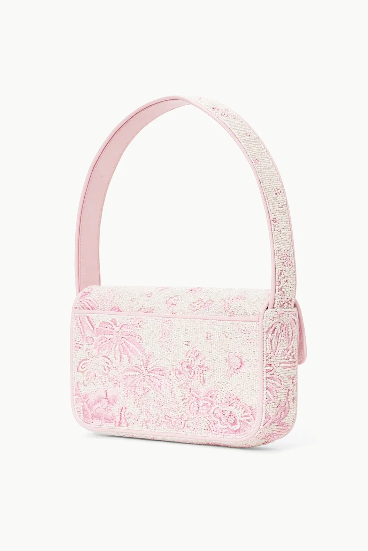 Back in a cherry blossom pink update, the best-selling Tommy Bag is a hand-beaded shoulder bag with vegan leather piping. This style features a single flap closure, inner zip pouch and magnetic pocket on the back.