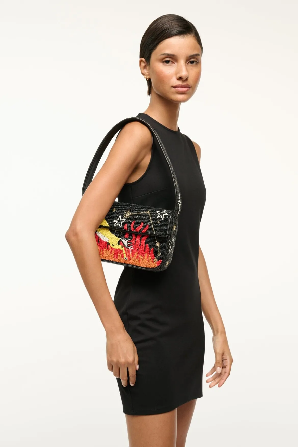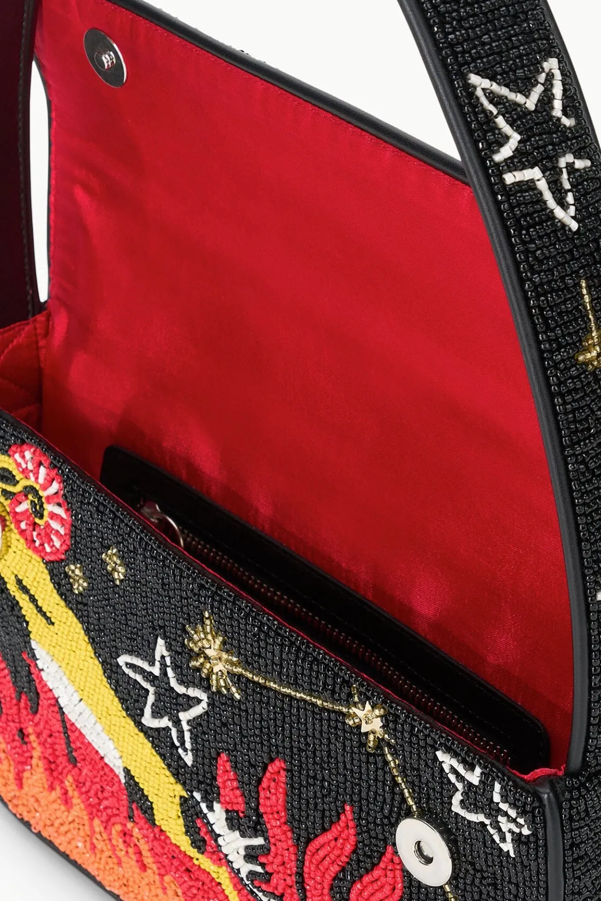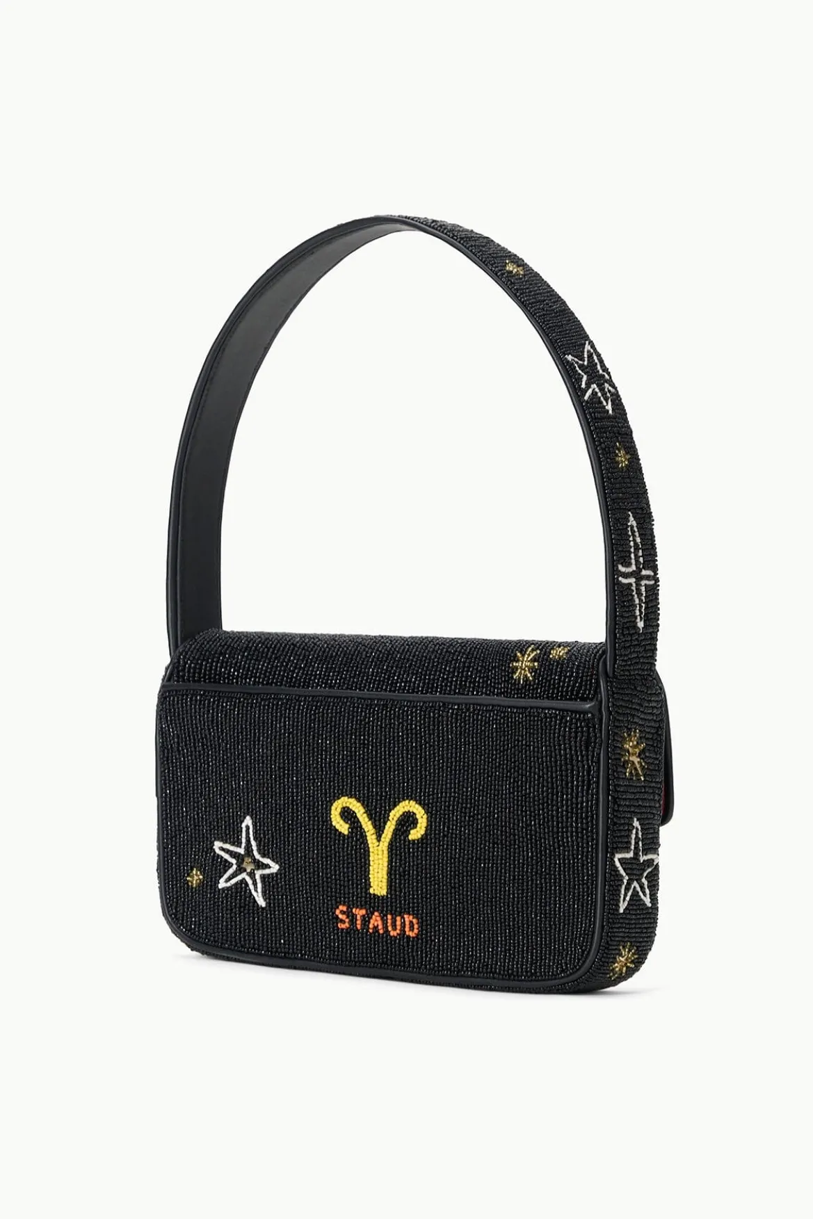 Twelve new beaded Tommy bags inspired by the star signs of the zodiac. This style is hand beaded and features vegan leather piping, a magnetic snap closureand has a pocket on the back.