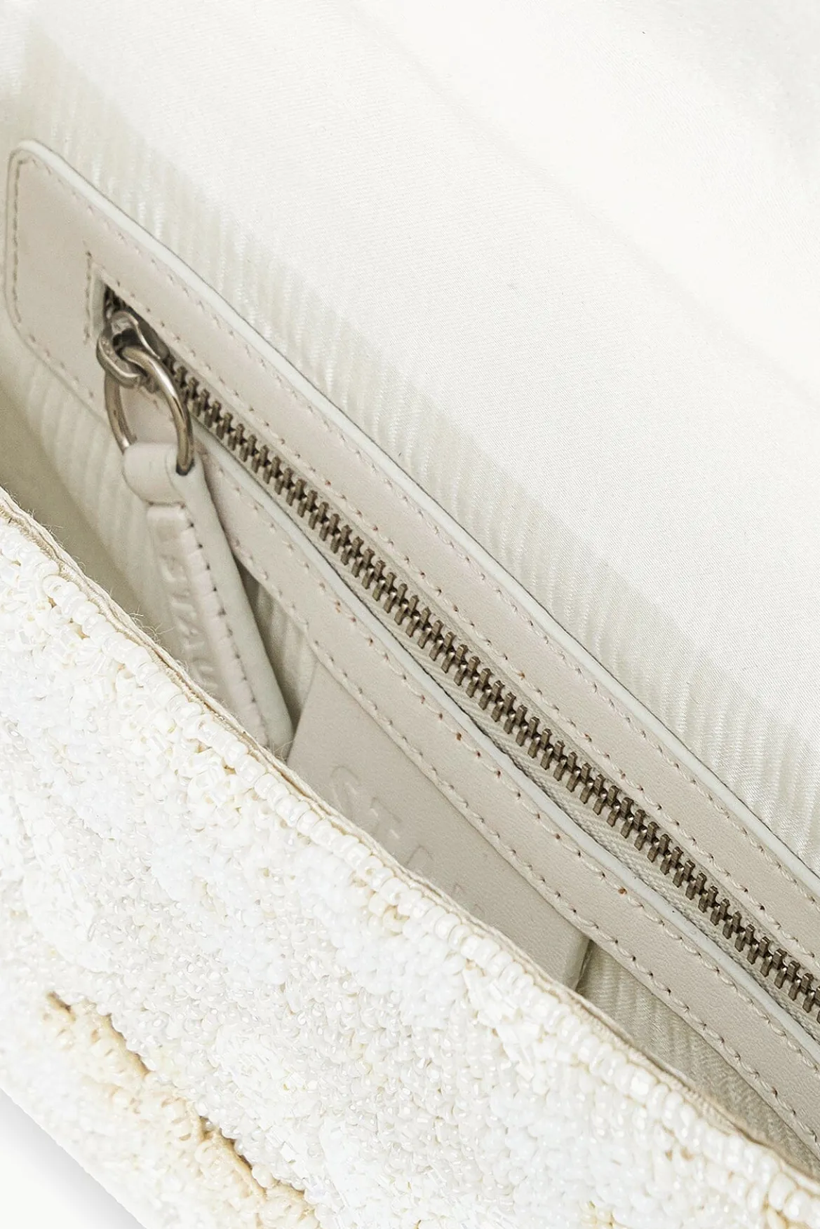 The classic hand-beaded shoulder bag with vegan leather piping. This Tommy update features embellished 3D flowers and magnetic snap closure.