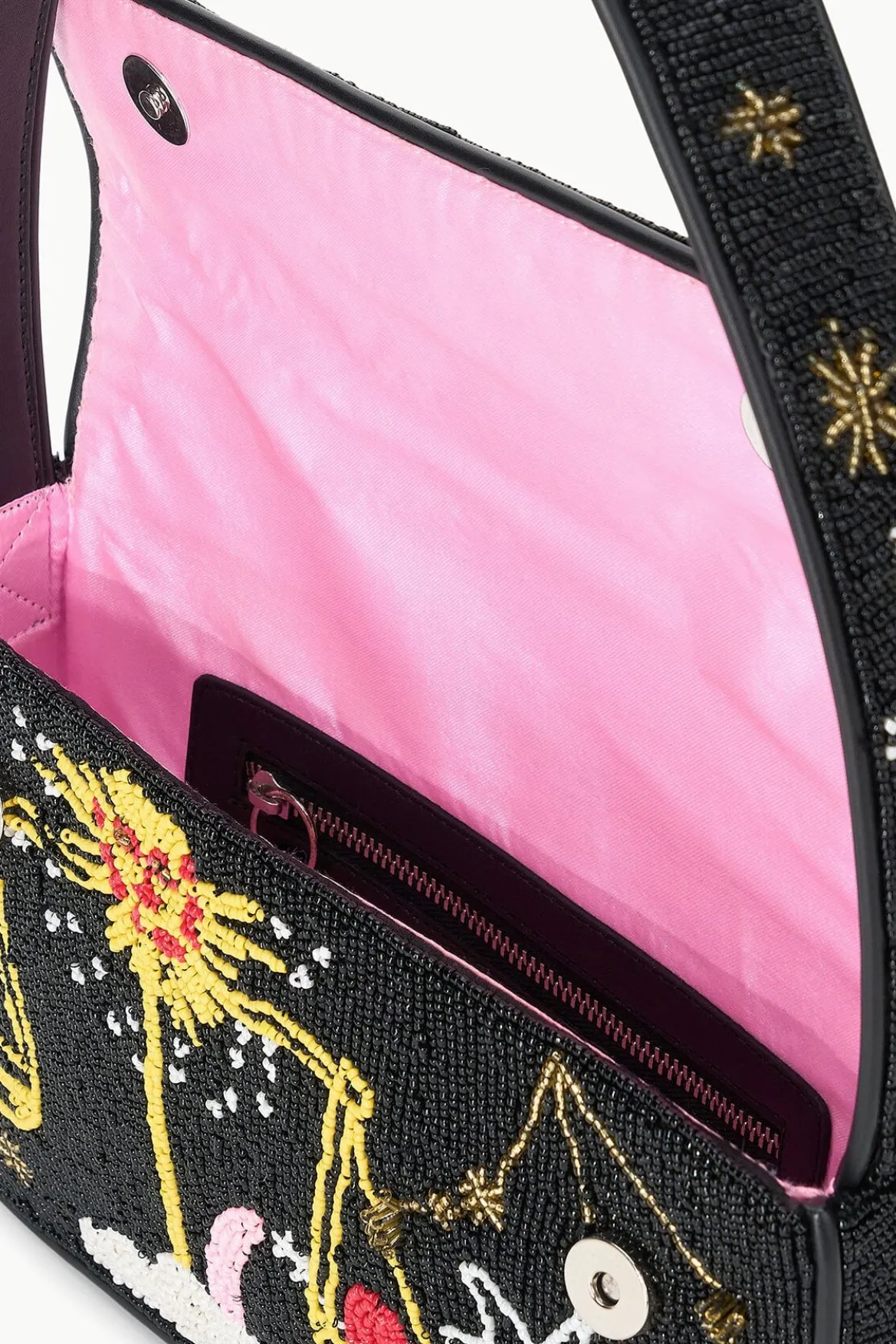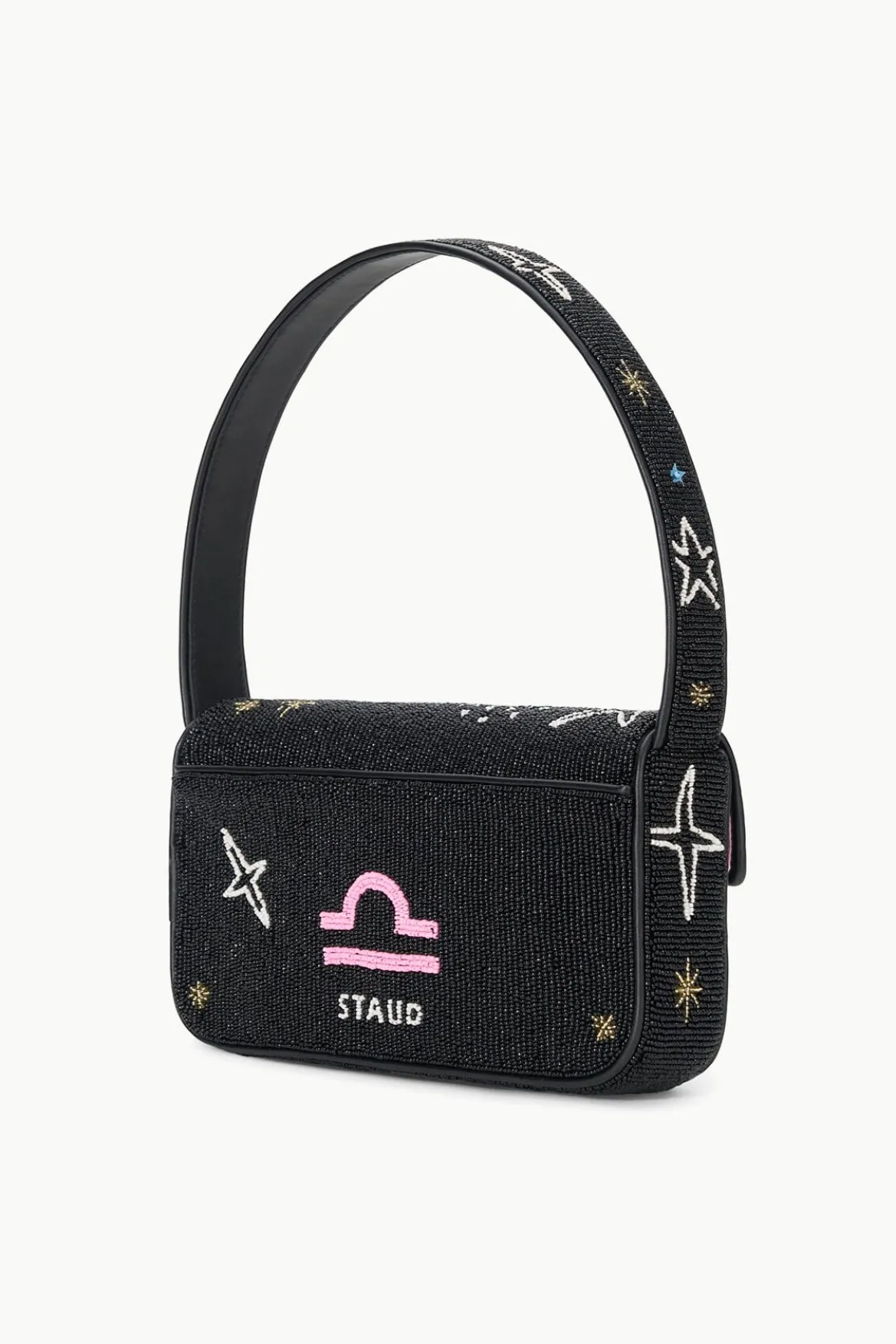 Twelve new beaded Tommy bags inspired by the star signs of the zodiac. This style is hand beaded and features vegan leather piping, a magnetic snap closureand has a pocket on the back.