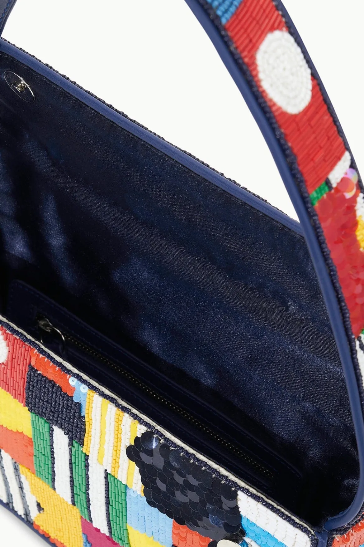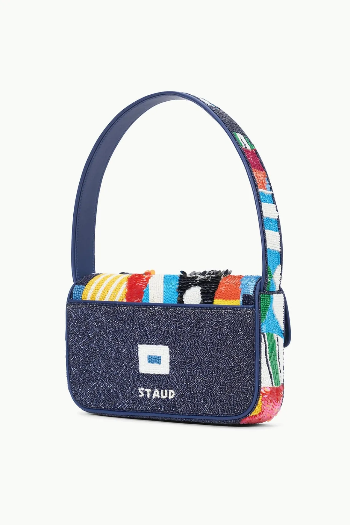 The Tommy Bag has been updated for Summer in a nautical inspired design. This style is hand beaded and features a single flap closure, inner zip pouch and has a pocket on the back.
