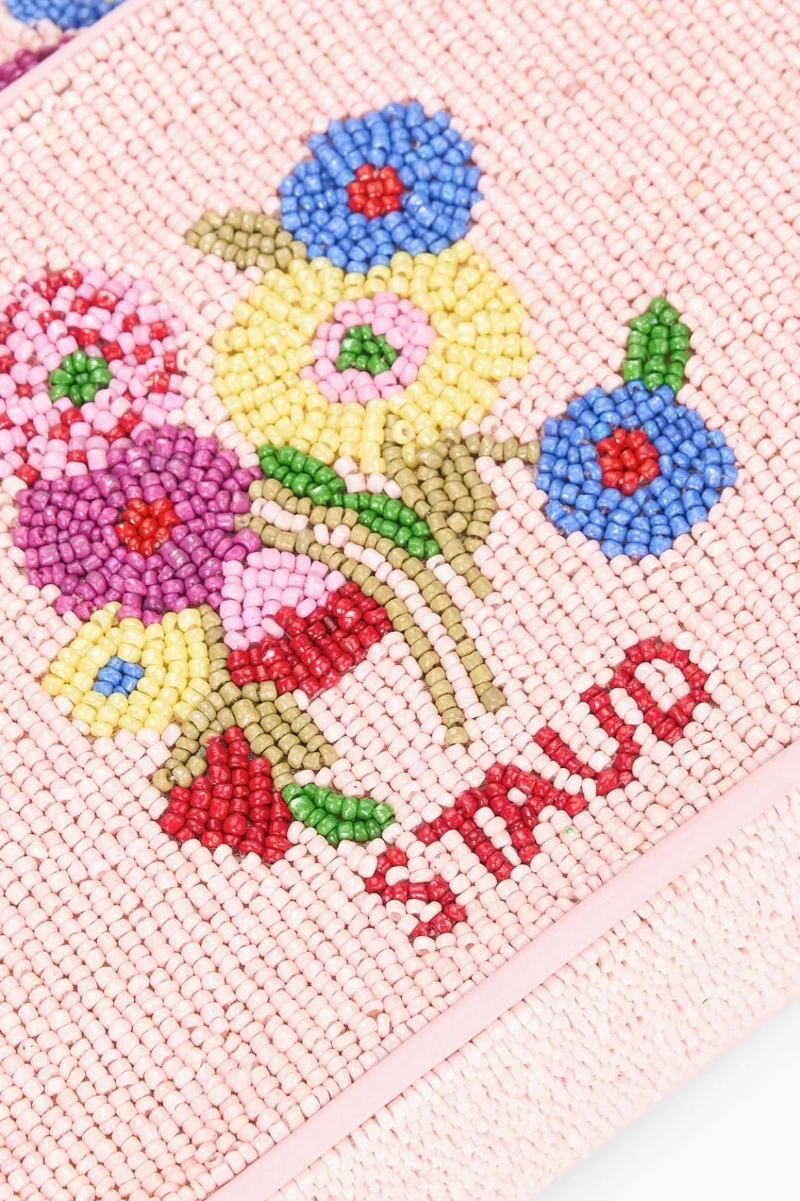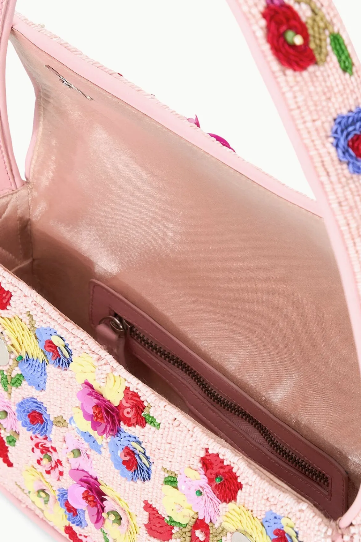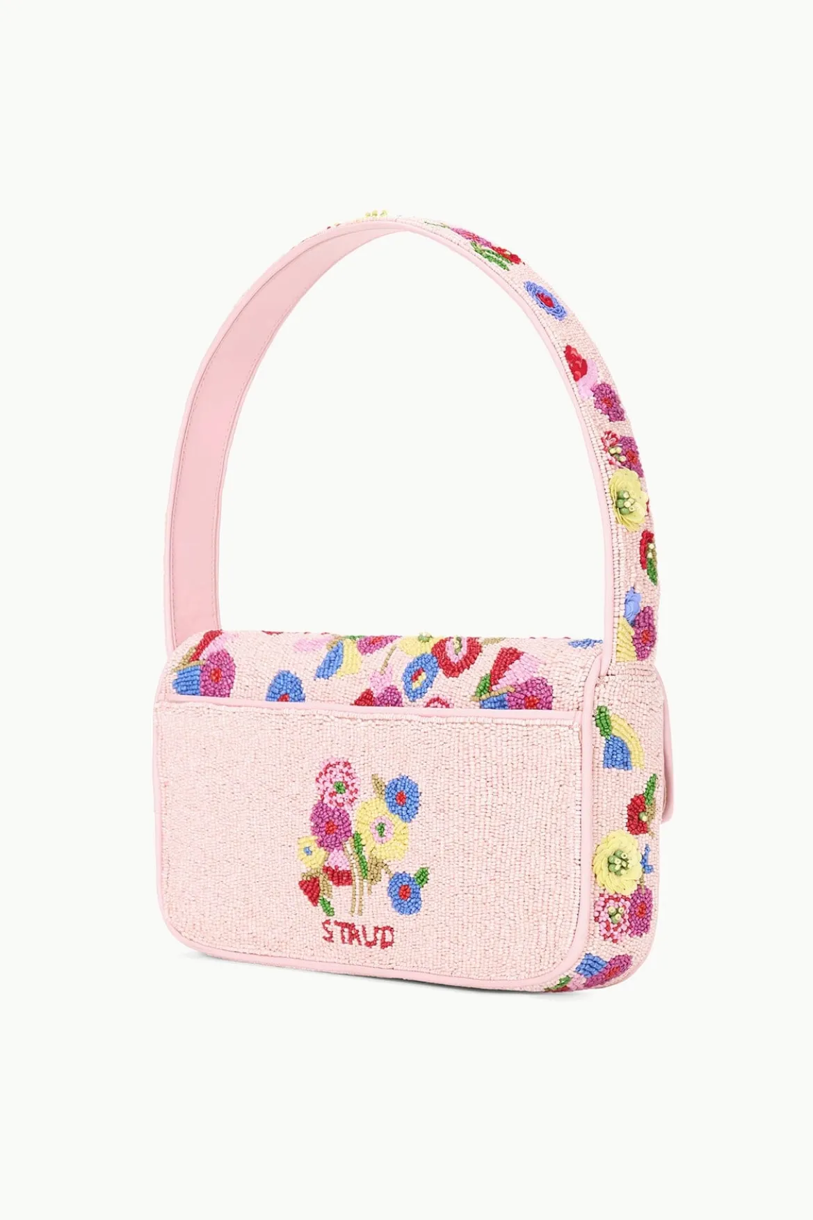 Our best-selling, hand-beaded shoulder bag has been updated with a wildflower pattern. The Tommy features vegan leather piping, a back slip pocket, magnetic snap closure, and interior satin lining.