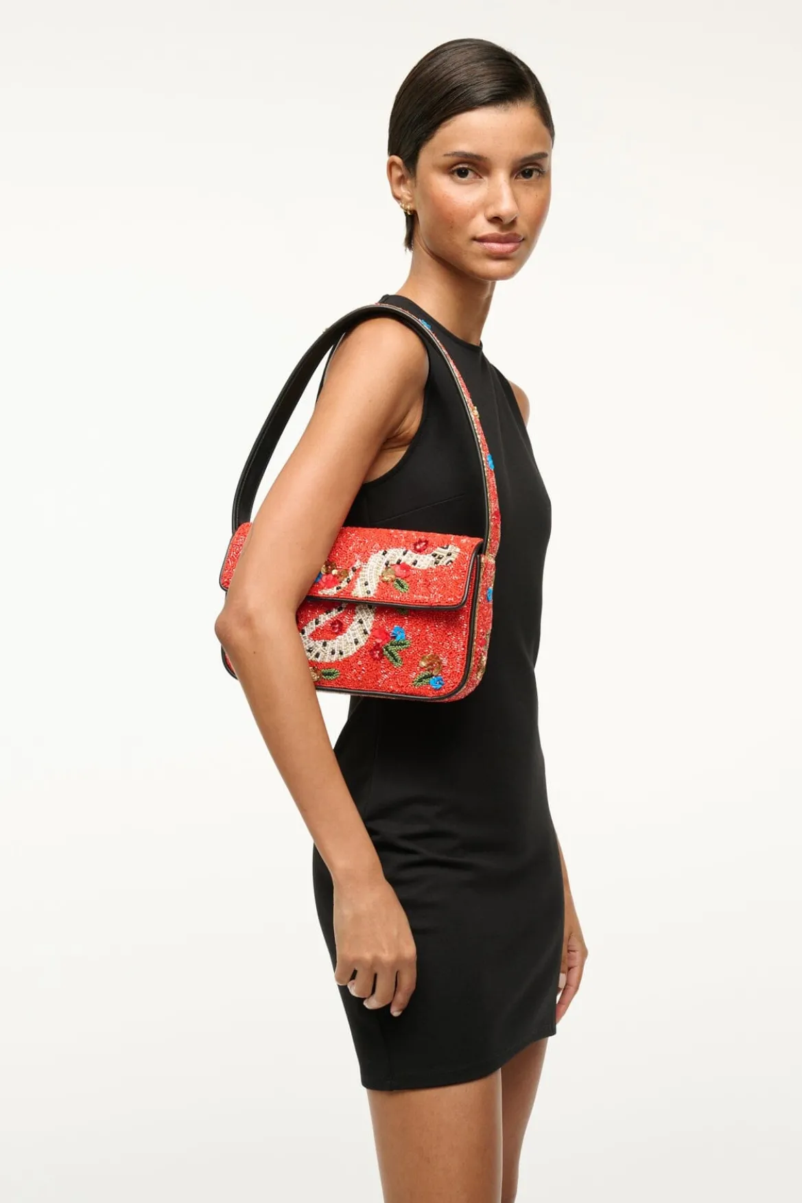The classic hand-beaded shoulder bag with vegan leather piping. In anticipation of the upcoming Lunar New Year, this Tommy update features a beaded Snake pattern.