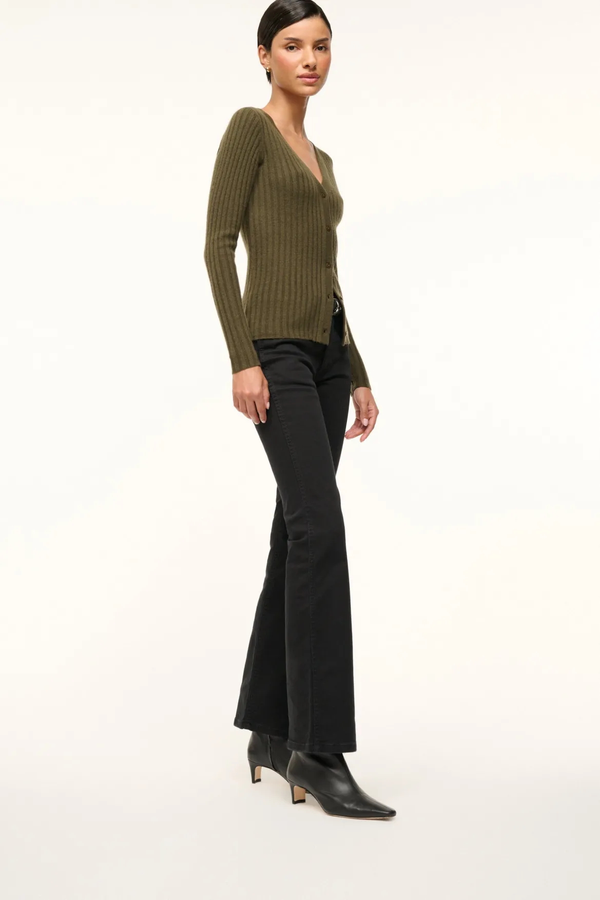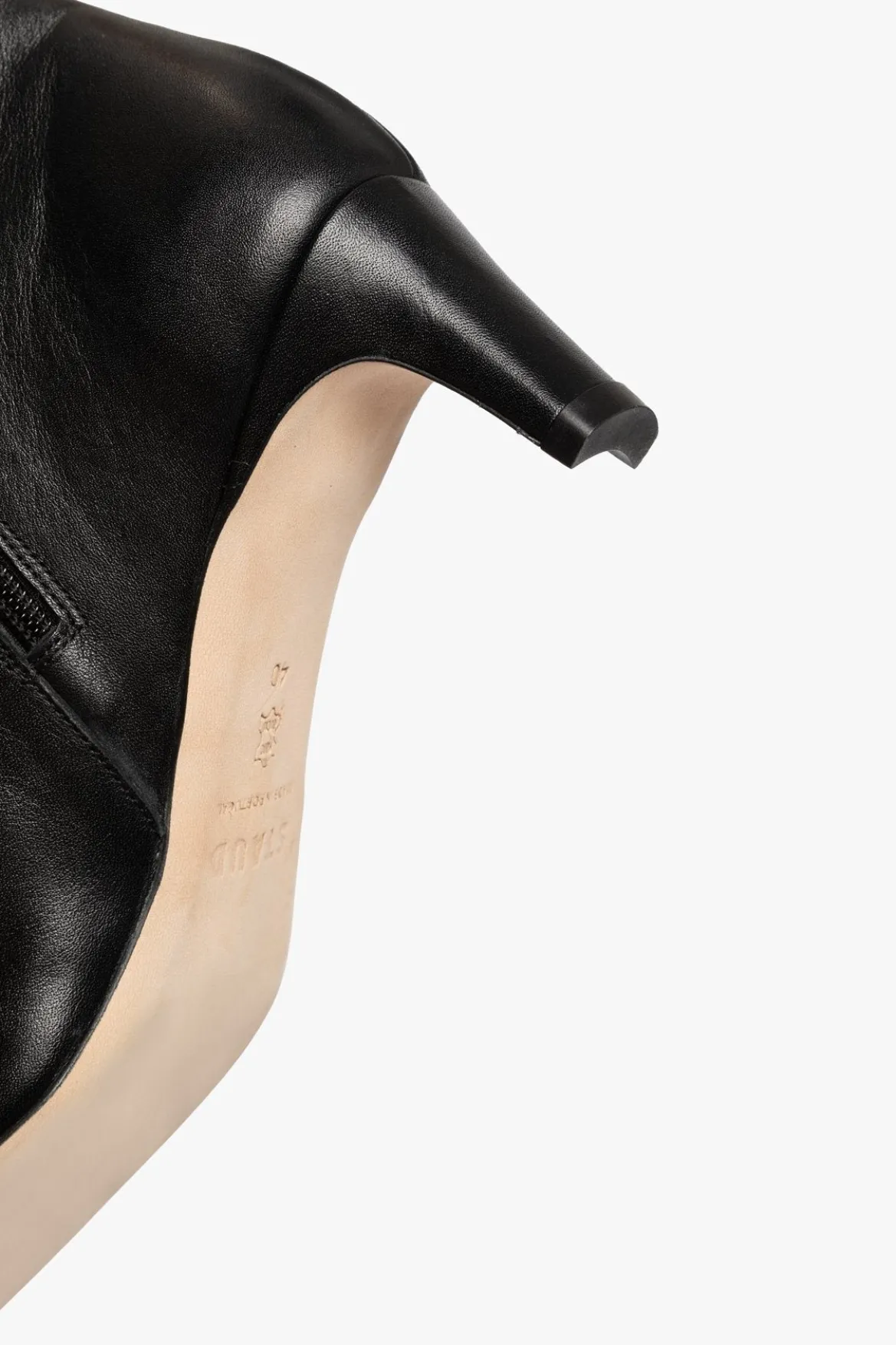 A nappa leather ankle boot, this style features a pointed rectangular toe and a blade heel. The Wally Ankle boot features a side zip closure.