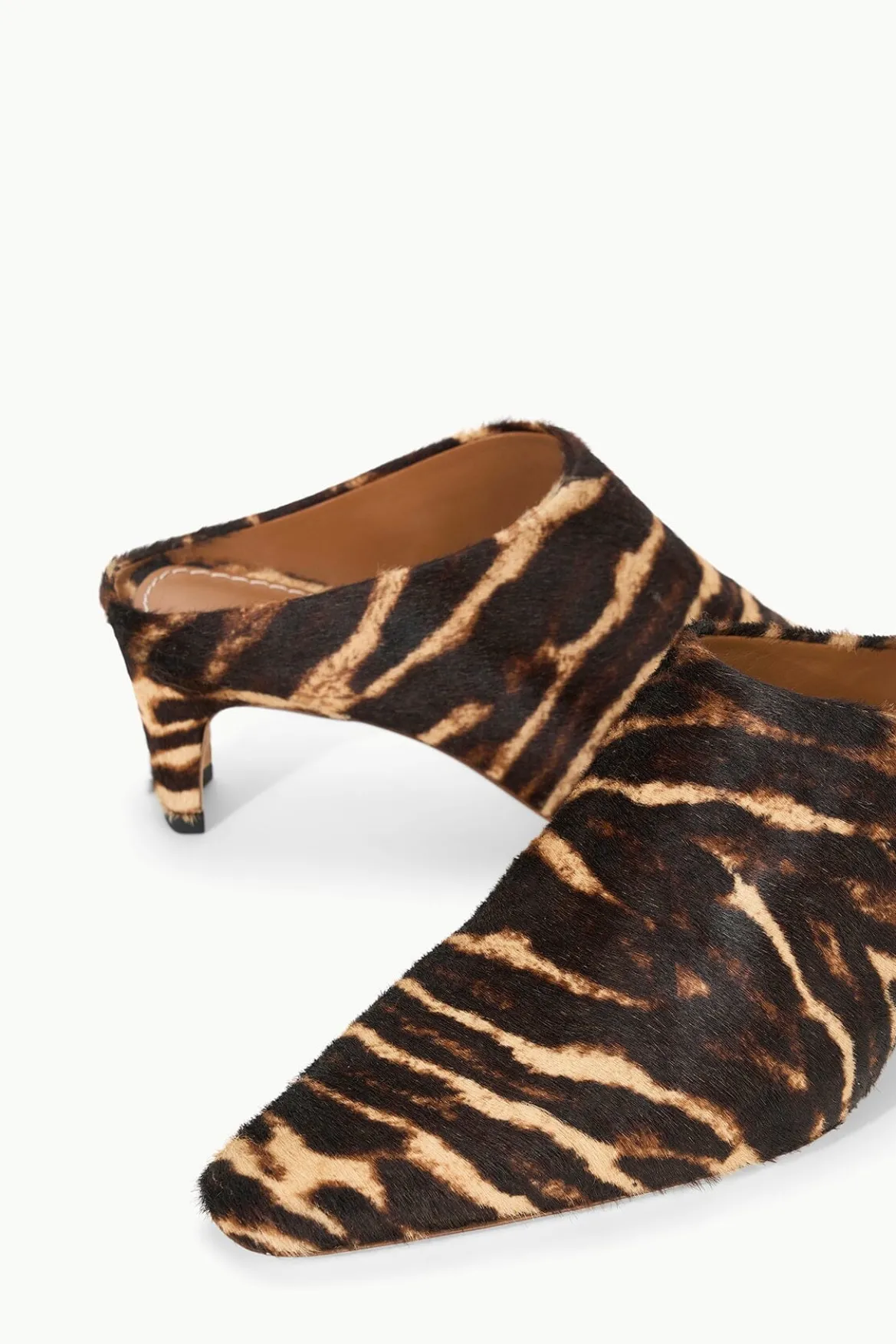Taking inspiration from our best-selling boot, the Wally Mule features a pointed toe, open back, andkitten blade heel now crafted in haircalf.