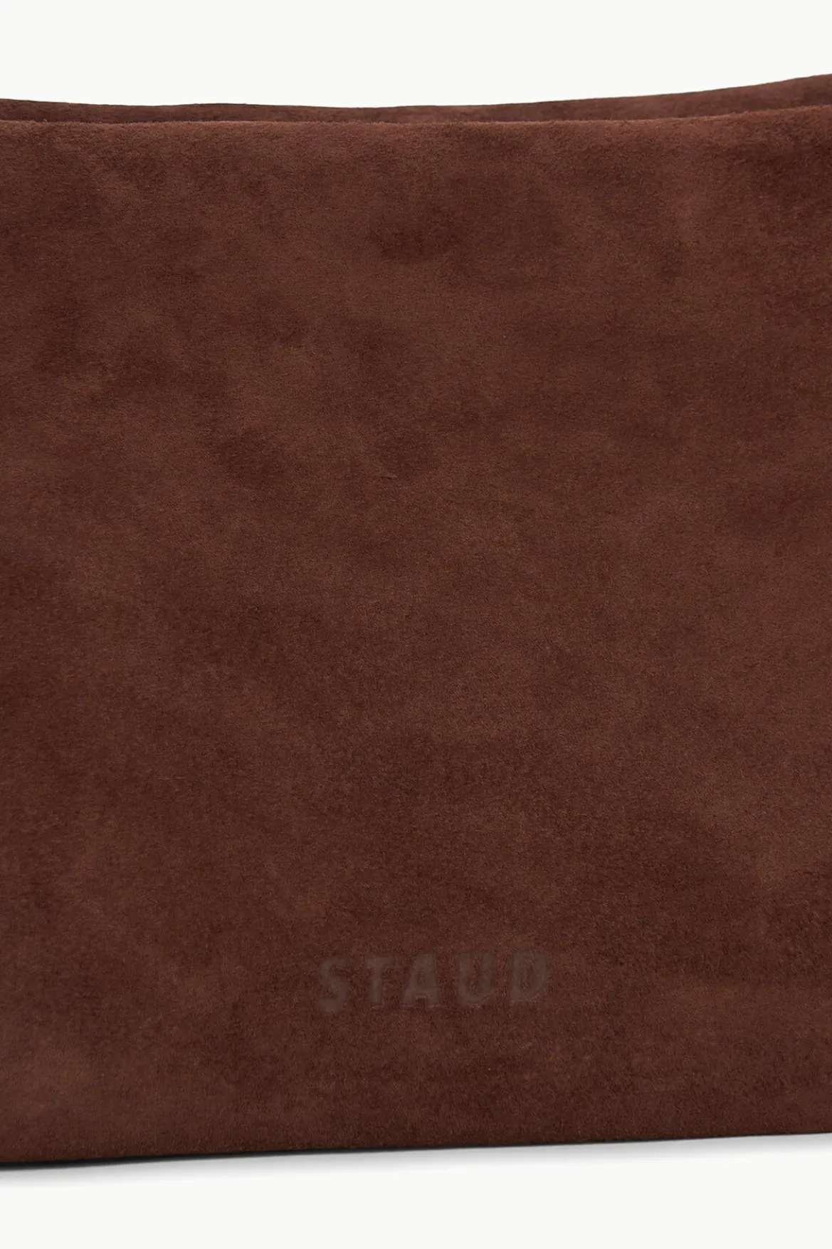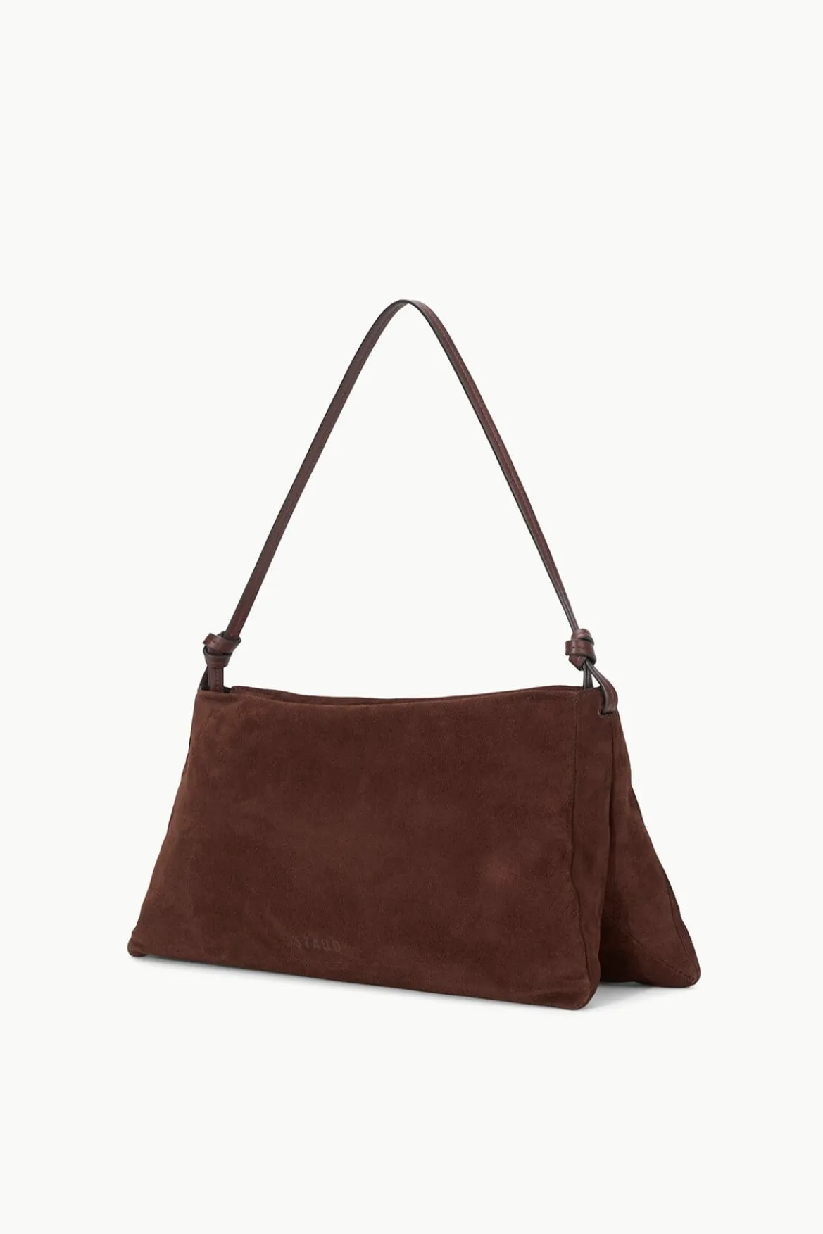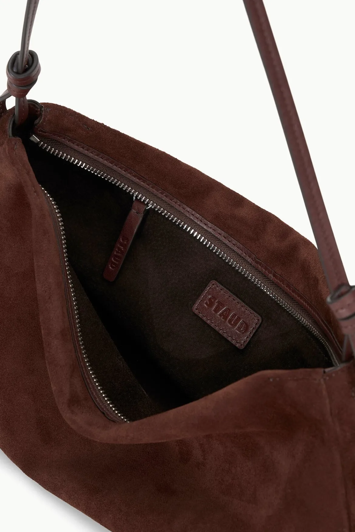 A simple slouchy suede shoulder bag with knotted strap ends, the Wally features an interior pocket and zipper closure. Please note the strap is not adjustable.