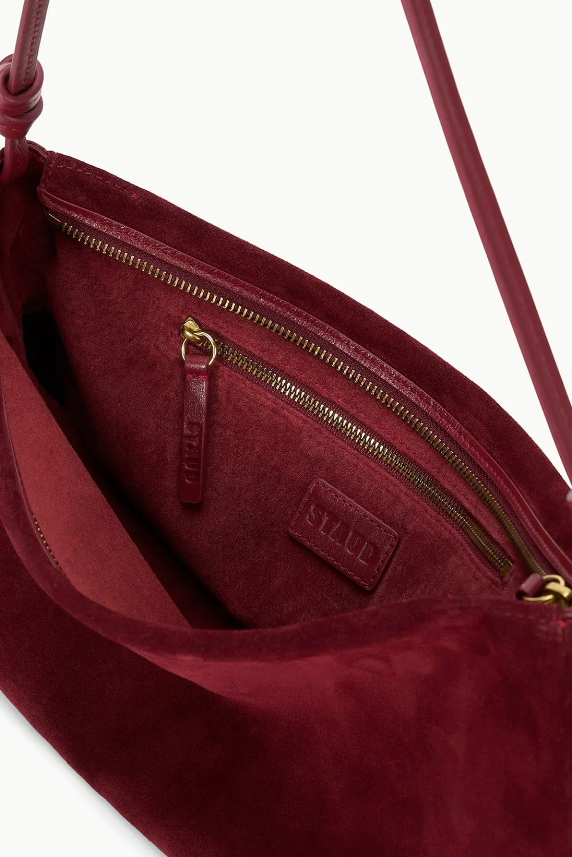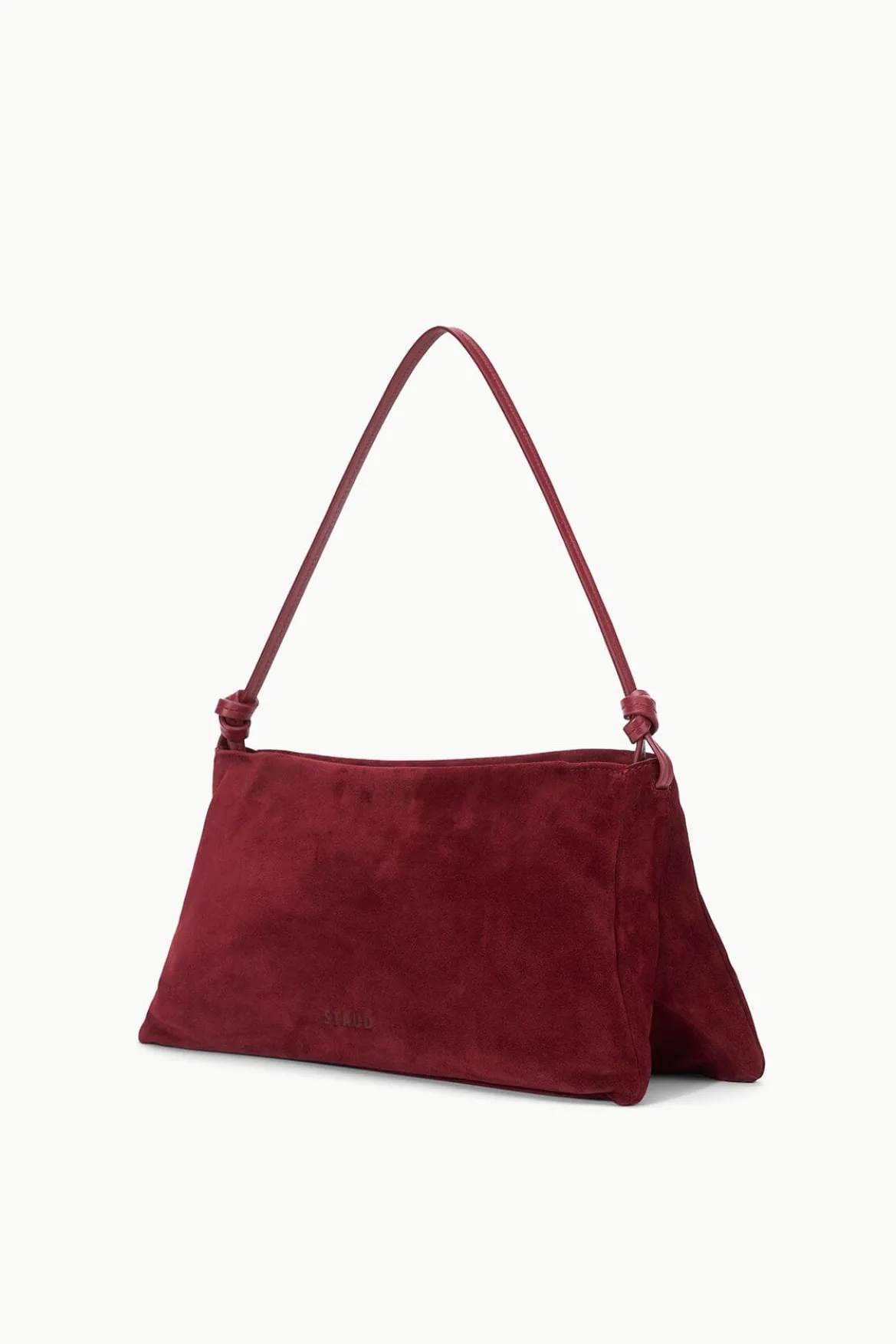 A slouchy suede shoulder bag with knotted strap ends, the Wally features an interior pocket and zipper closure. Please note the strap is not adjustable.