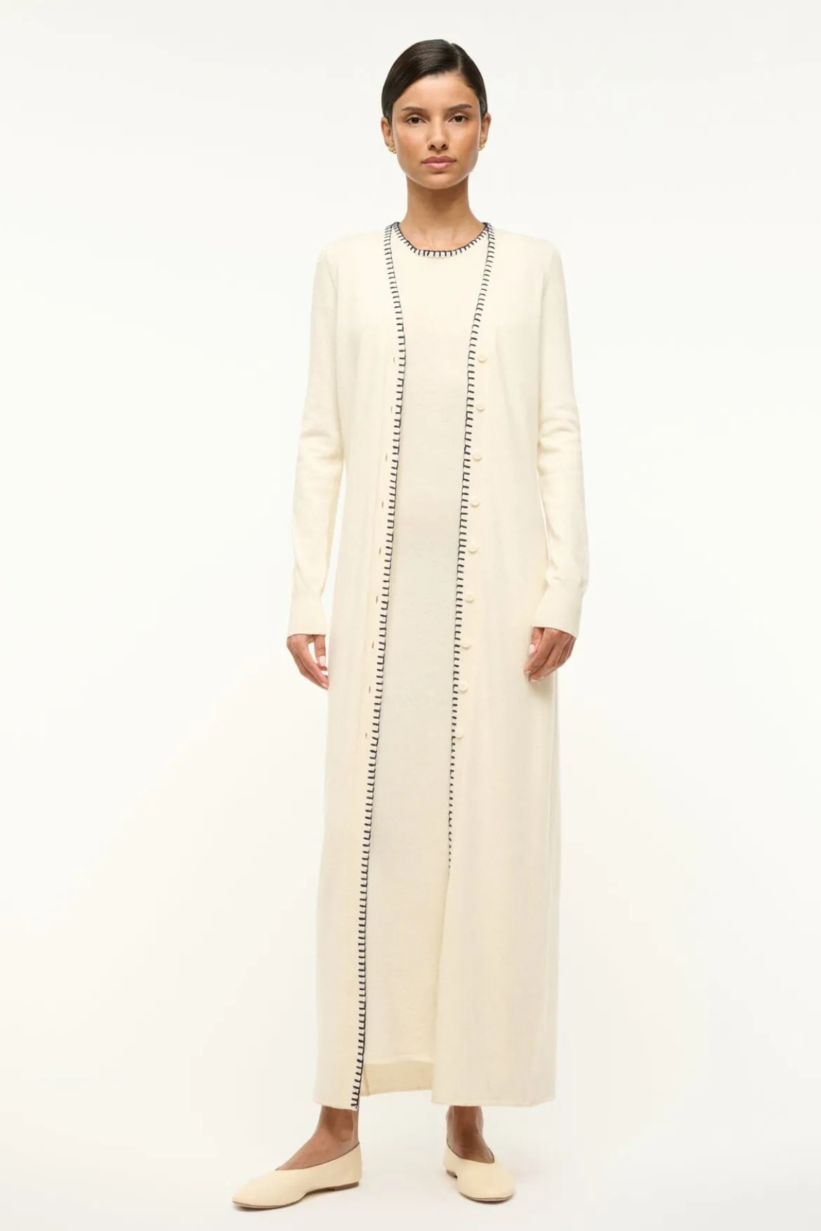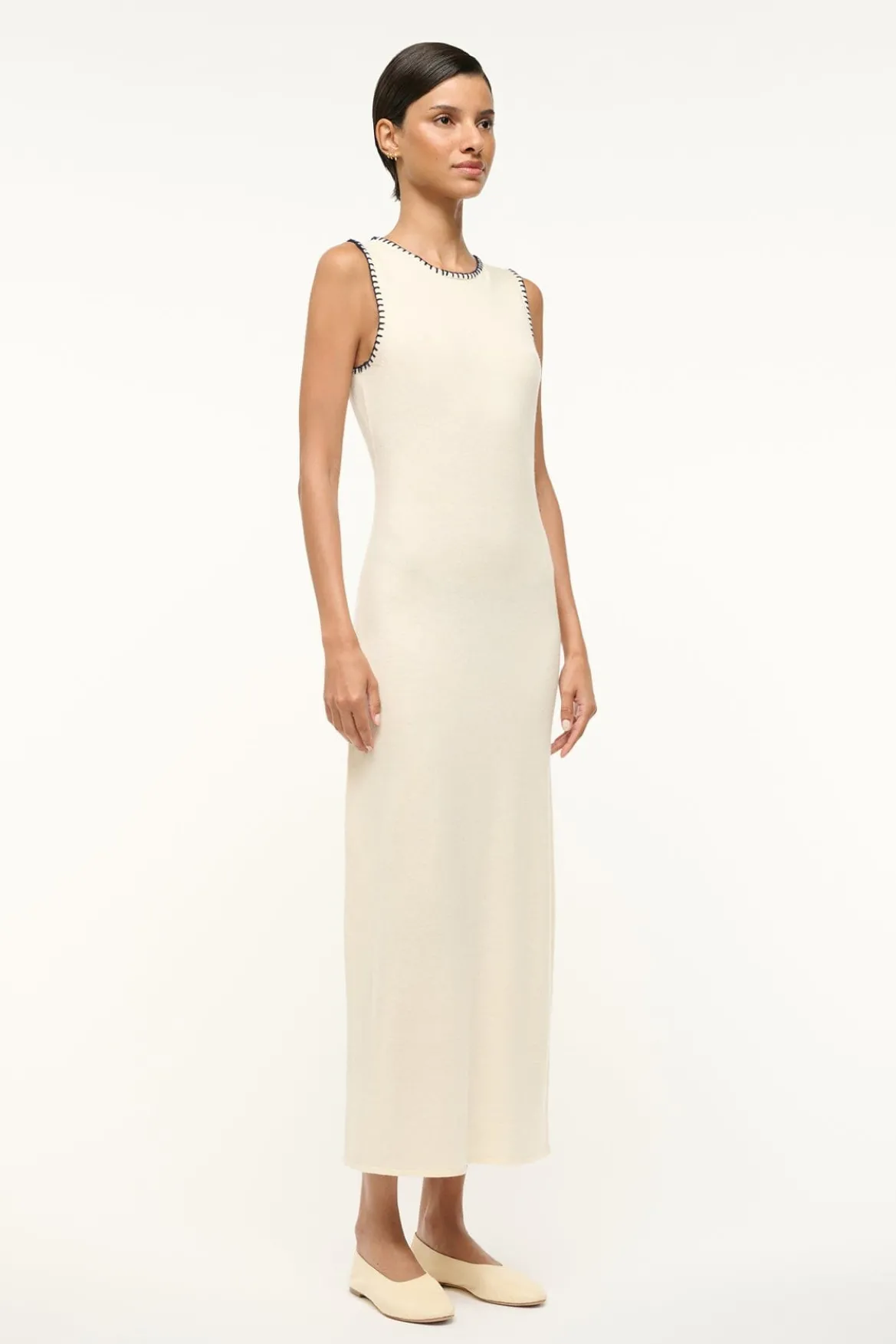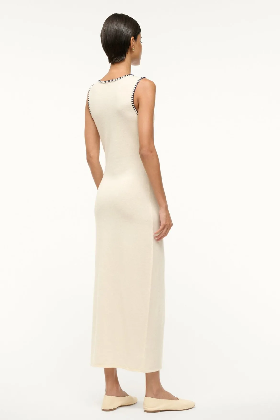 A knit column dress crafted from a wool blend fabric. The Wentworth features contrast whipstitch details at the neck and arm holes and can be worn as a matching set layered under the Morrison Cardigan.