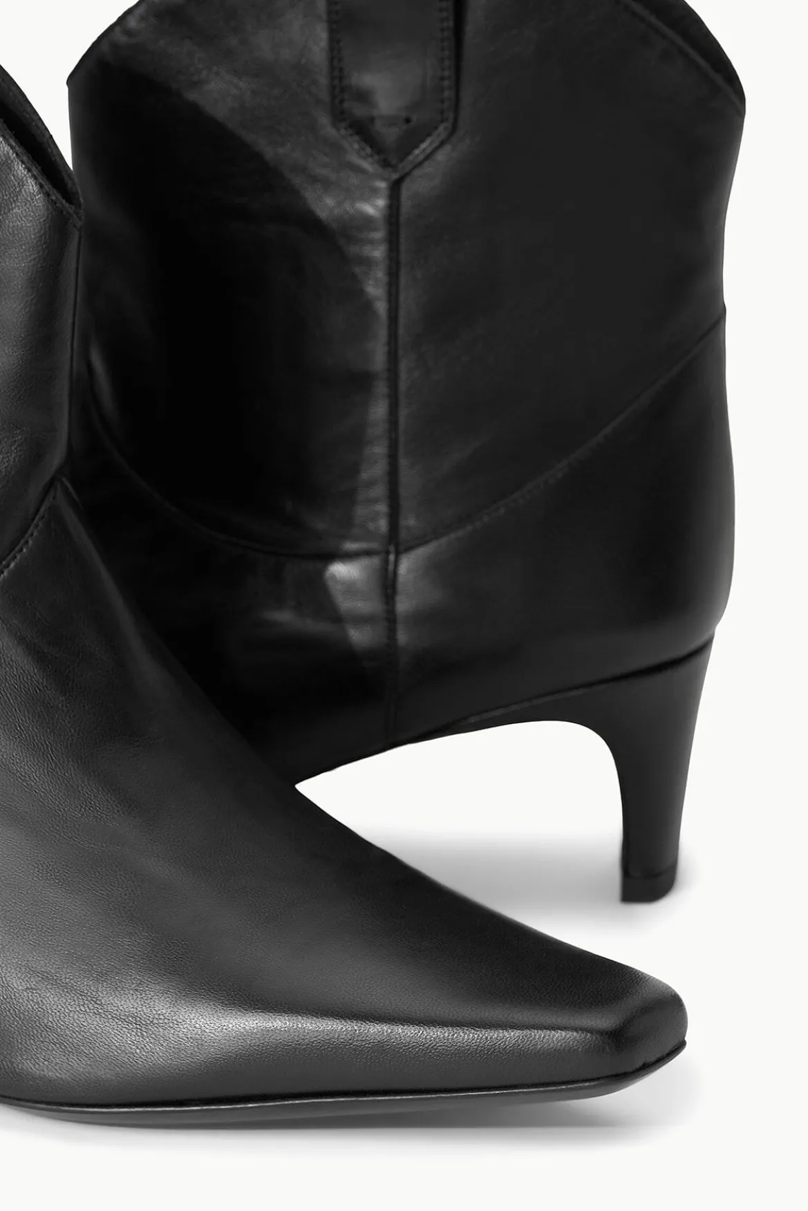 Our best-selling Western Wally Boot has been updated to an ankle boot, the perfect boot to transition through seasons. Still featuring a pointed toe and our blade heel, this style is a comfortable pull-on style.
