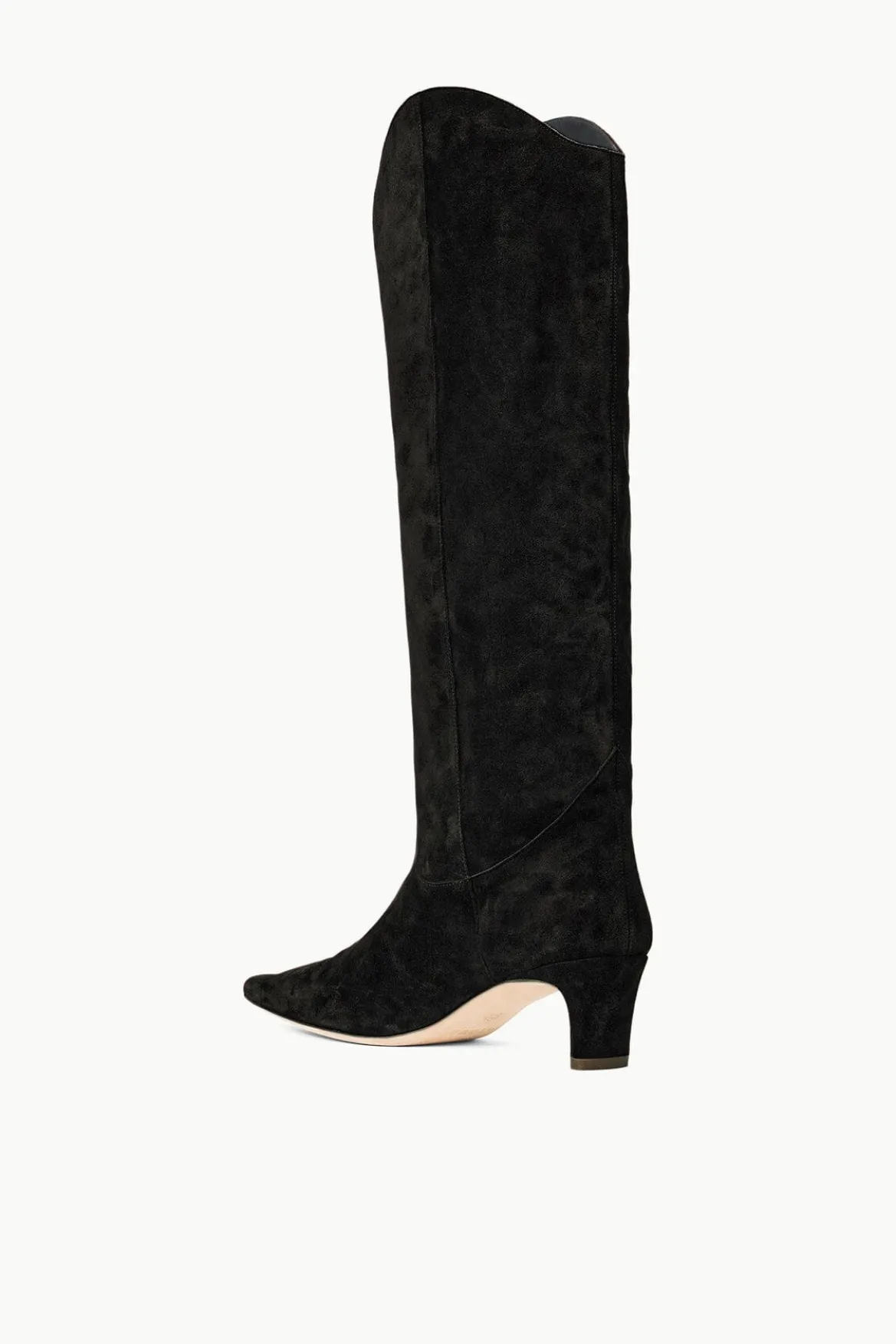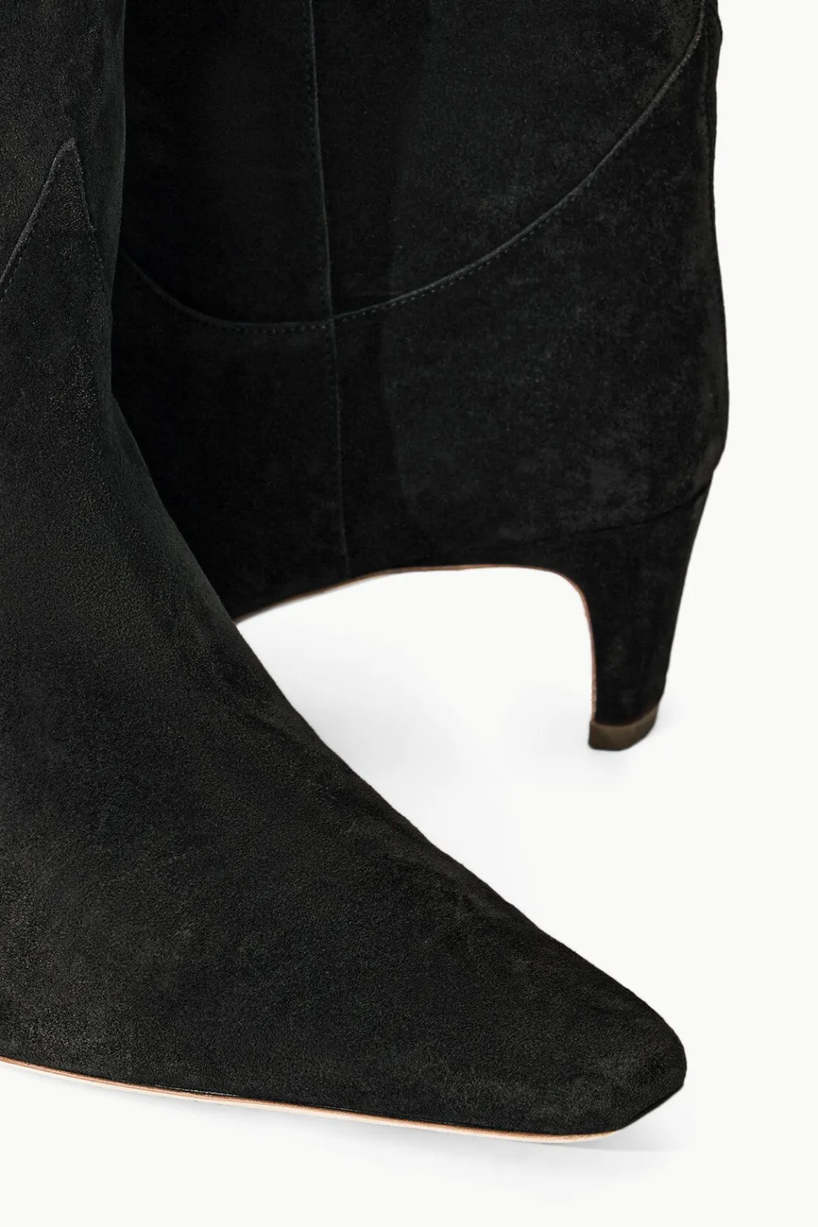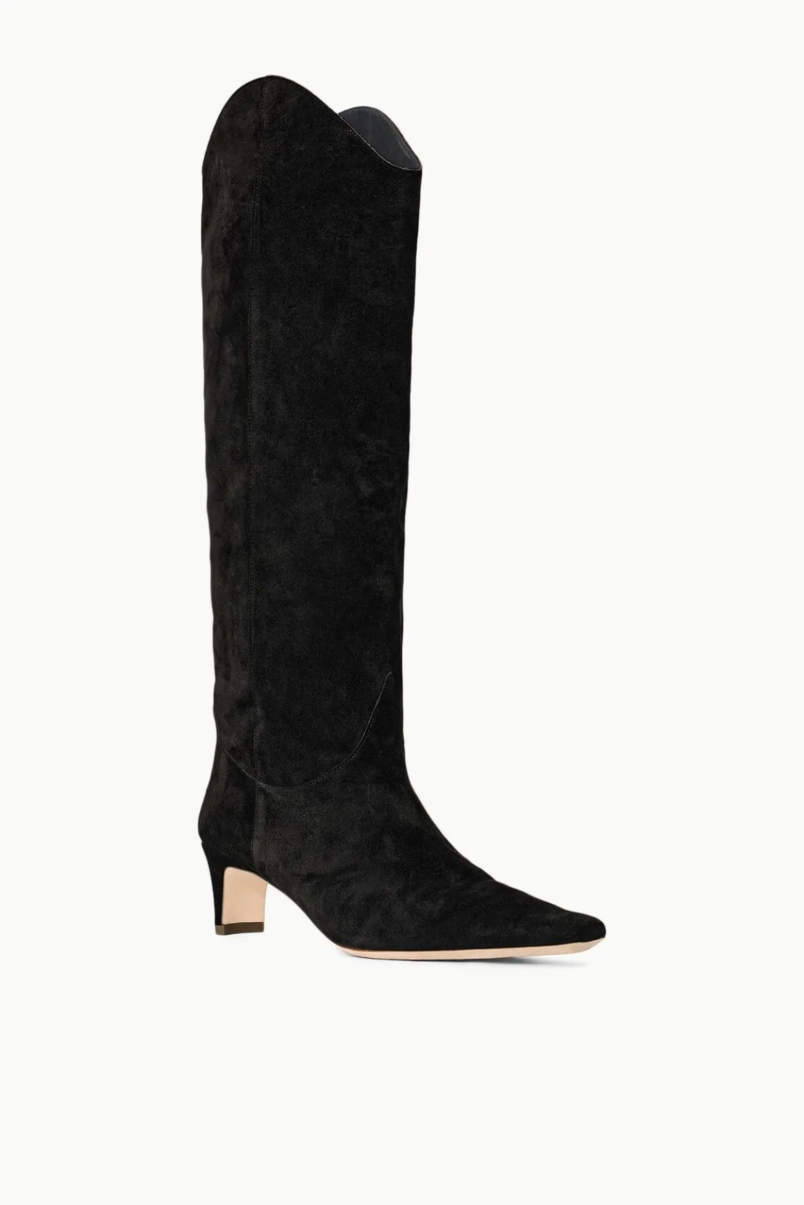 Our signature Wally Boot with a Western inspired curved topline. This style features the classic Wally blade heel and pointed toe.