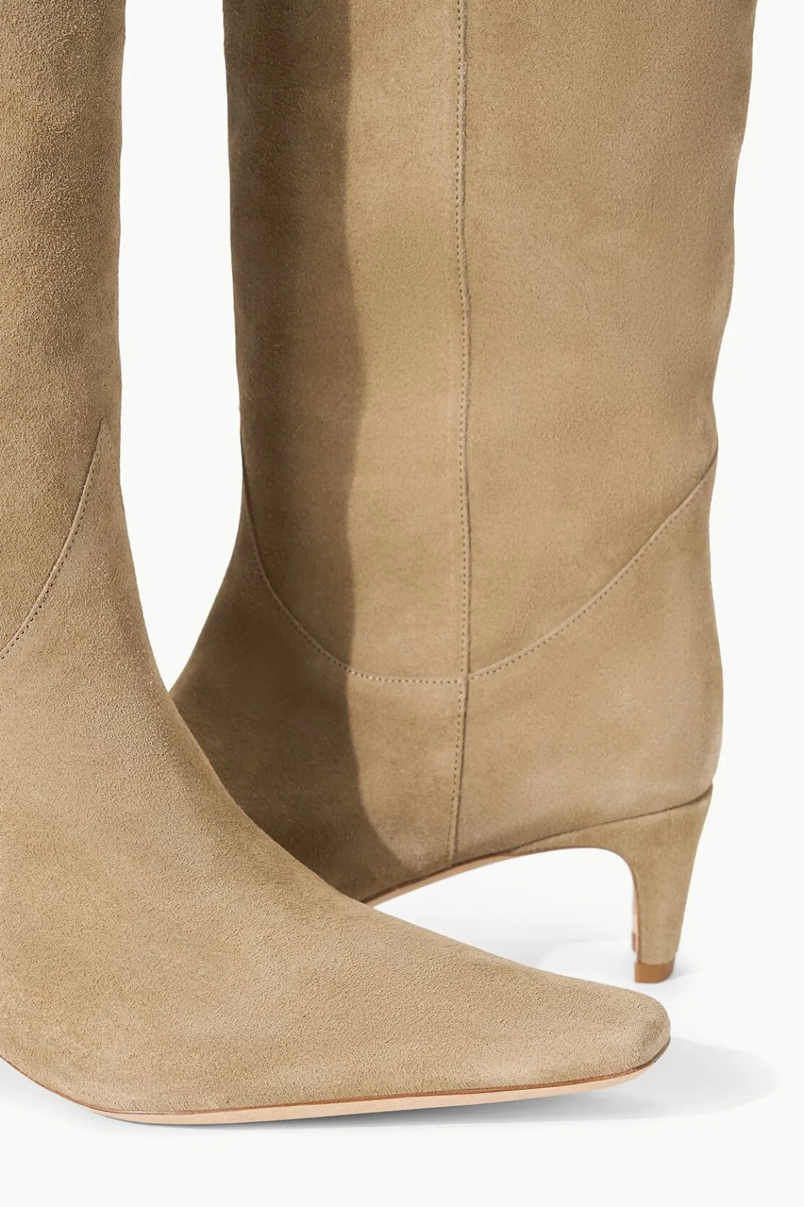 Our signature Wally Boot with a Western inspired curved topline. This style features the classic Wally blade heel and pointed toe.