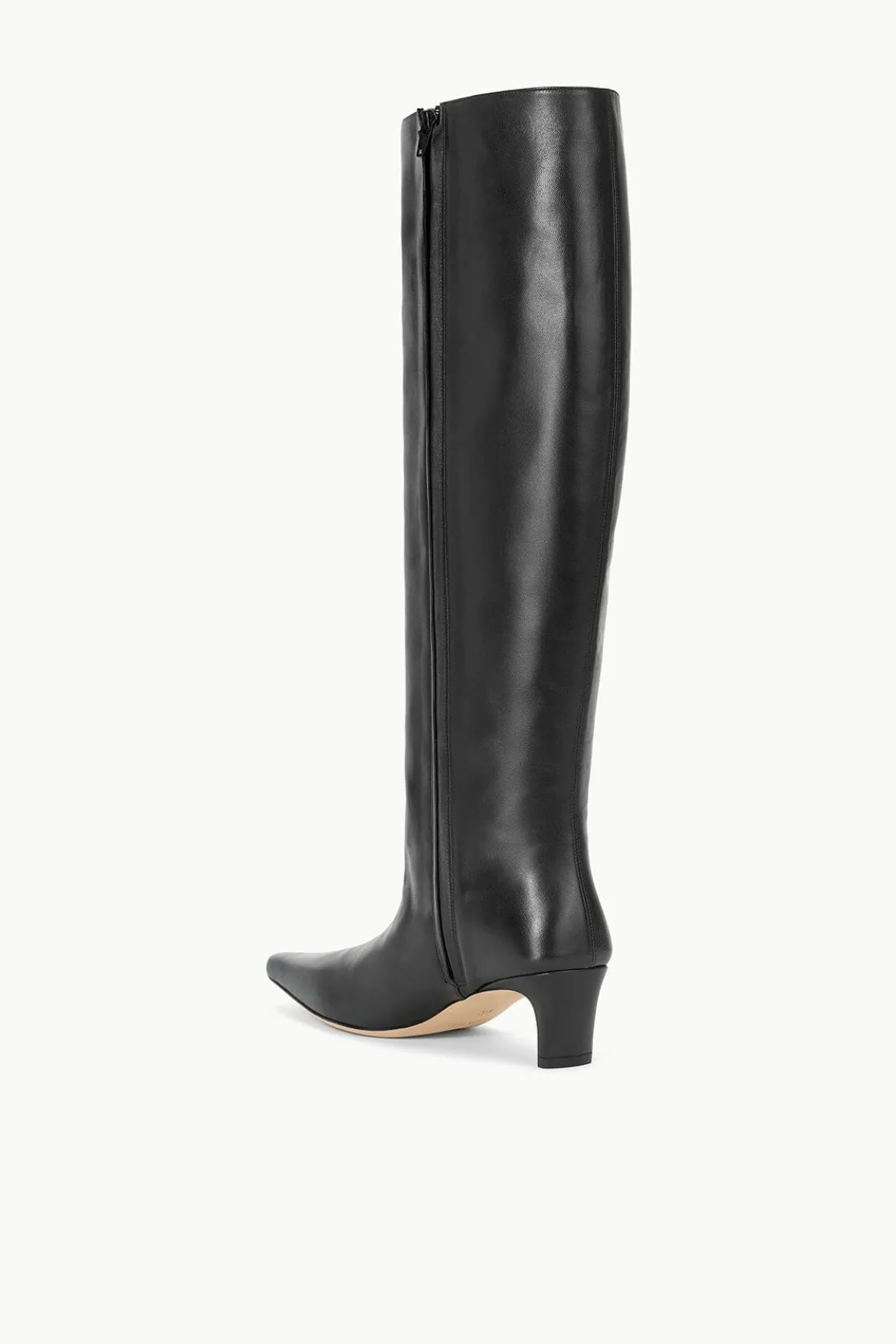 Our best-selling boot is now available in a wide shaft version. The Wally is a knee-high boot featuring a pointed toe, an inside zipper and a slim heel design.