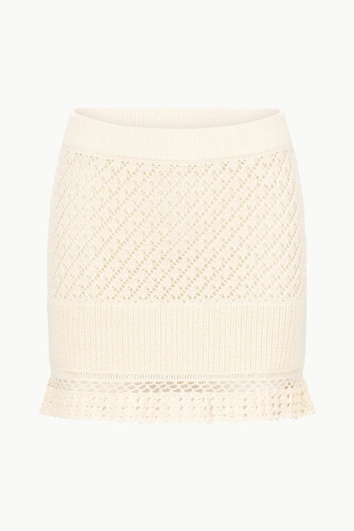 The Wolfgang Skirt is a mixed crochet knit skirt that pairs perfectly with our Vienna Sweater. This is a pull-on style skirt and has an inner lining.
